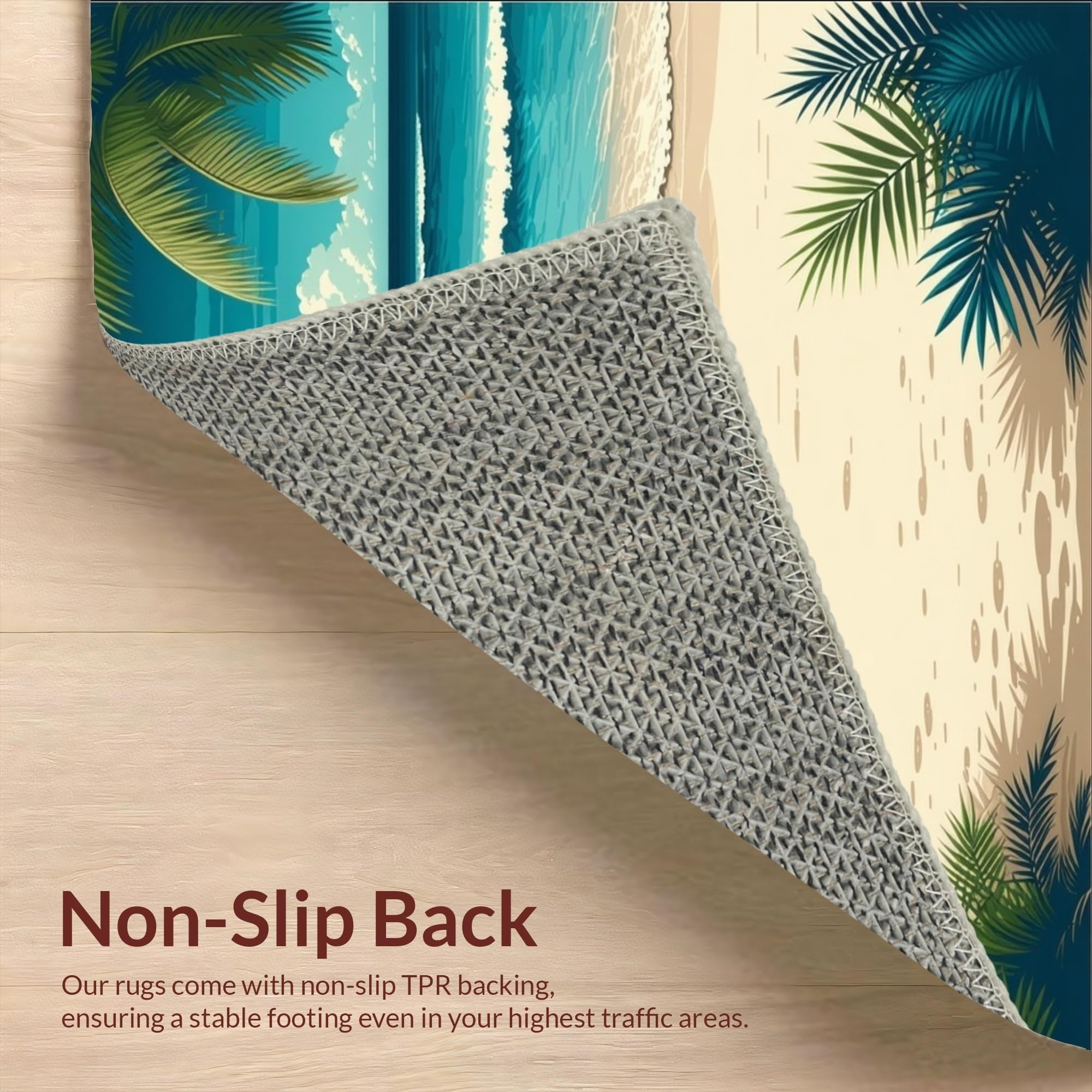 Ultra Soft Area Rug, Non Slip, Stain Resistant, Washable Area Rugs for Living Room, Bedroom, Tropical Coconut Palm Beach Sea Water Natural Scenery Floor Mat(Blue) Overview: