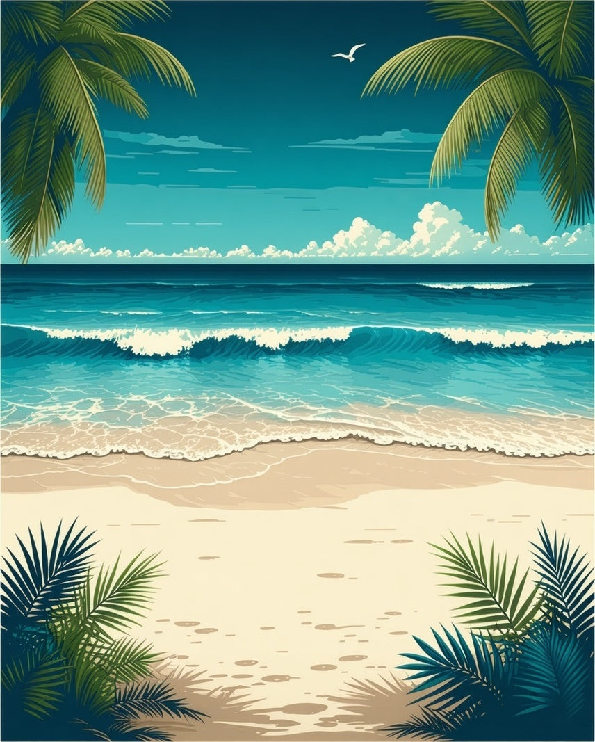 Tropical Coconut Palm Beach Sea Water Natural Scenery Floor(Blue)