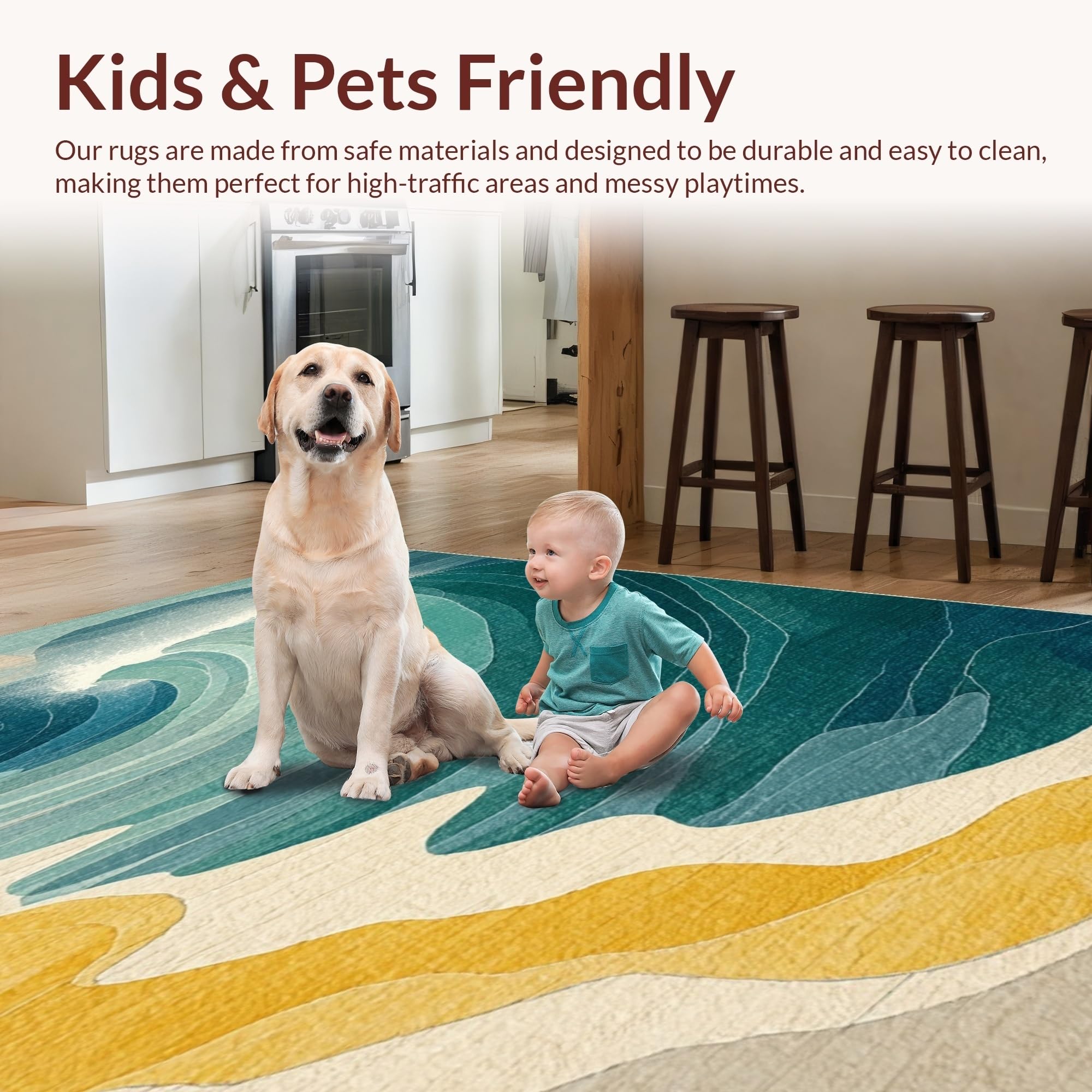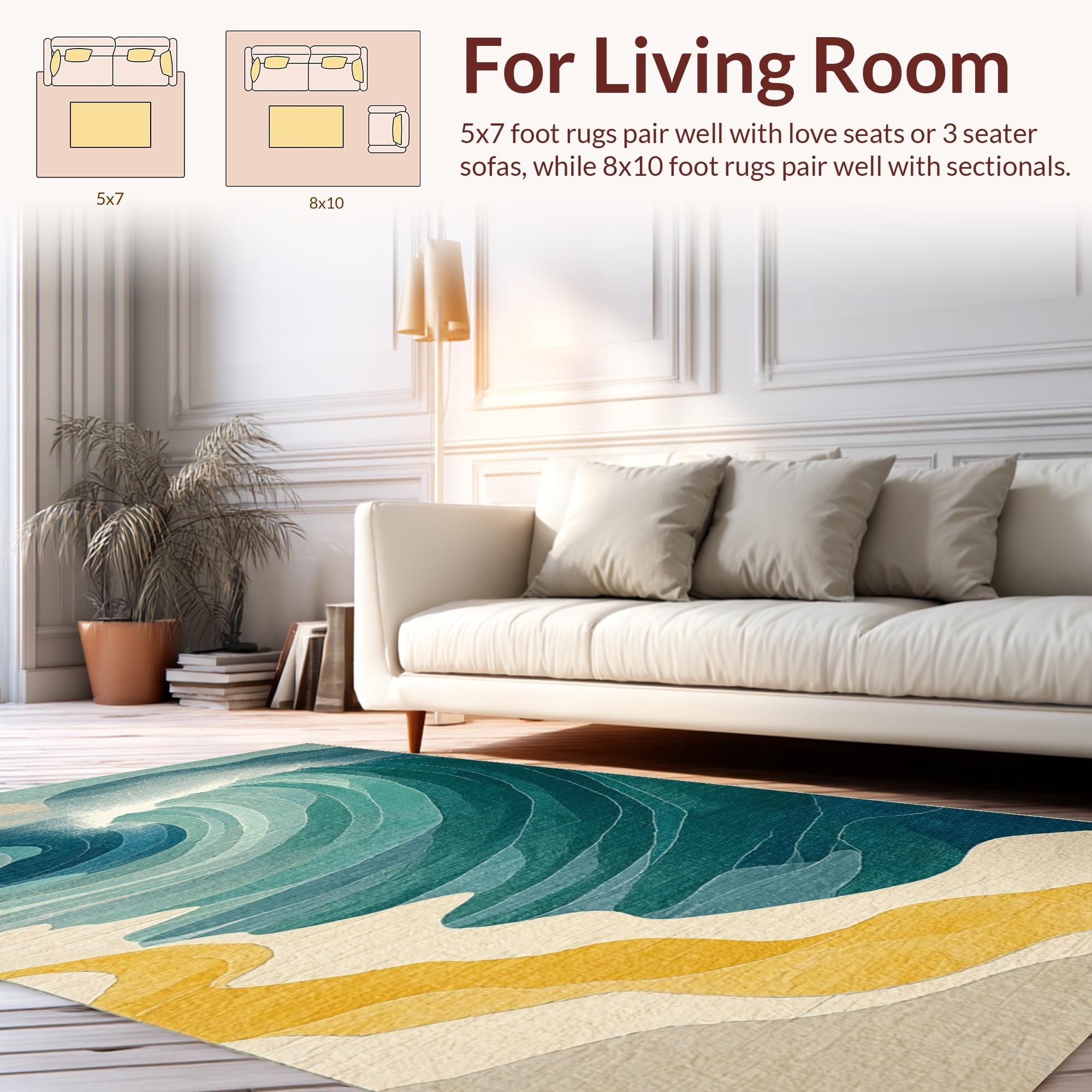 Ultra Soft Area Rug, Non Slip, Stain Resistant, Washable Area Rugs for Living Room, Bedroom, Tropical Escape Rug Geometric Surf Motif(Blue) Overview: