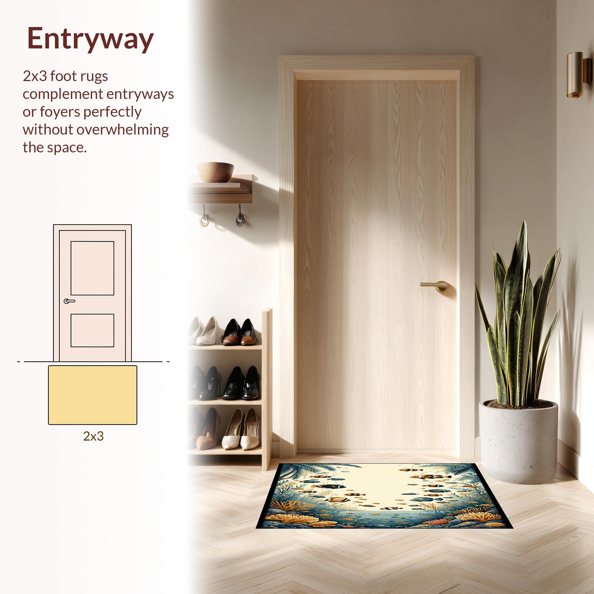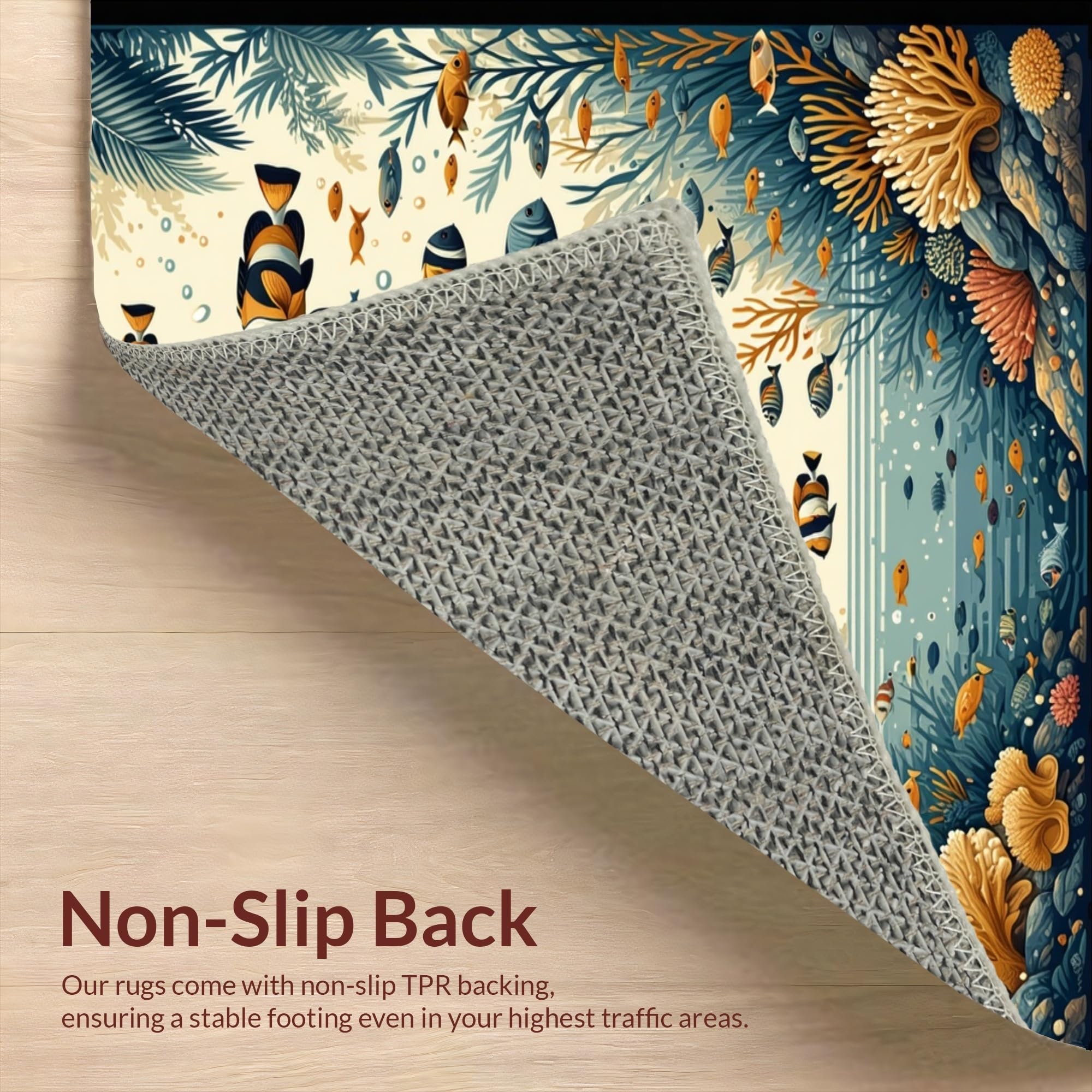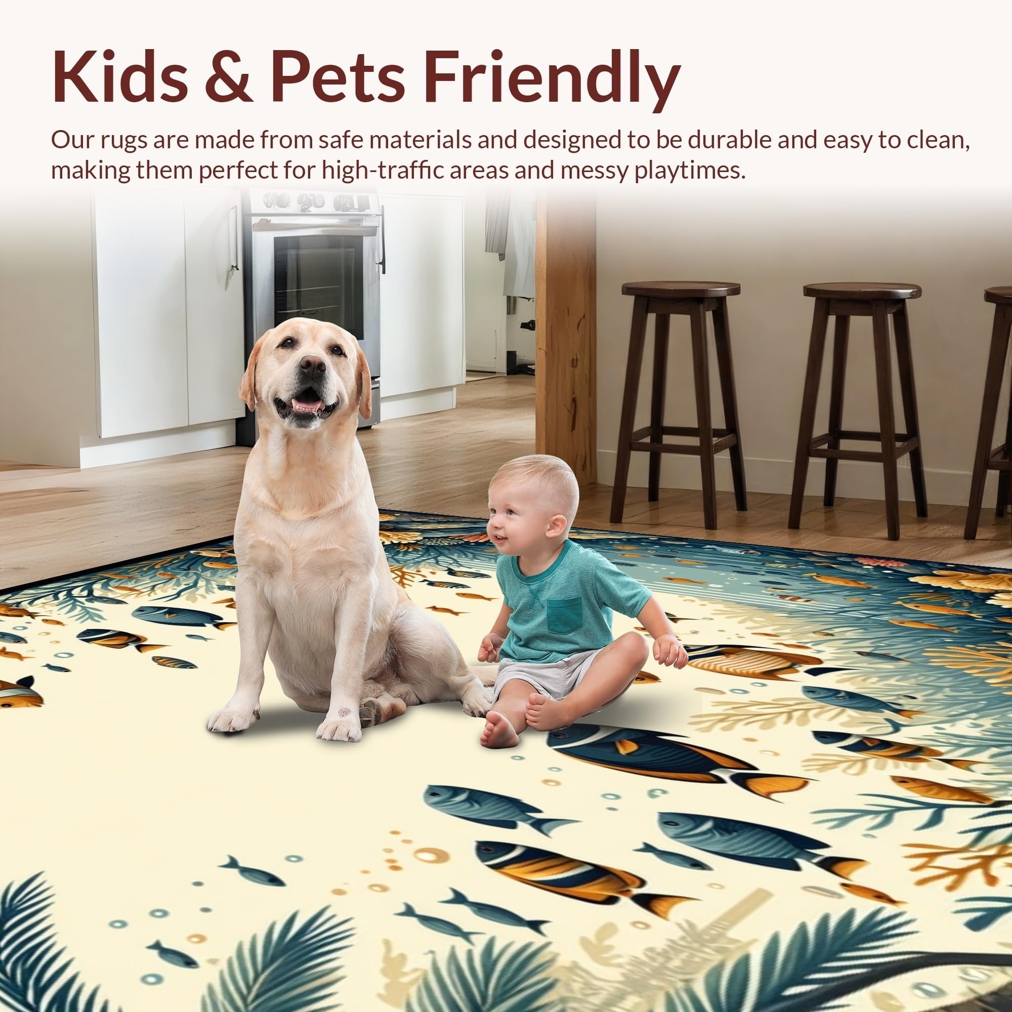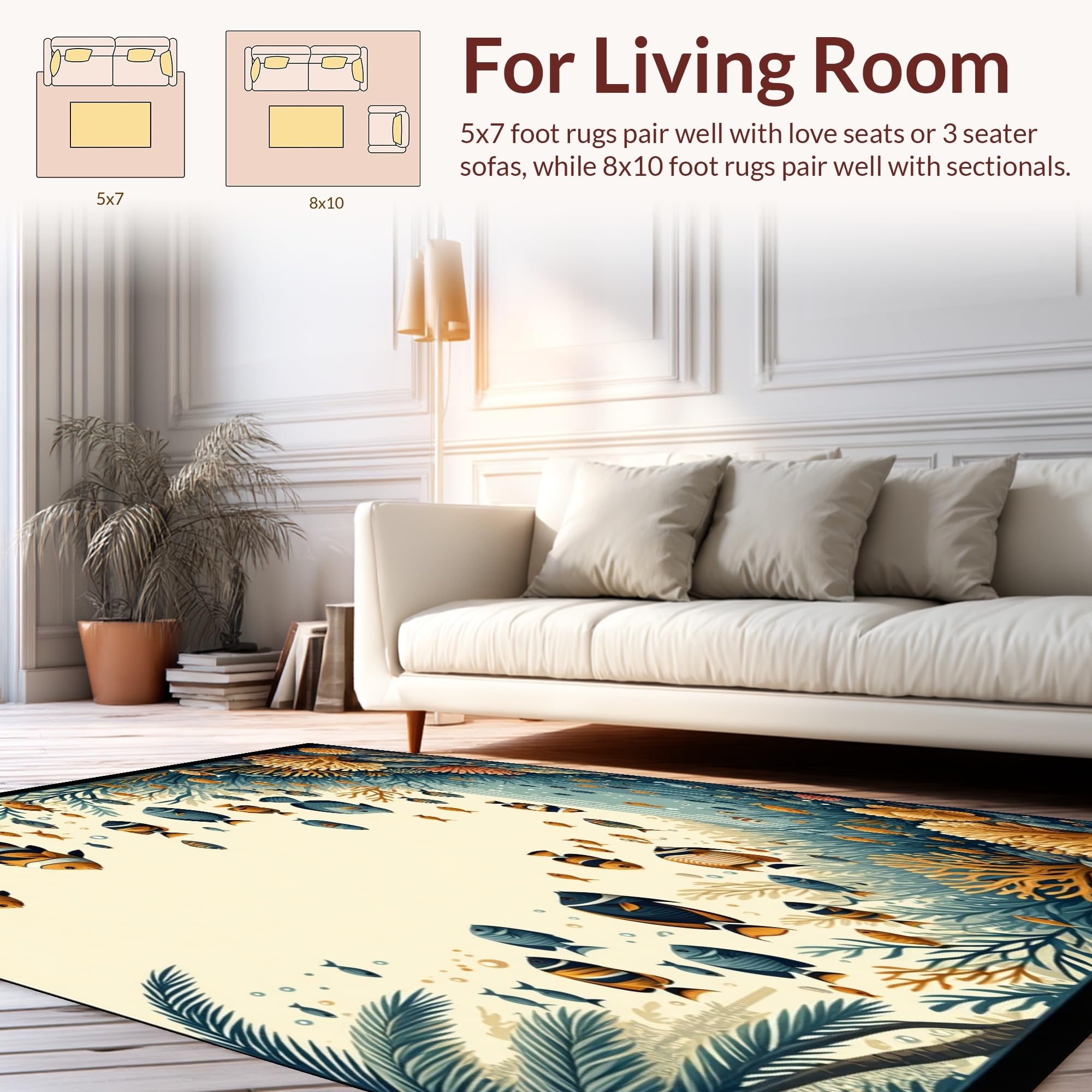 Ultra Soft Area Rug, Non Slip, Stain Resistant, Washable Area Rugs for Living Room, Bedroom, Tropical Fish Area with Unique Coastal Inspired Design for Versatile Decor(Blue) Overview: