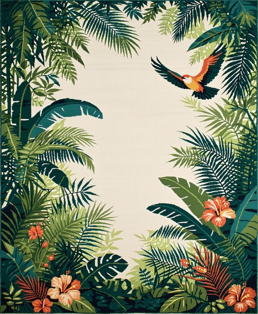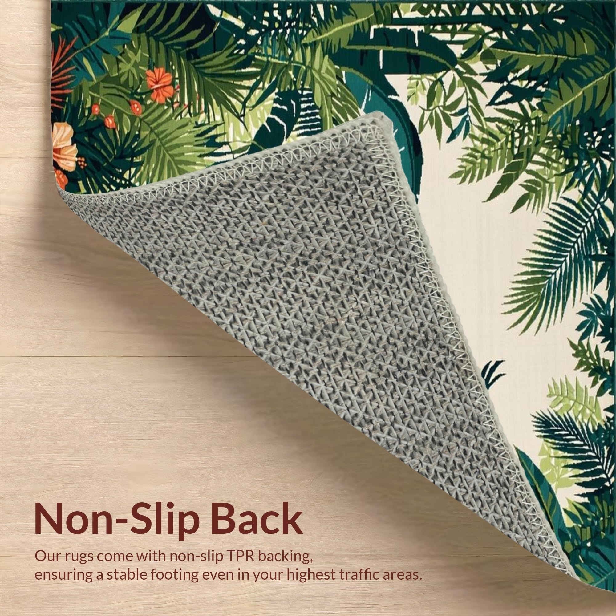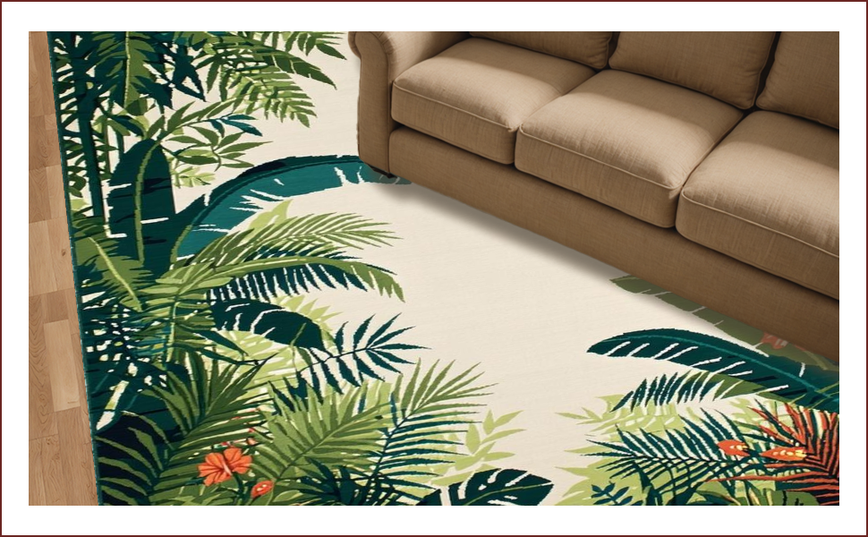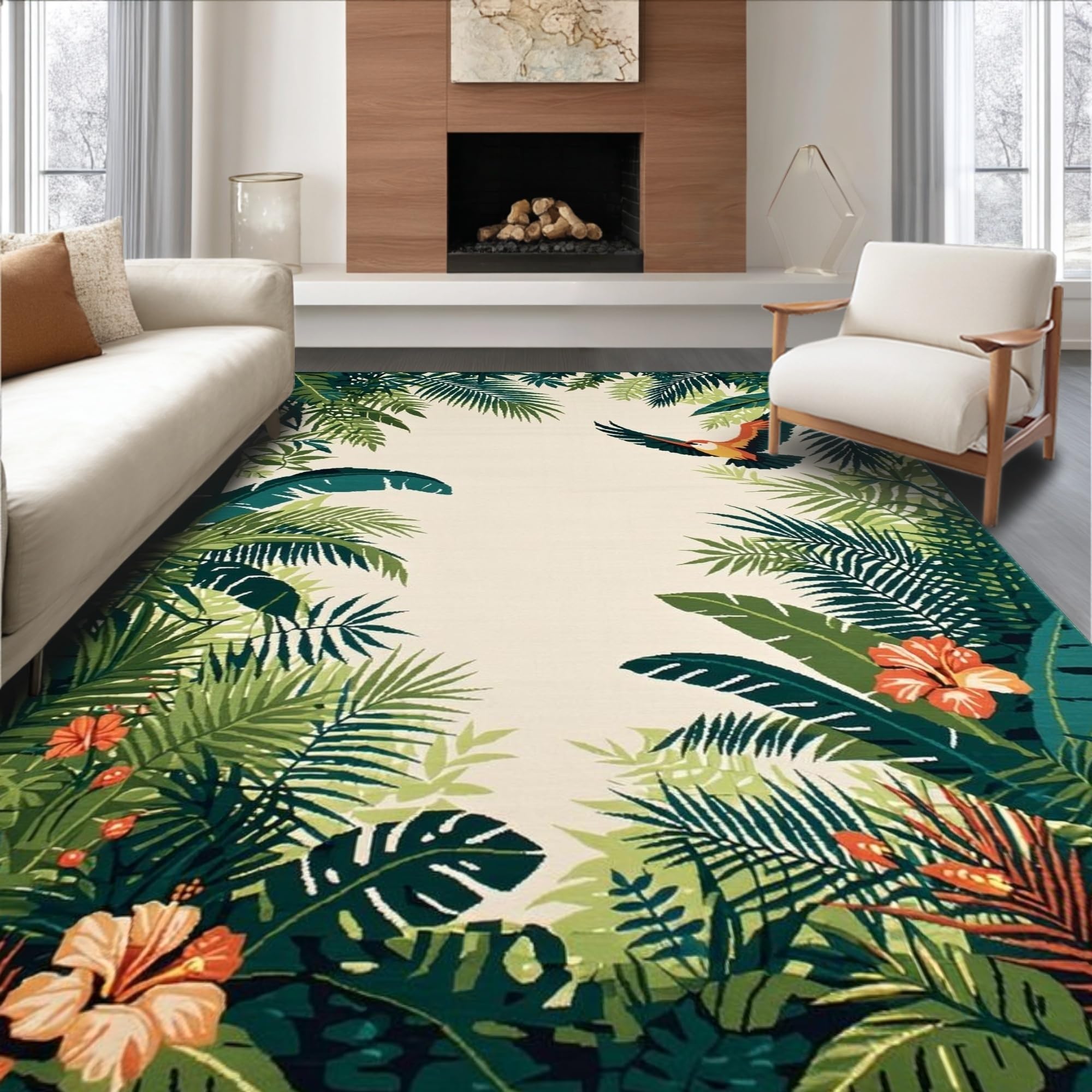 Ultra Soft Area Rug, Non Slip, Stain Resistant, Washable Area Rugs for Living Room, Bedroom, Tropical Flora Abstract Motif(Beige) Overview: