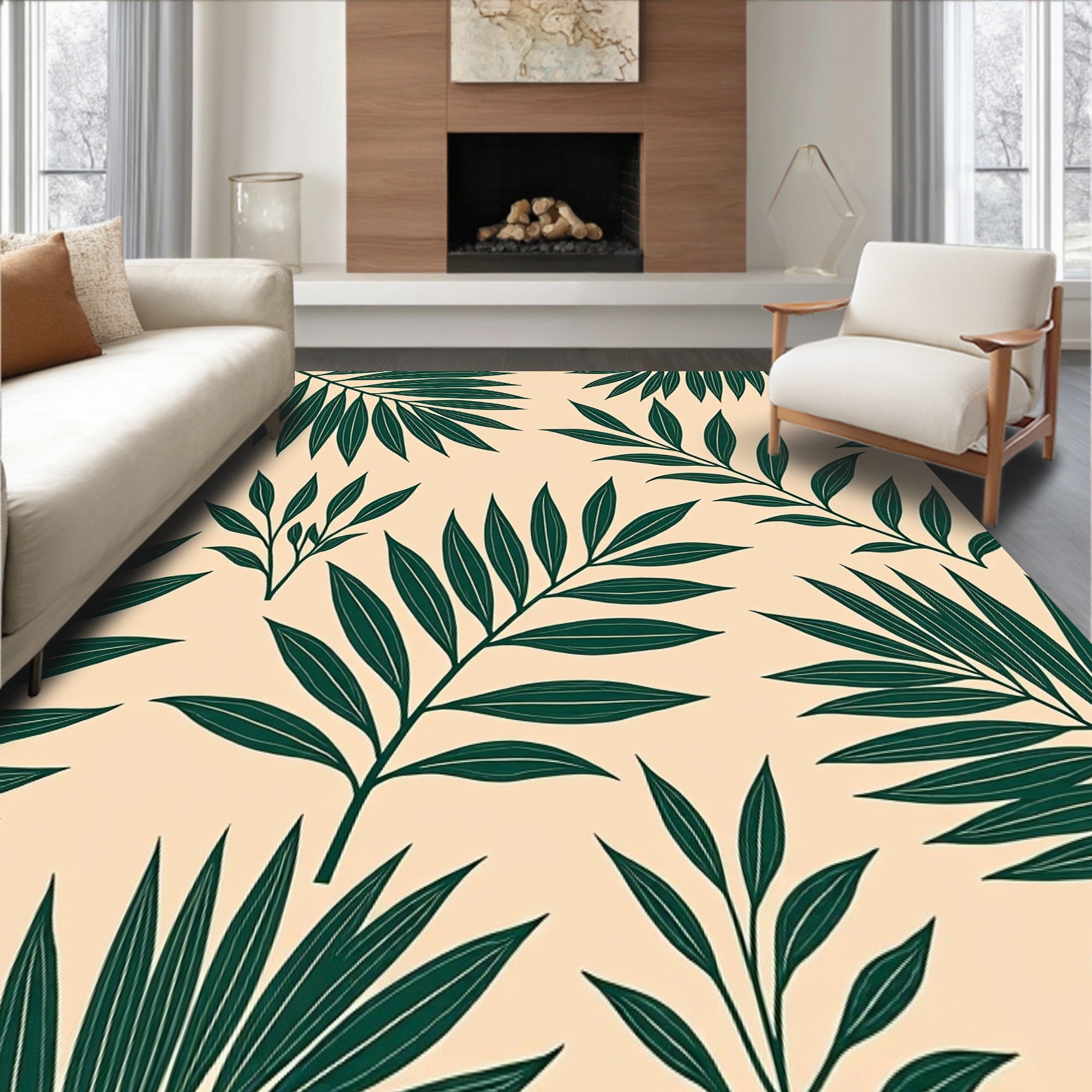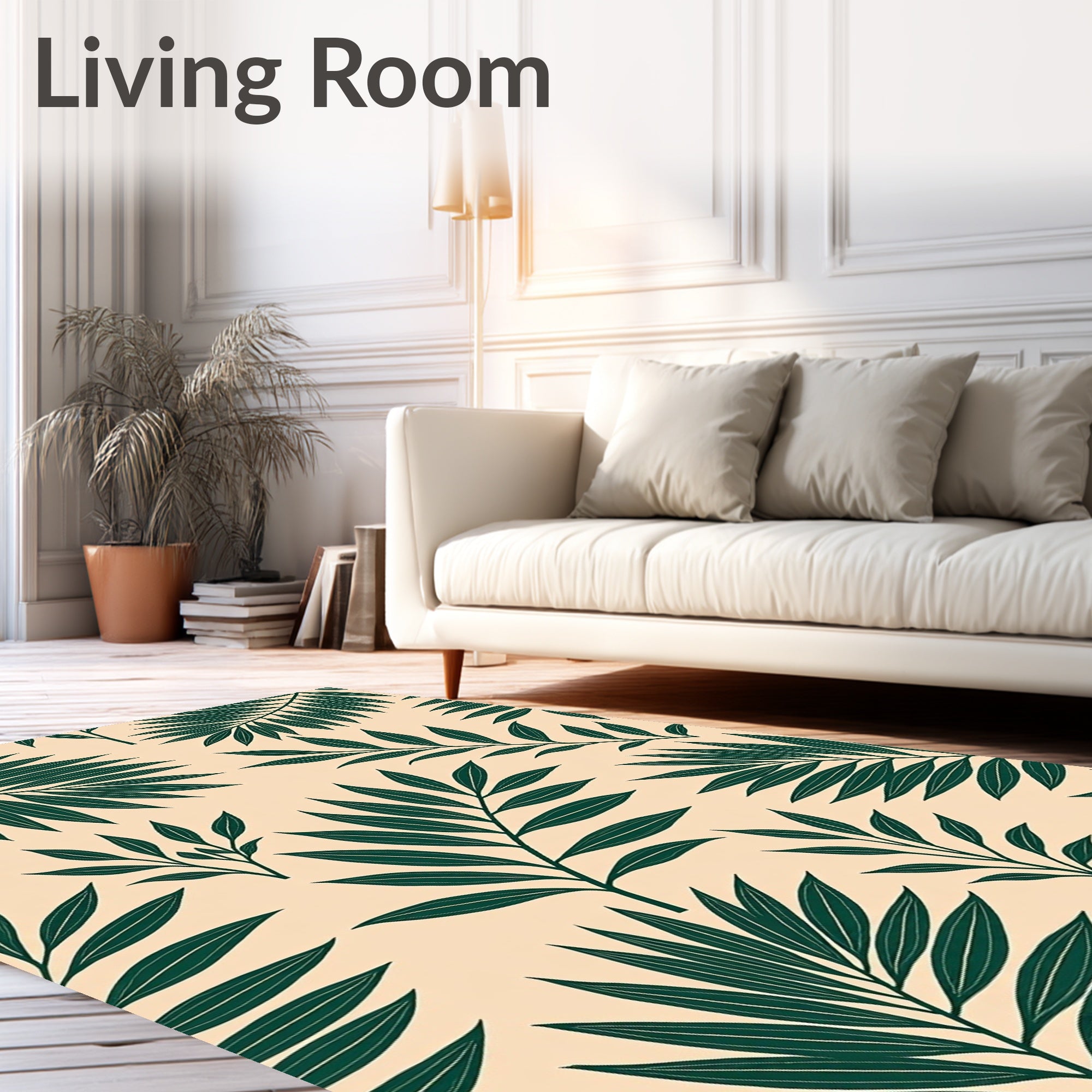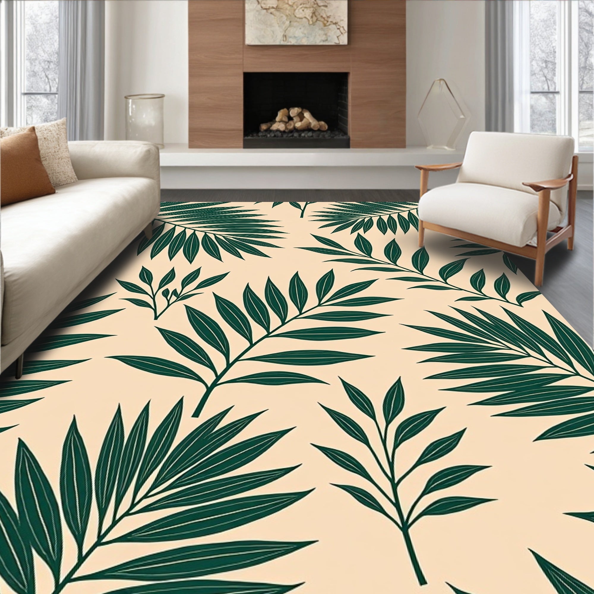 Ultra Soft Area Rug, Non Slip, Stain Resistant, Washable Area Rugs for Living Room, Bedroom, Tropical Foliage Wilderness Print with Nature Inspired Botanical Motifs(Beige) Overview:
