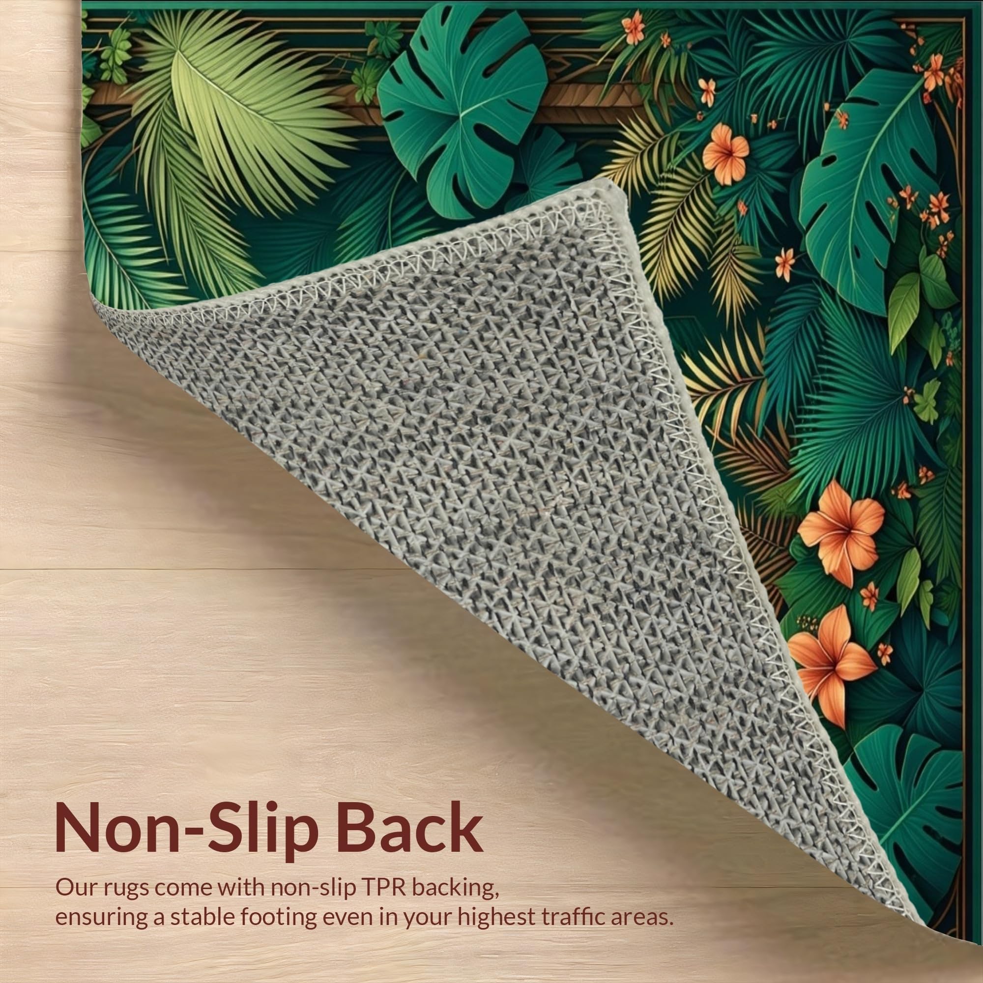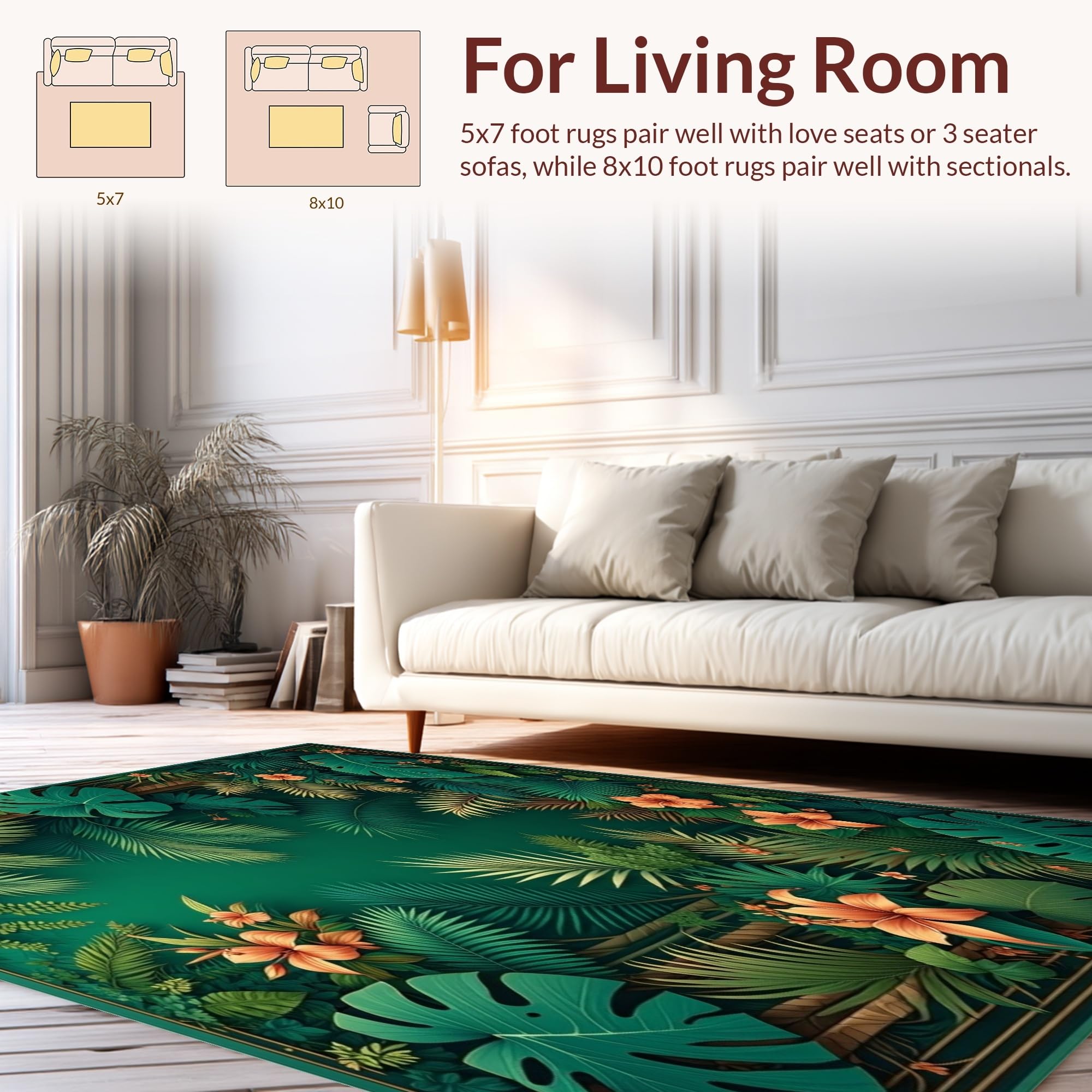 Ultra Soft Area Rug, Non Slip, Stain Resistant, Washable Area Rugs for Living Room, Bedroom, Tropical Forest for Boys(Green) Overview: