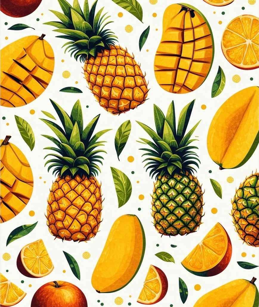 Tropical Fruit Colorful Pineapple & Mango Print(Yellow)