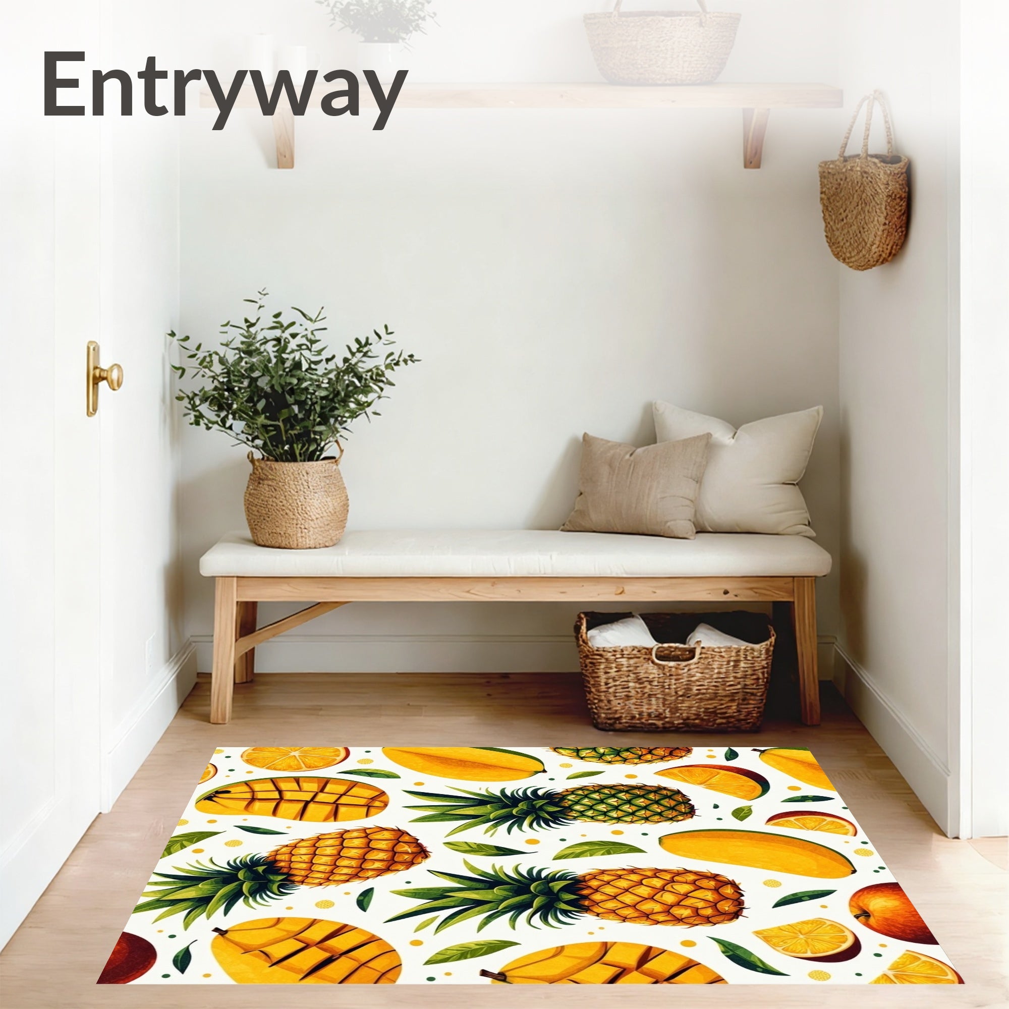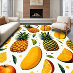 Flatwoven High Traffic Area Rug, Tropical Fruit Colorful Pineapple & Mango Print, Non Slip, Stain Resistant, Washable Area Rugs for Living Room, Bedroom (Yellow) Overview: