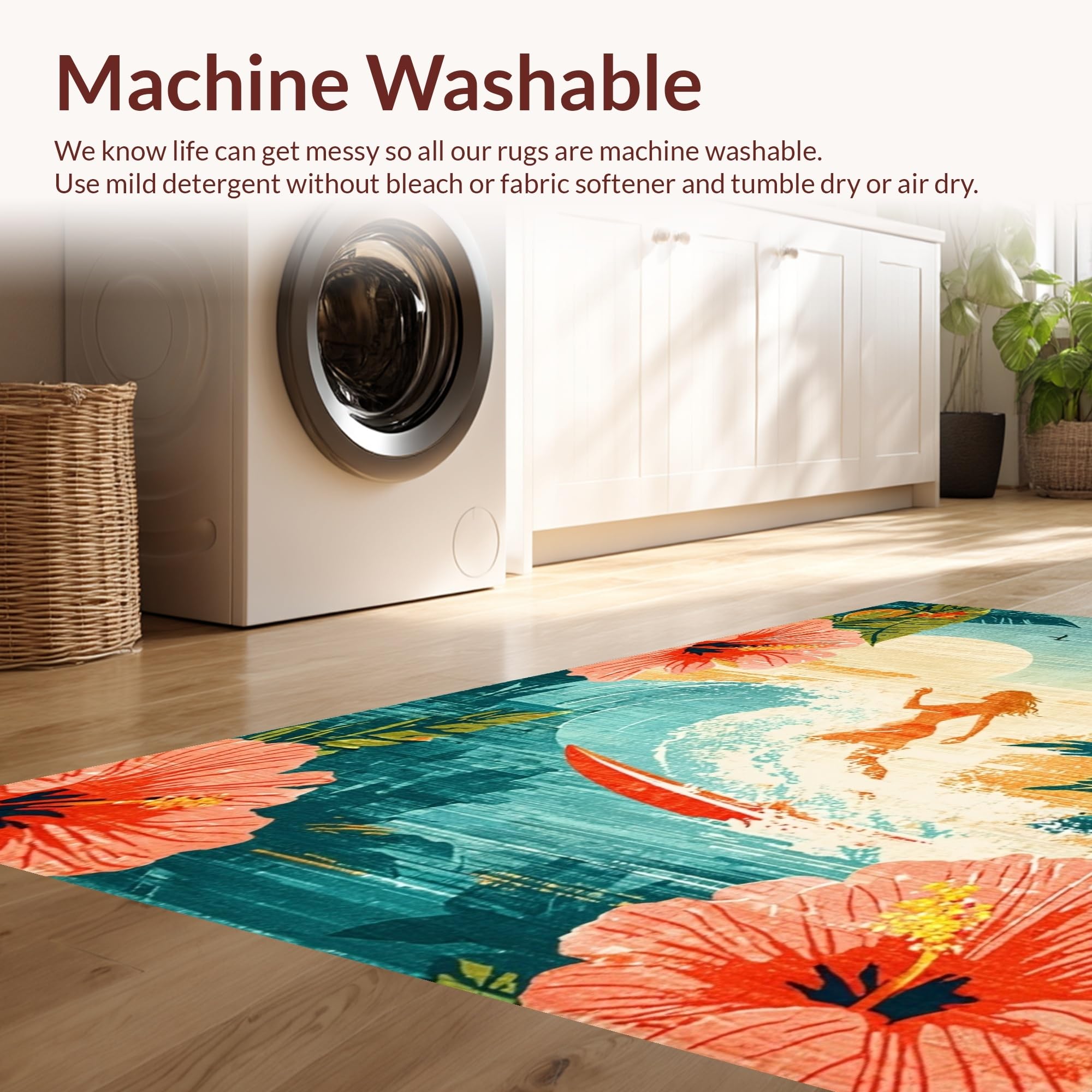 - Machine Washable: Our rugs can be easily thrown in the wash machine.