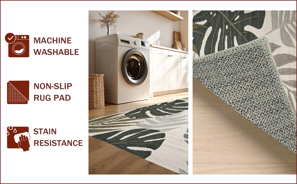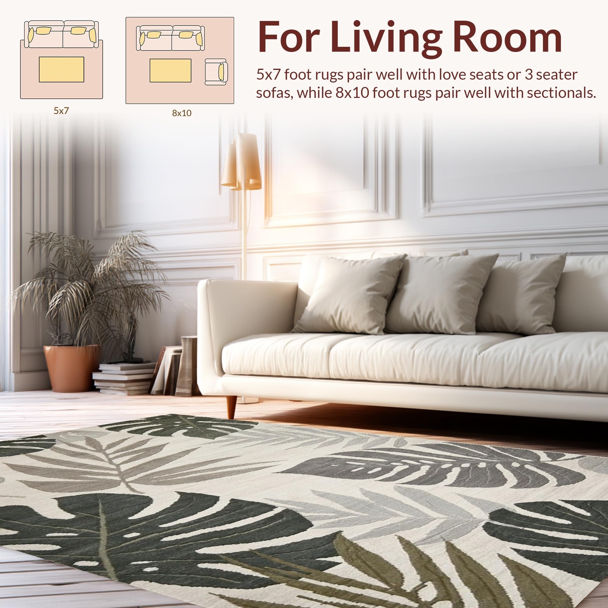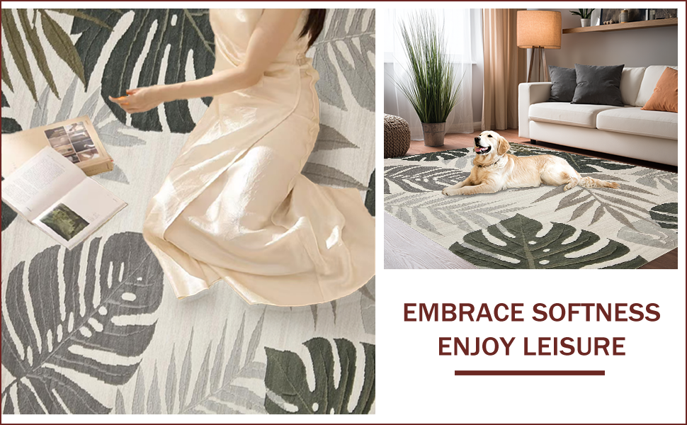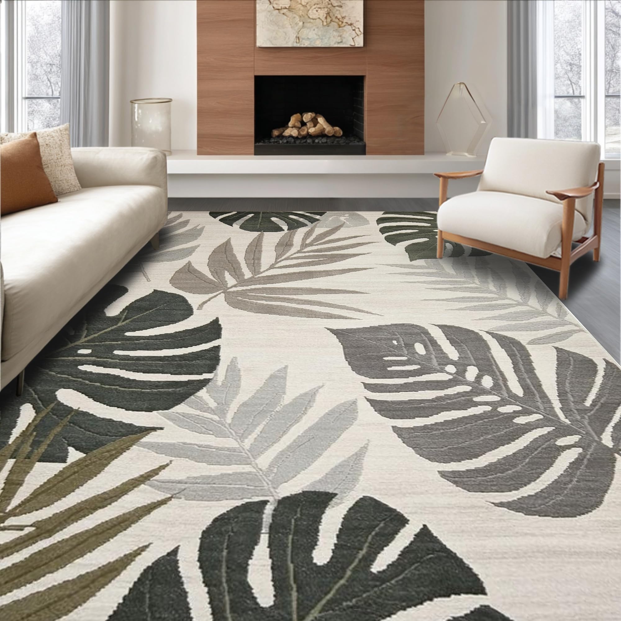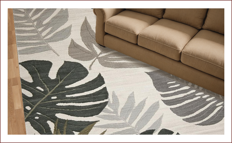Ultra Soft Area Rug, Non Slip, Stain Resistant, Washable Area Rugs for Living Room, Bedroom, Tropical Inspired Leaf Aesthetic(Beige) Overview:
