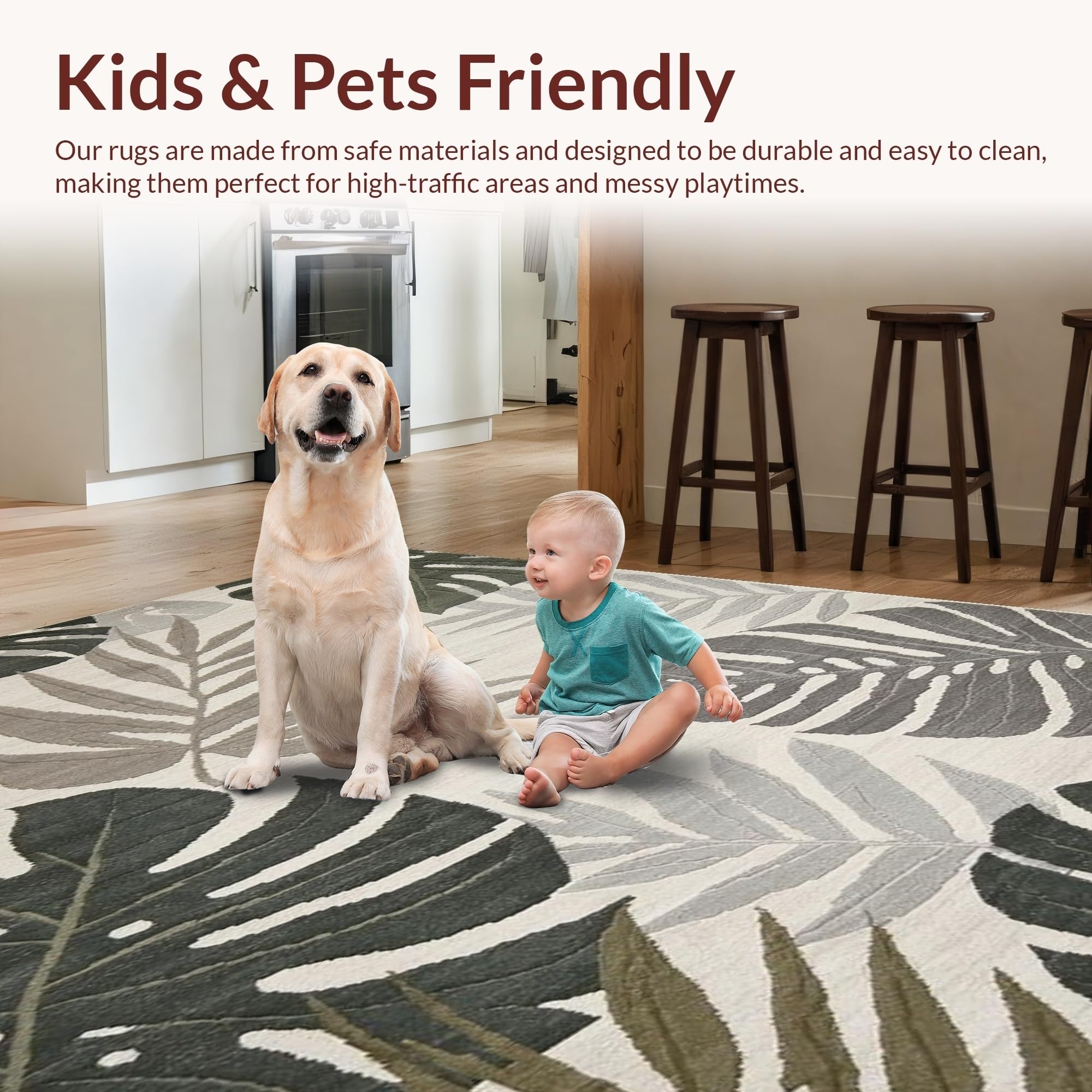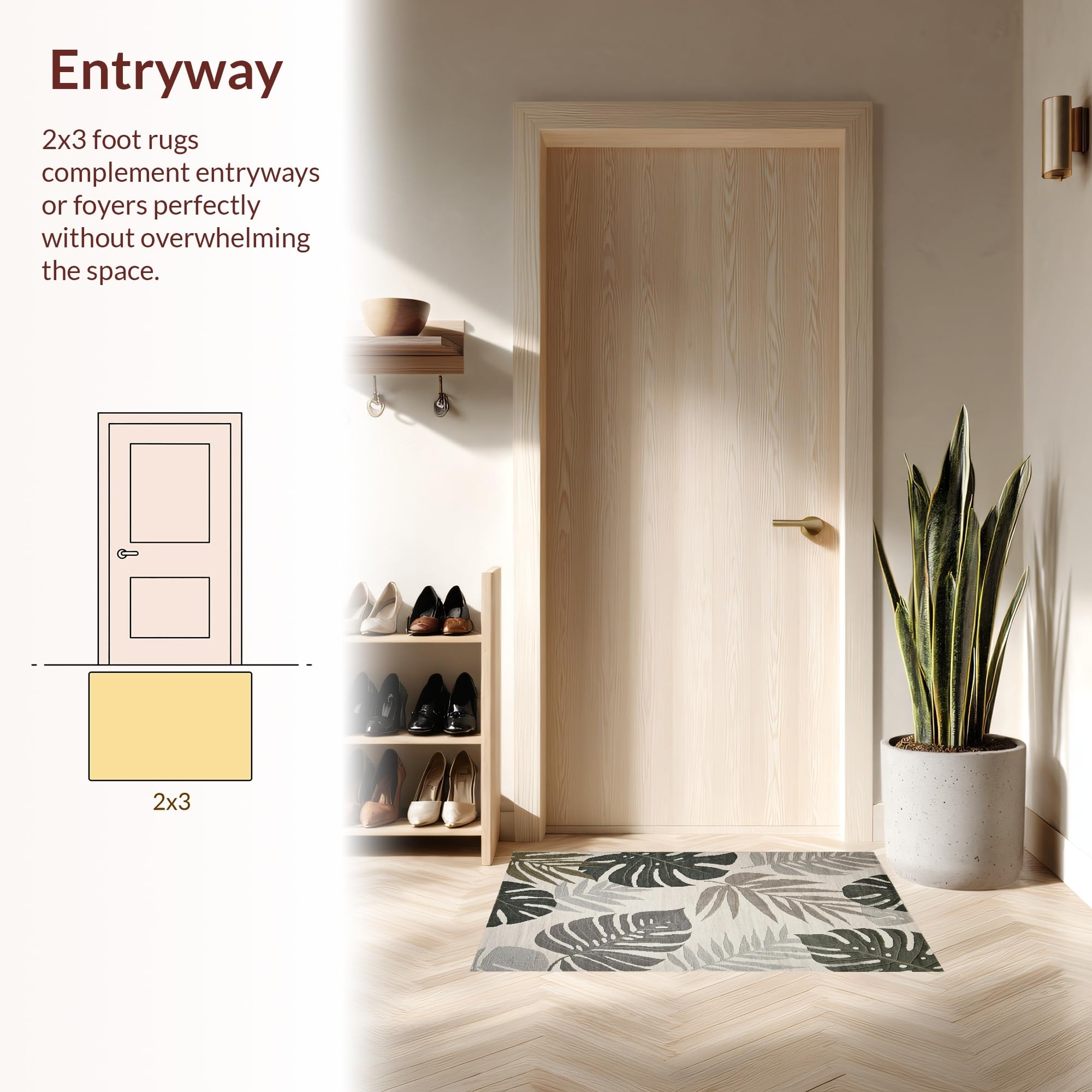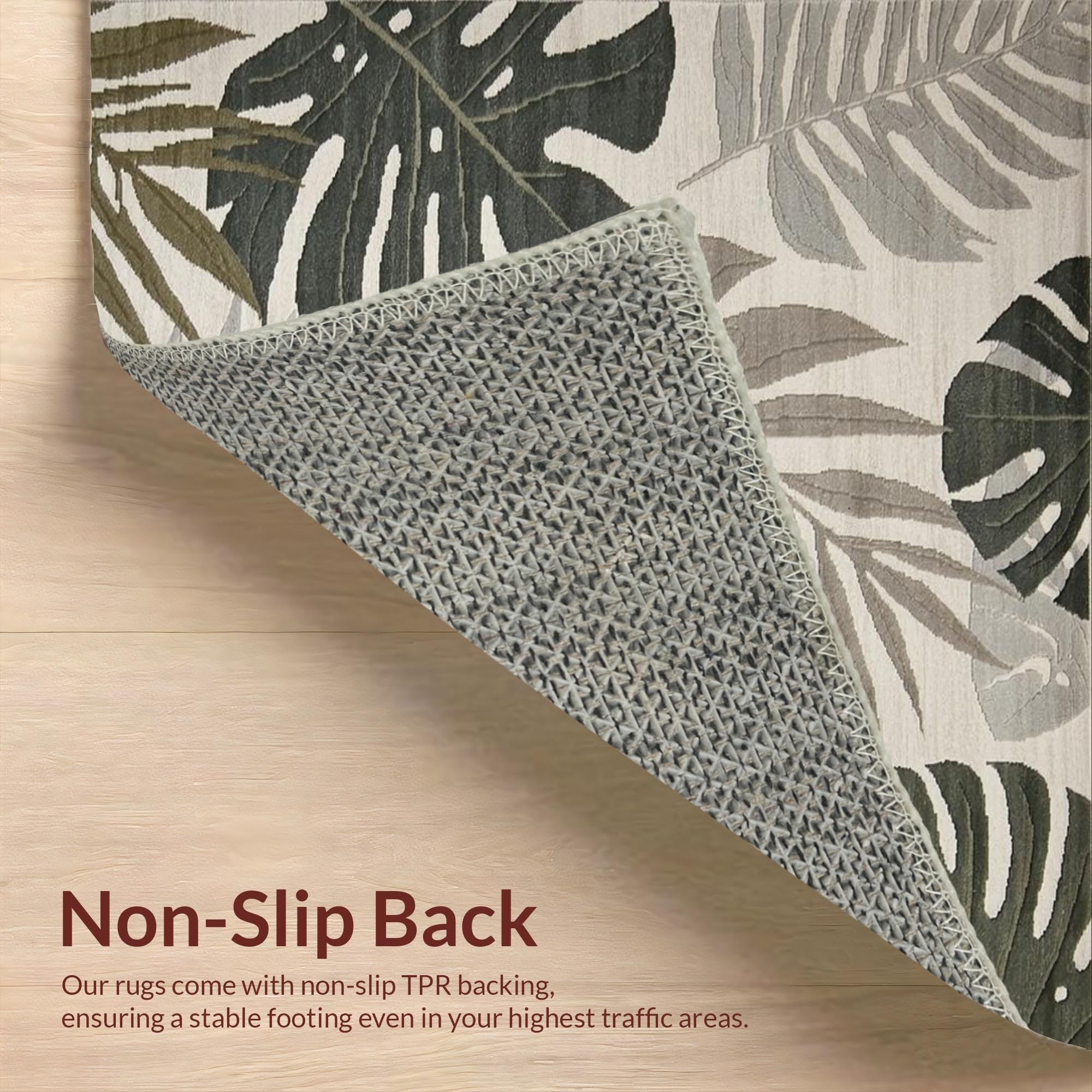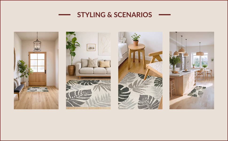 Ultra Soft Area Rug, Non Slip, Stain Resistant, Washable Area Rugs for Living Room, Bedroom, Tropical Inspired Leaf Aesthetic(Beige) Overview:
