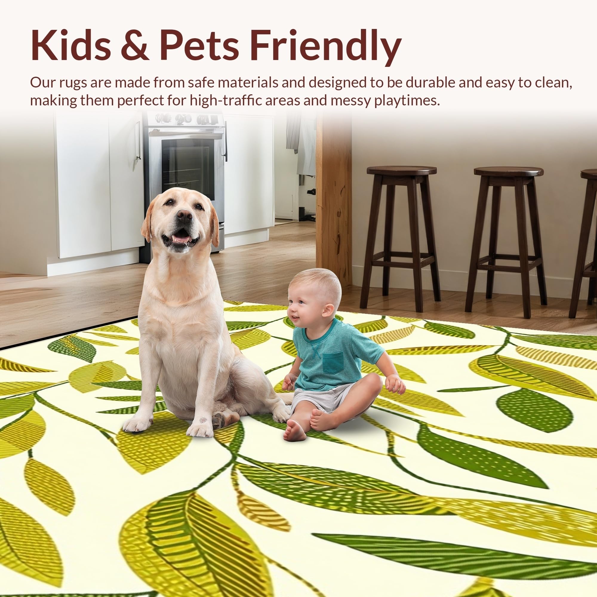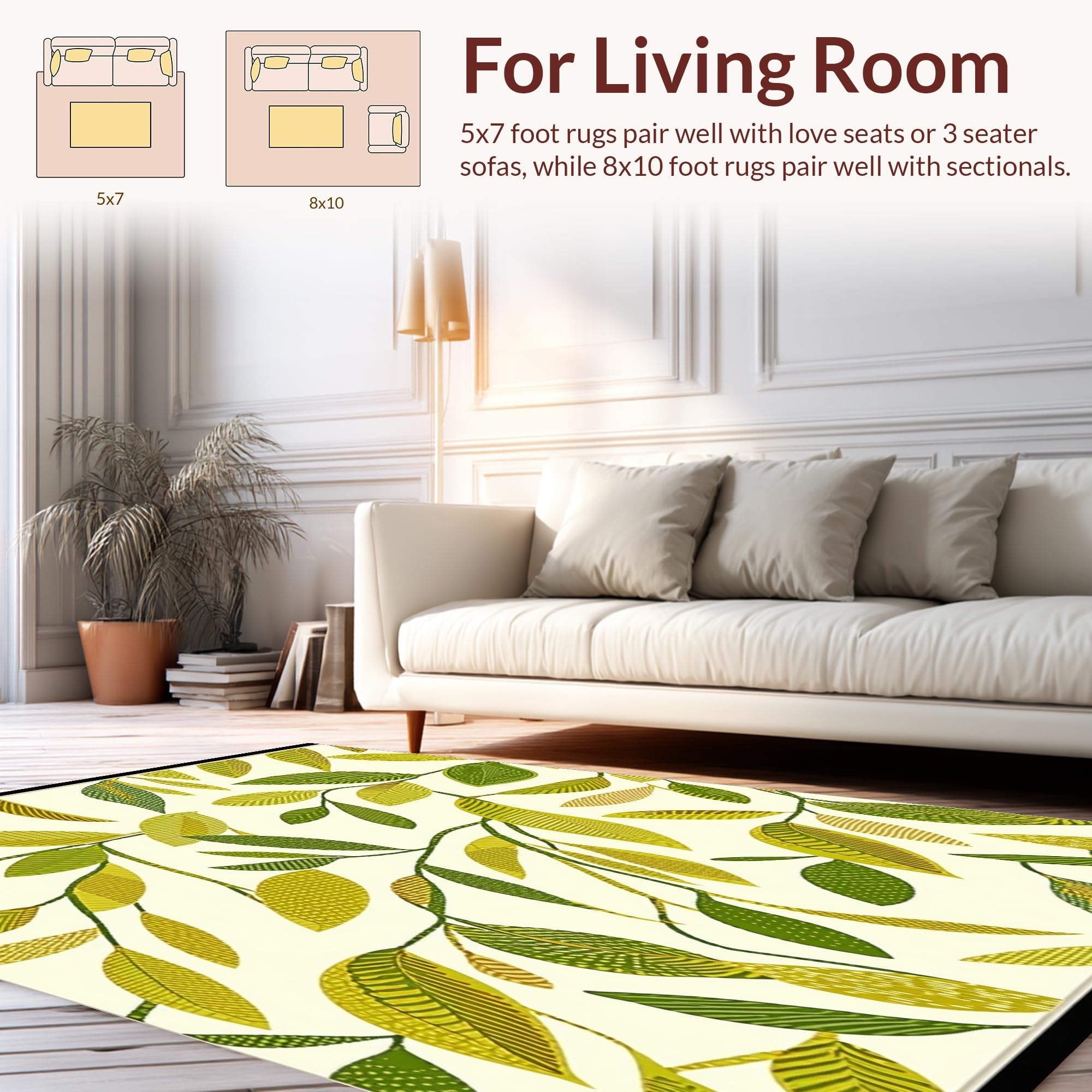 Ultra Soft Area Rug, Non Slip, Stain Resistant, Washable Area Rugs for Living Room, Bedroom, Tropical Leaf Beige Featuring a Vibrant Nature Inspired Design(Ivory) Overview: