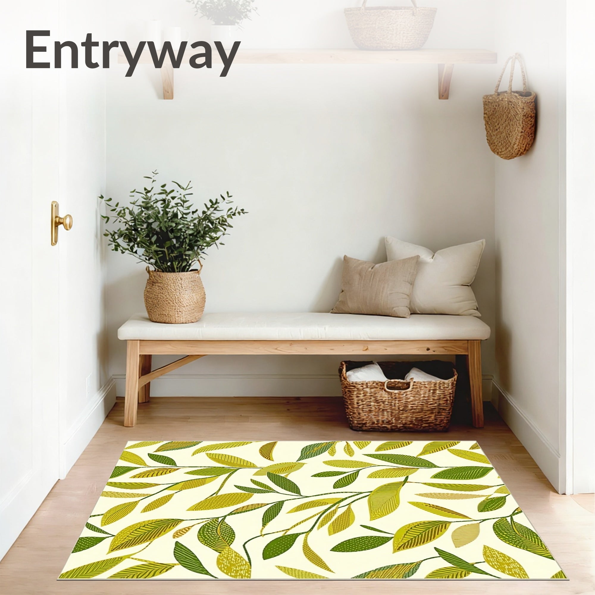 Flatwoven High Traffic Area Rug, Tropical Leaf Beige Featuring a Vibrant Nature Inspired Design, Non Slip, Stain Resistant, Washable Area Rugs for Living Room, Bedroom (Ivory) Overview:
