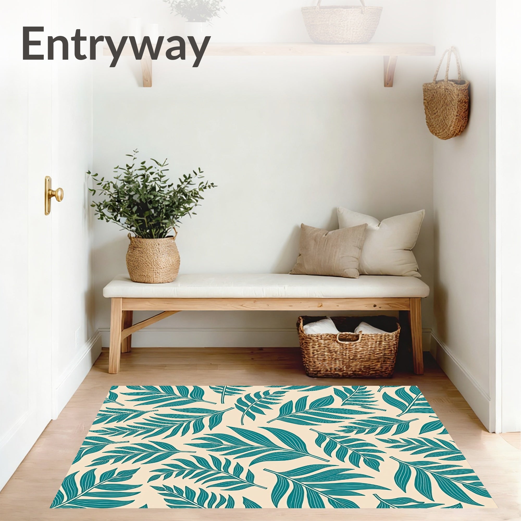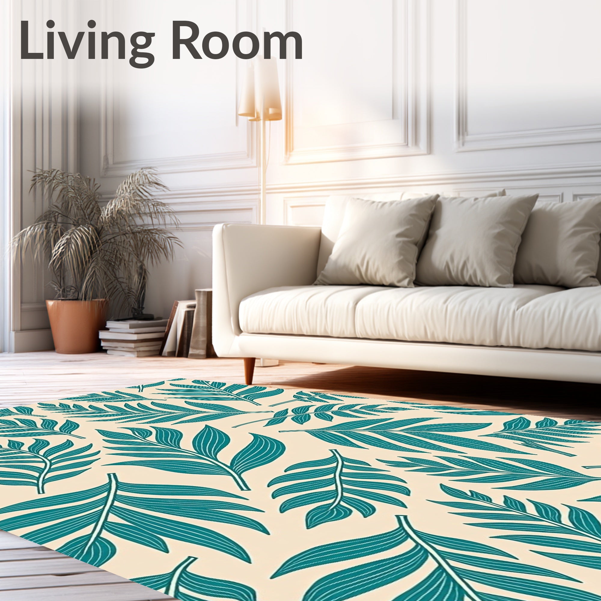 Ultra Soft Area Rug, Non Slip, Stain Resistant, Washable Area Rugs for Living Room, Bedroom, Tropical Leaf Mosaic Radiant Foliage Arrangement(Teal) Overview: