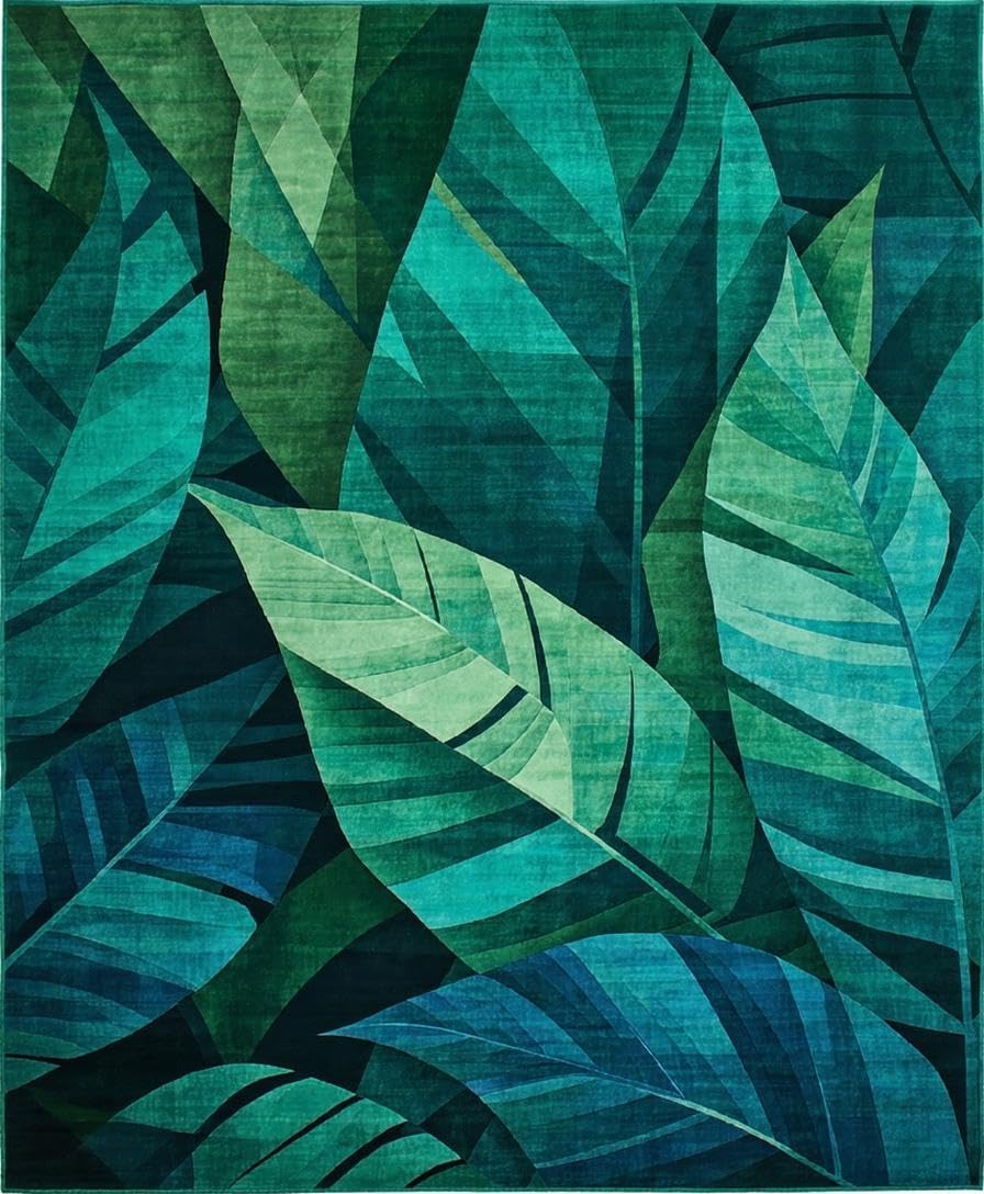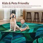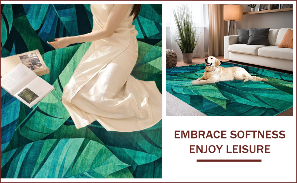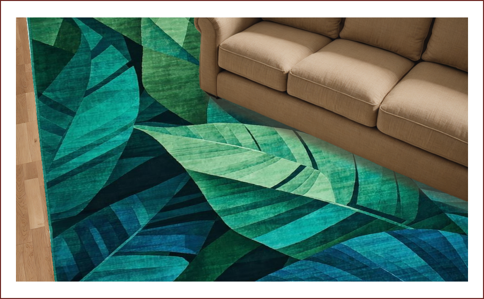 Ultra Soft Area Rug, Non Slip, Stain Resistant, Washable Area Rugs for Living Room, Bedroom, Tropical Leaf Motif with Soft Textures(Blue) Overview: