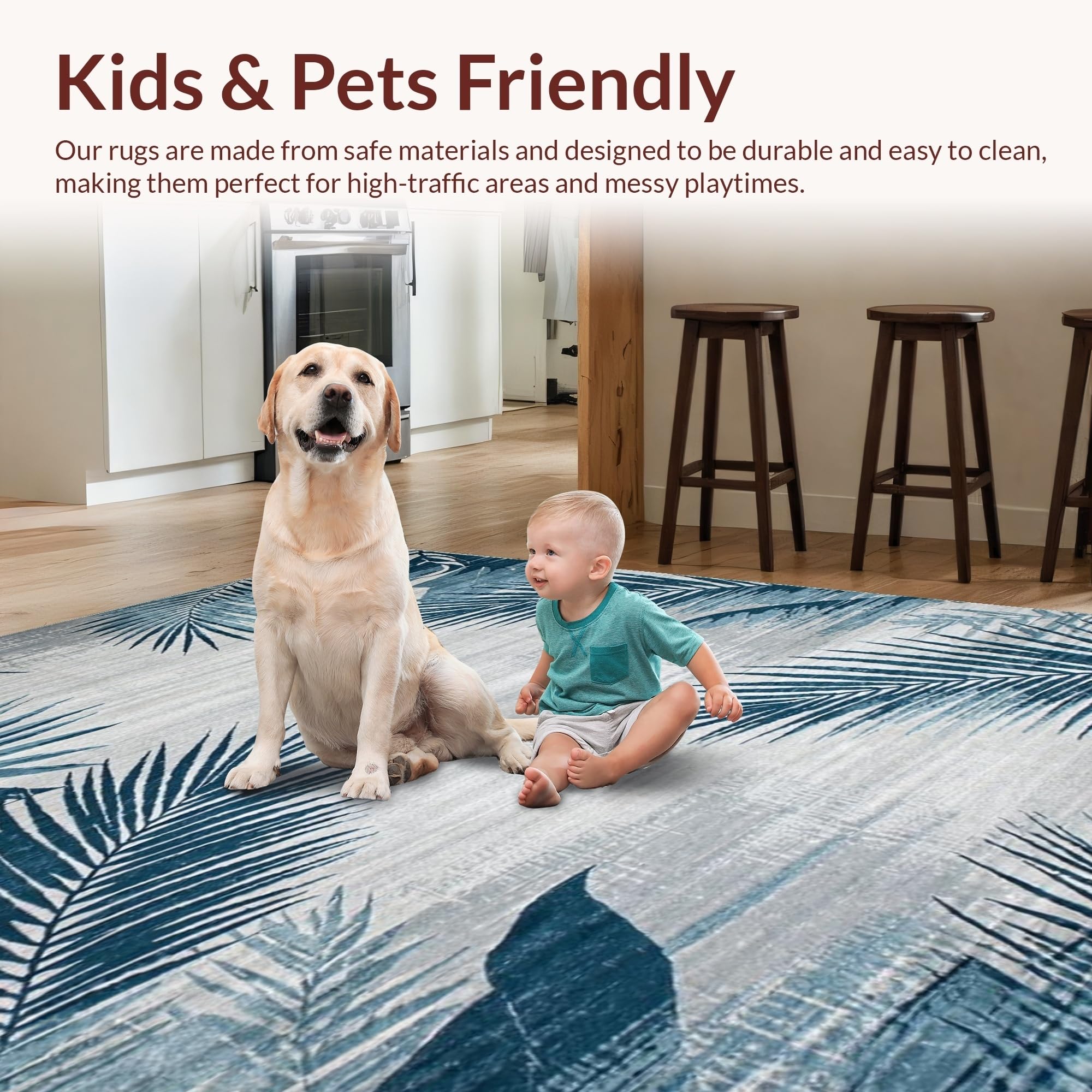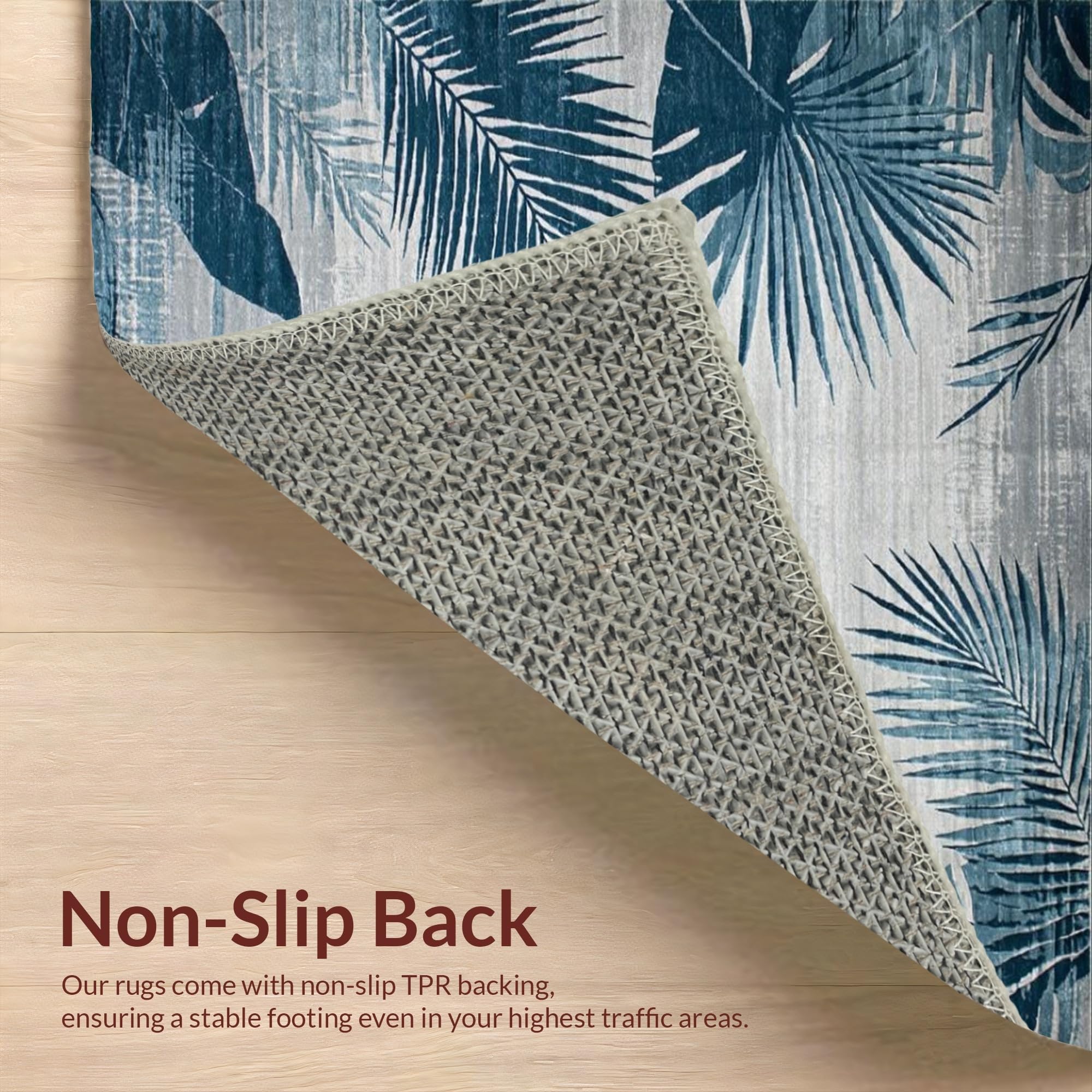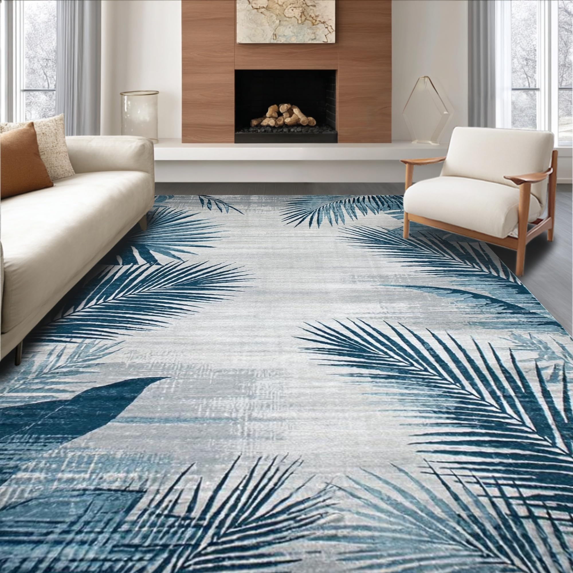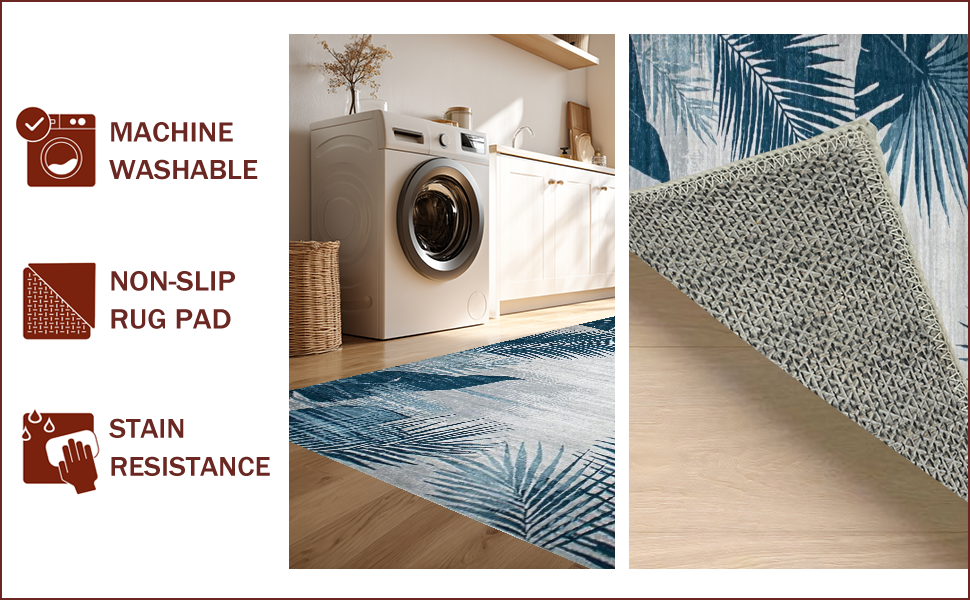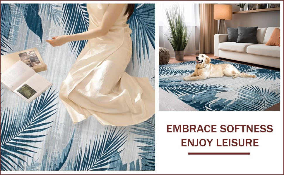 Ultra Soft Area Rug, Non Slip, Stain Resistant, Washable Area Rugs for Living Room, Bedroom, Tropical Leaf Vintage Elegance(Blue) Overview: