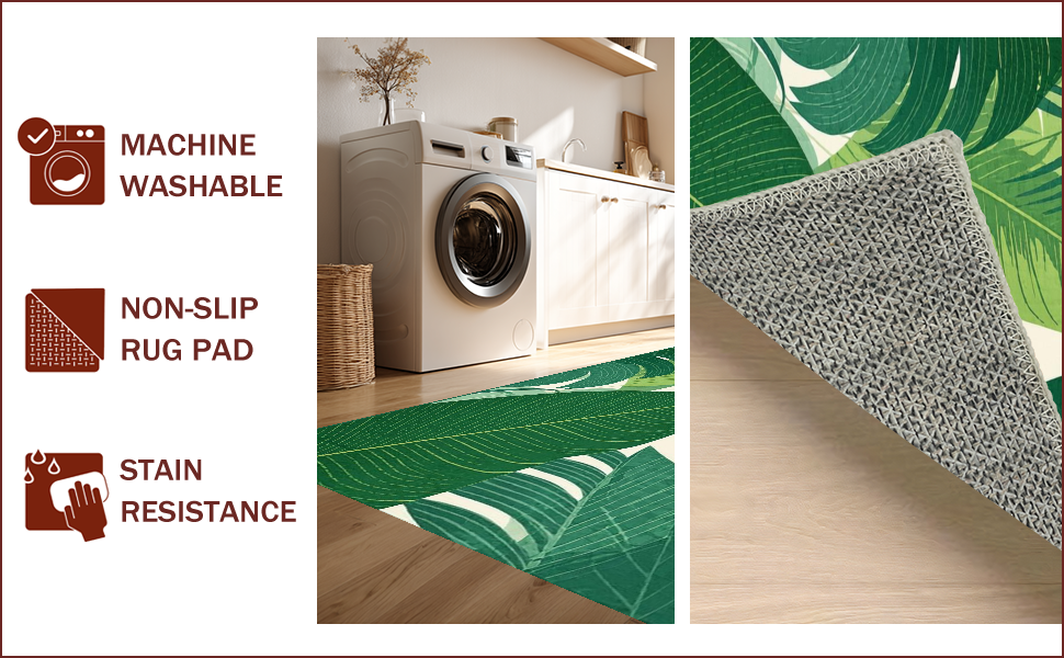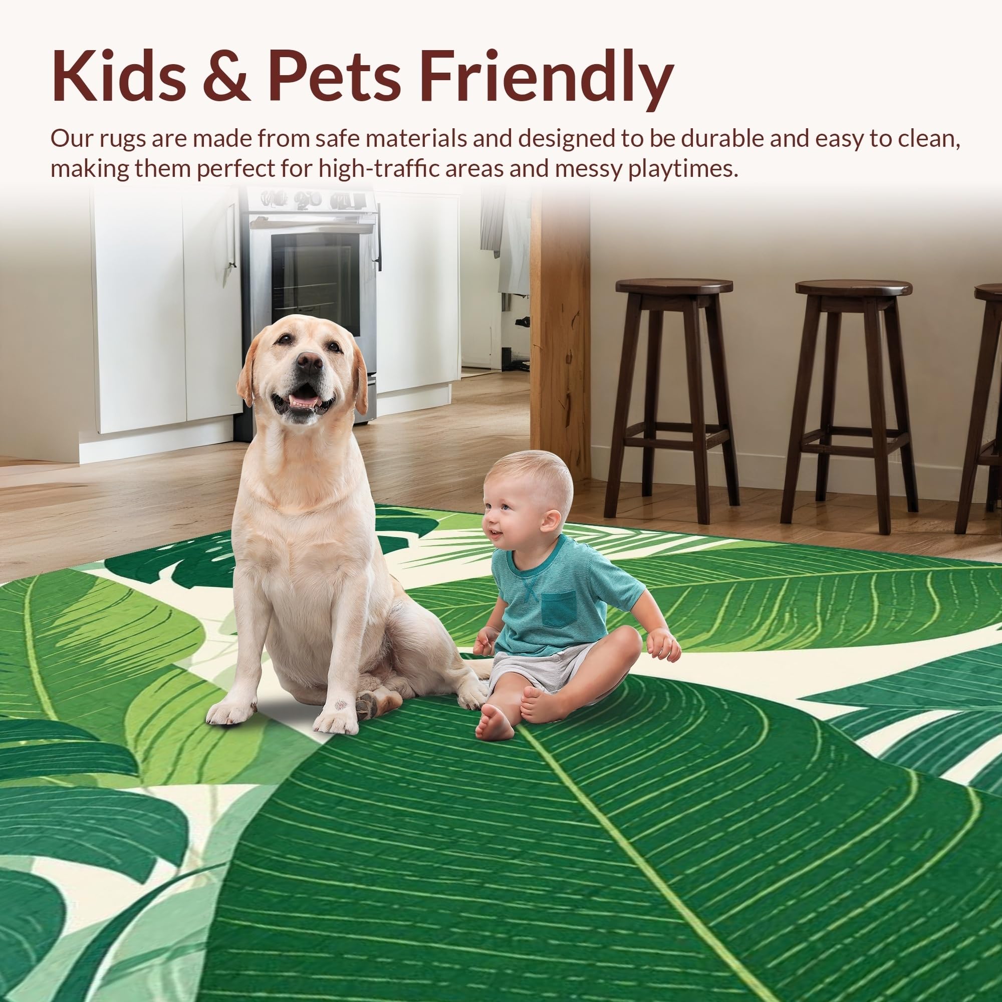 Ultra Soft Area Rug, Non Slip, Stain Resistant, Washable Area Rugs for Living Room, Bedroom, Tropical Leafy Botanical Vibe(Green) Overview: