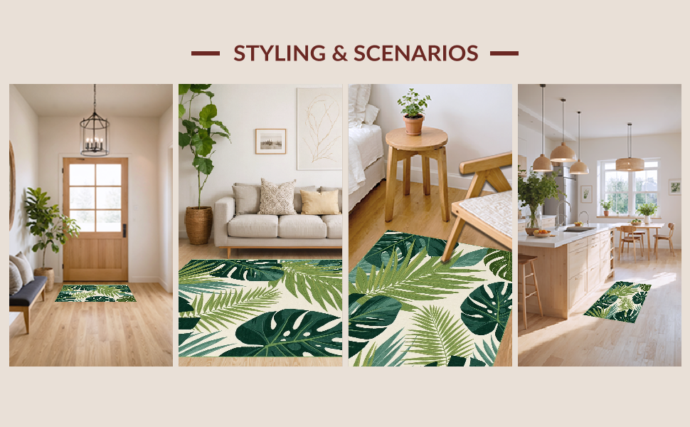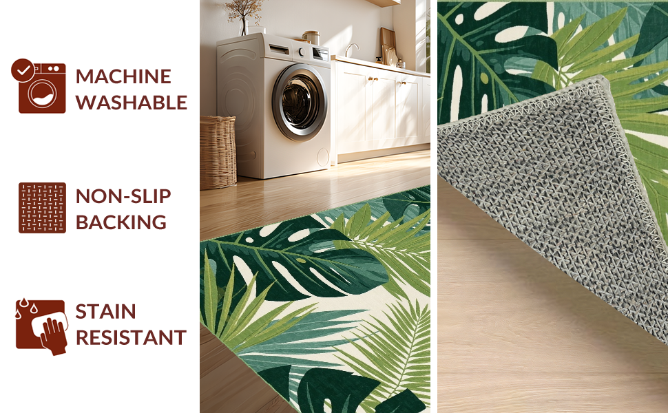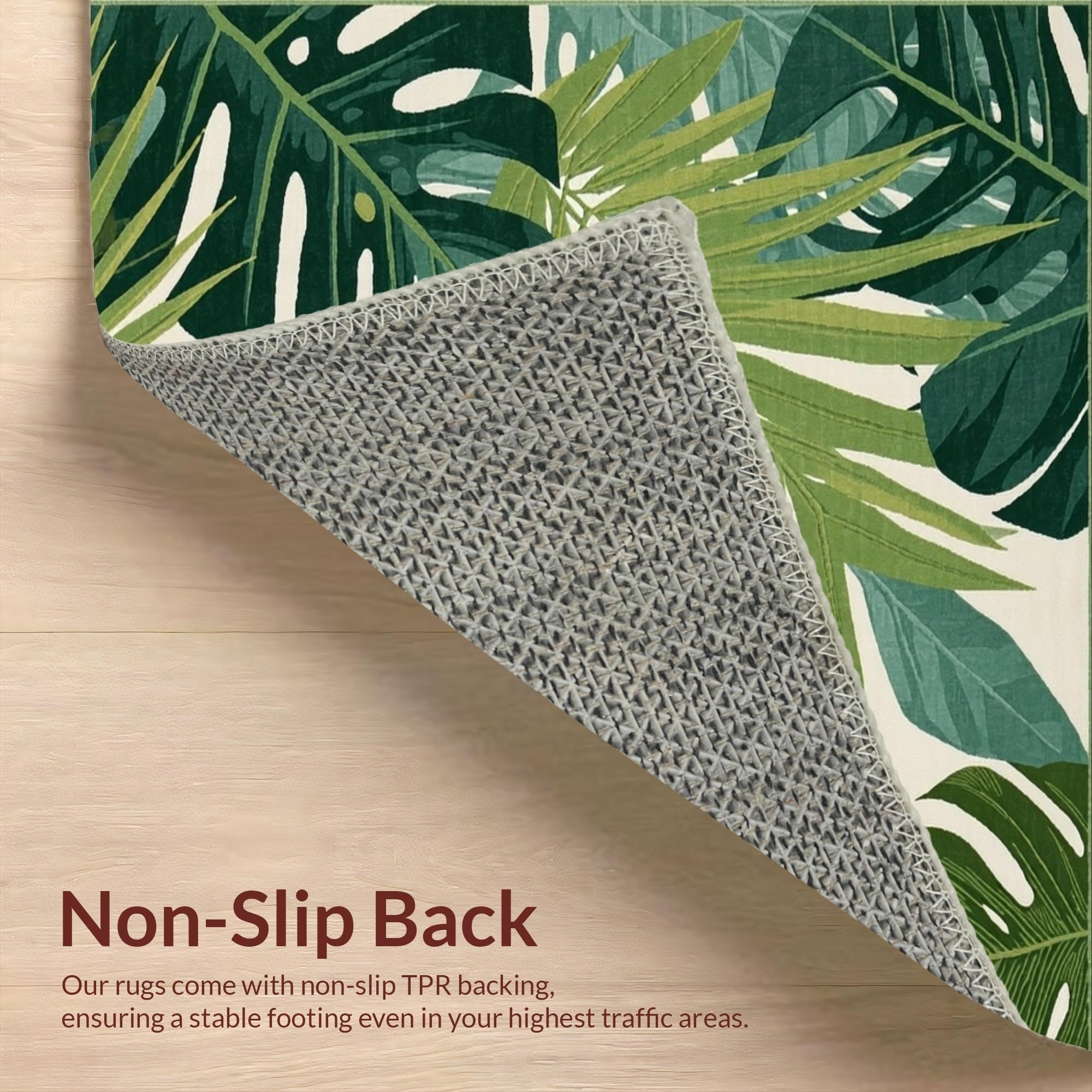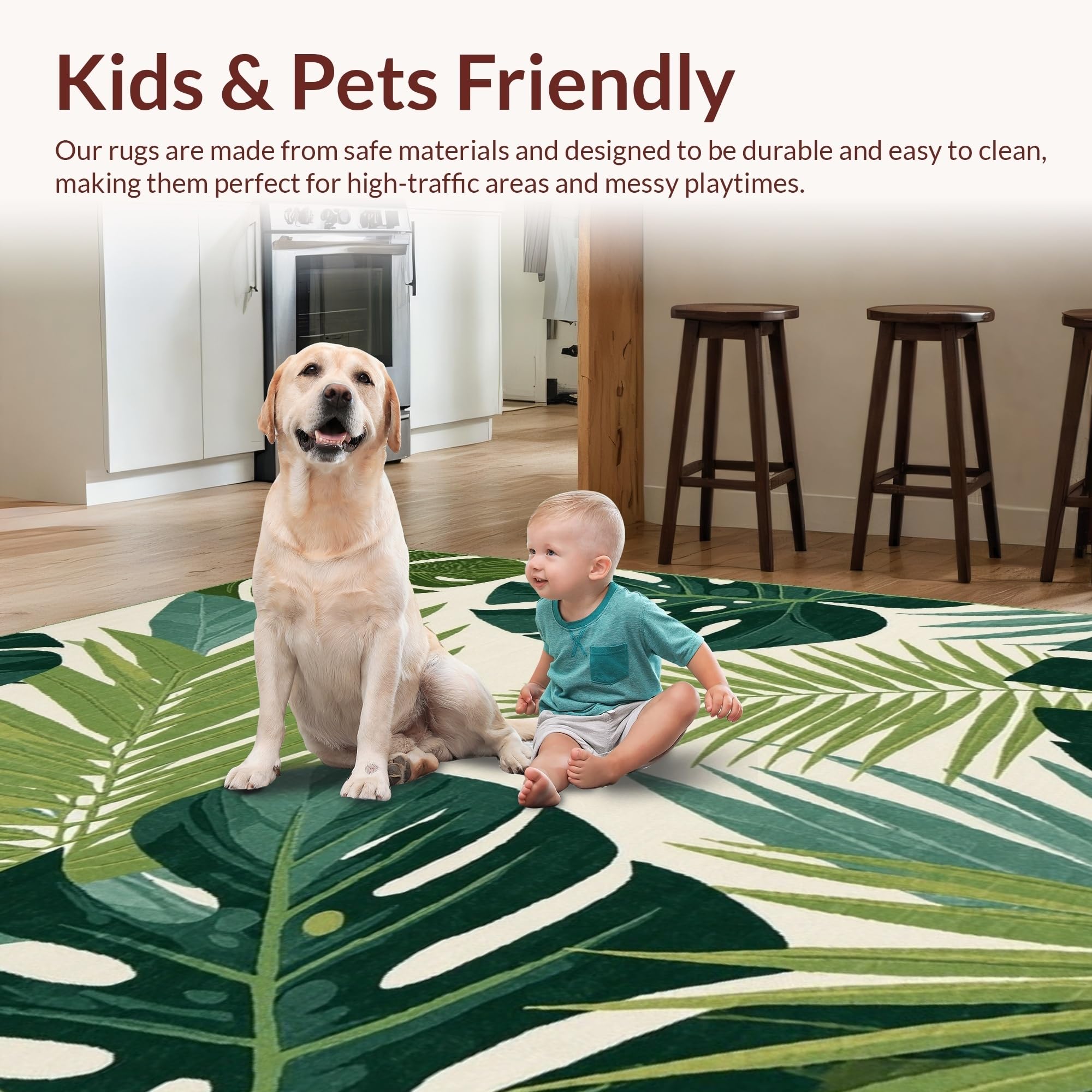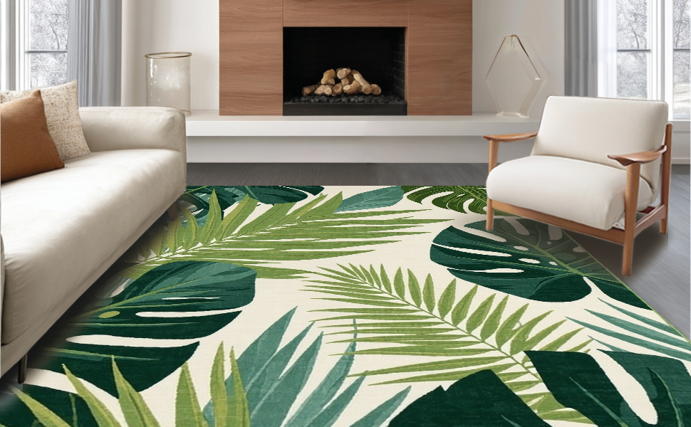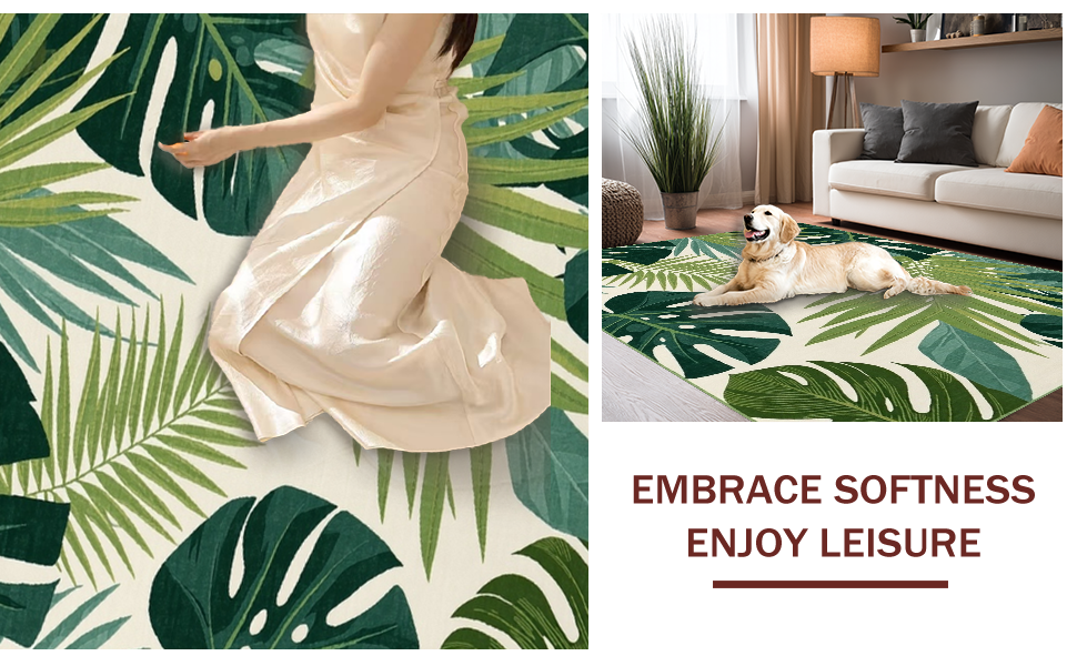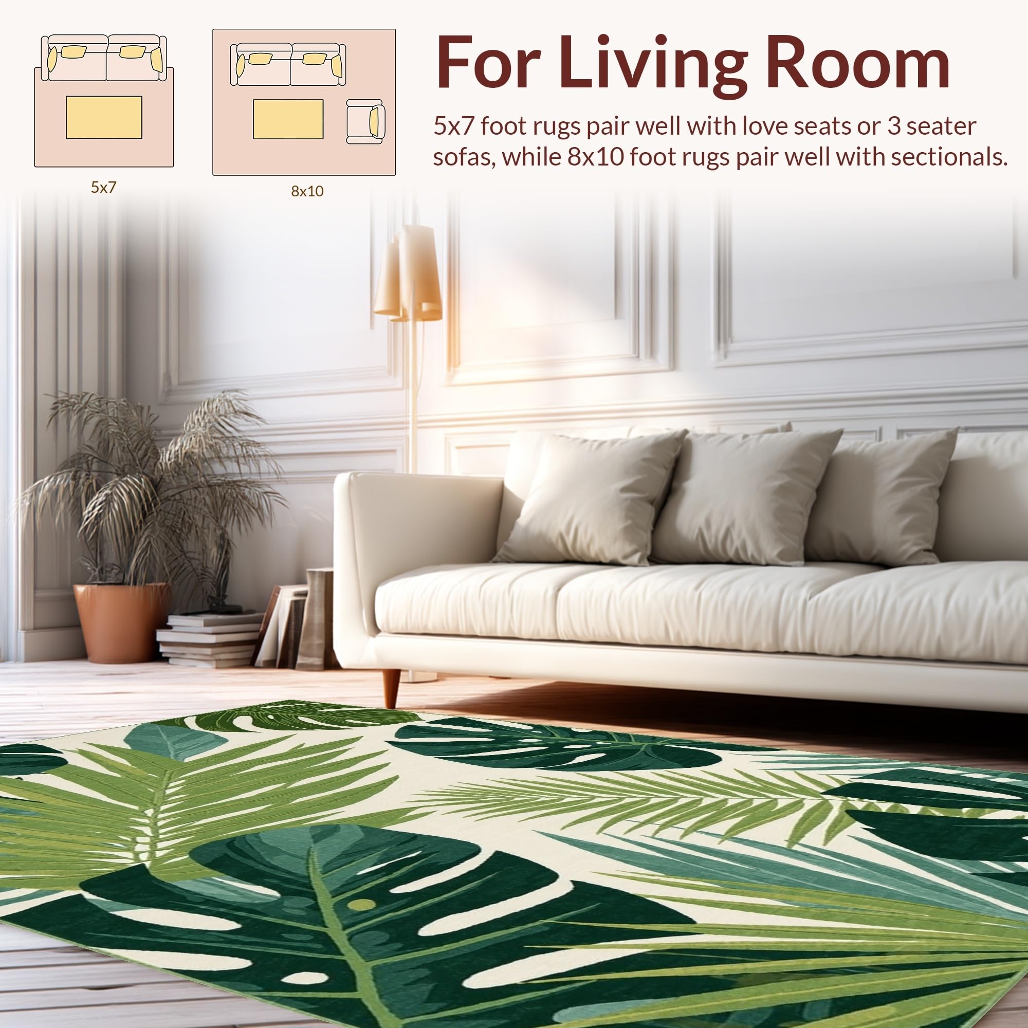 Ultra Soft Area Rug, Non Slip, Stain Resistant, Washable Area Rugs for Living Room, Bedroom, Tropical Leafy Green Aesthetic(Green) Overview: