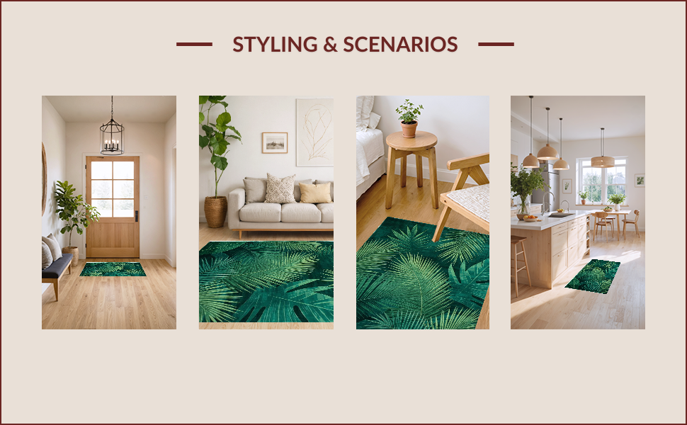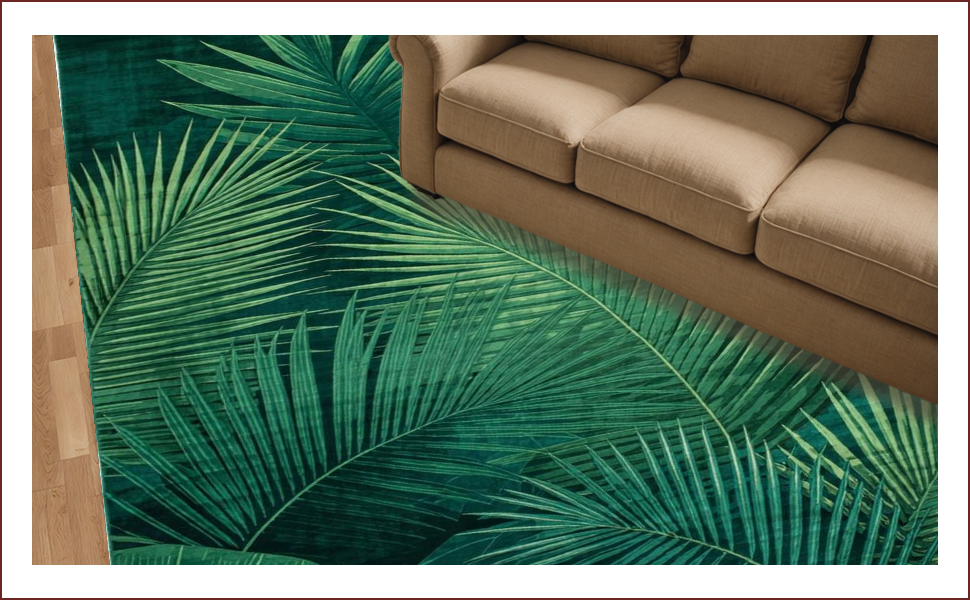 Ultra Soft Area Rug, Non Slip, Stain Resistant, Washable Area Rugs for Living Room, Bedroom, Tropical Leafy Oasis Aesthetic(Green) Overview: