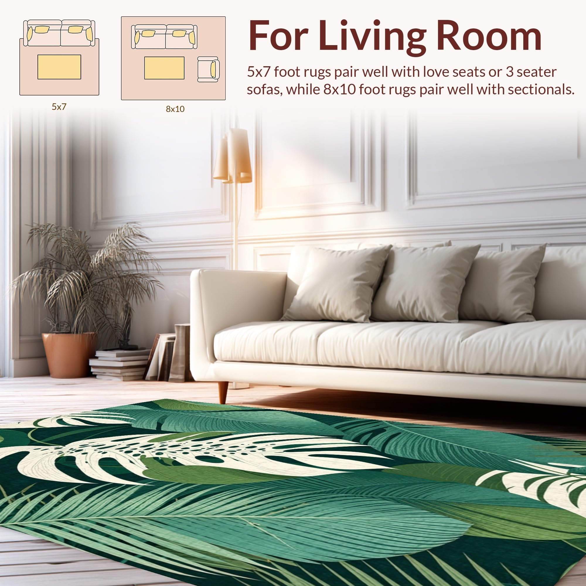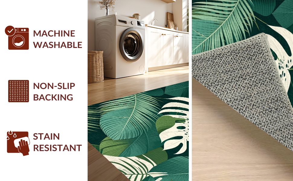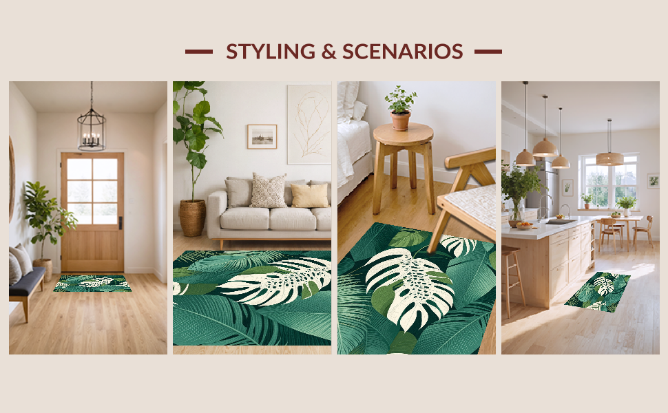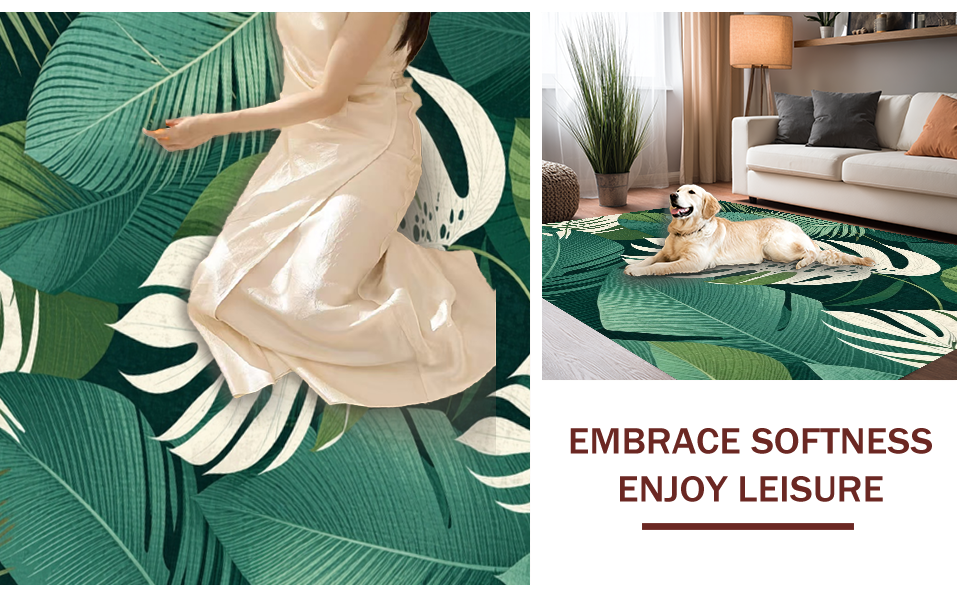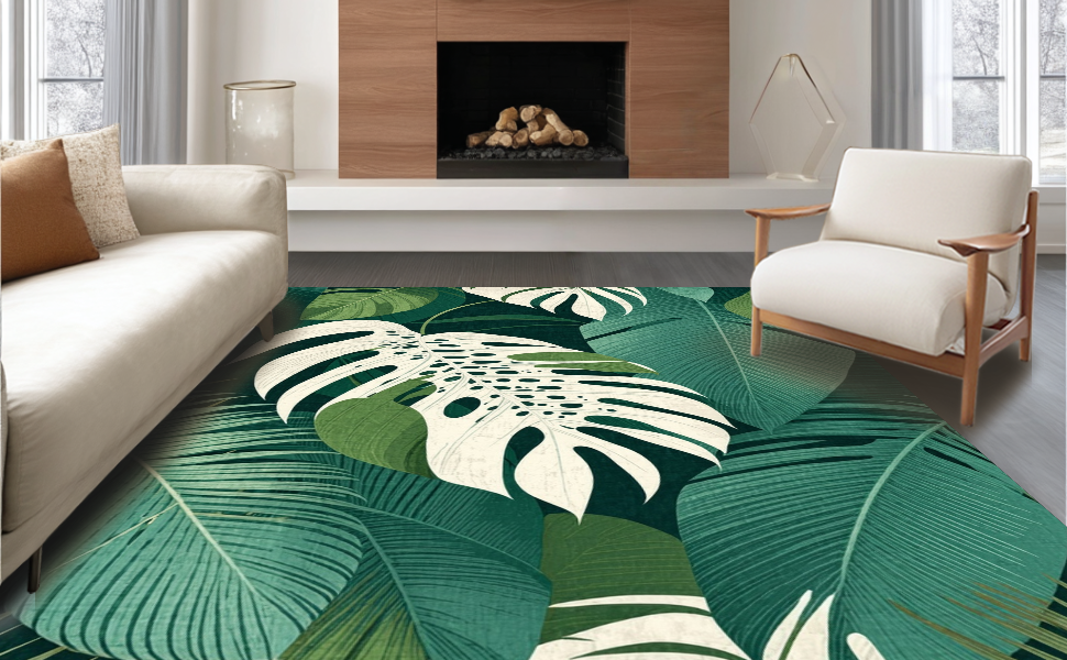 Ultra Soft Area Rug, Non Slip, Stain Resistant, Washable Area Rugs for Living Room, Bedroom, Tropical Monstera Leaf Aesthetic(Green) Overview: