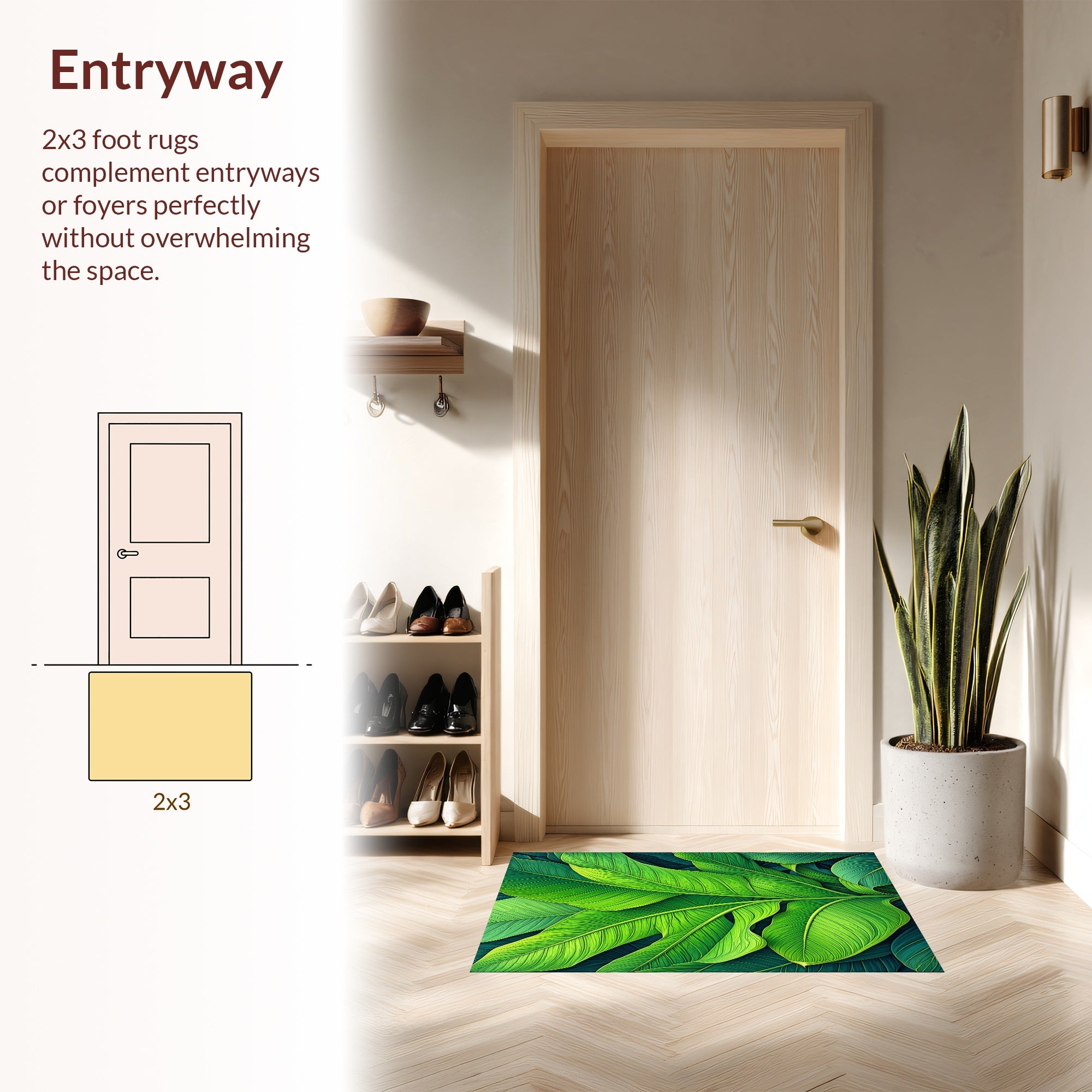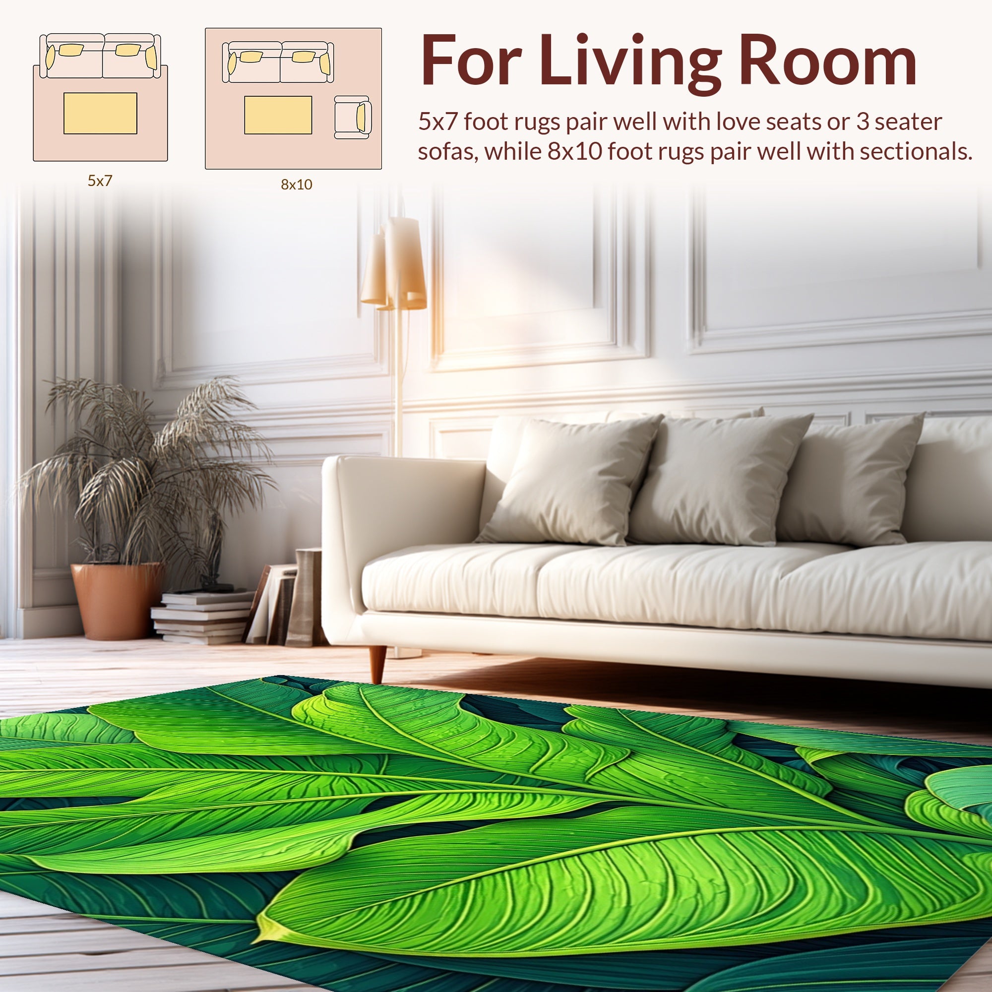 Flatwoven High Traffic Area Rug, Tropical Monstera Leaf, Non Slip, Stain Resistant, Washable Area Rugs for Living Room, Bedroom (Green) Overview: