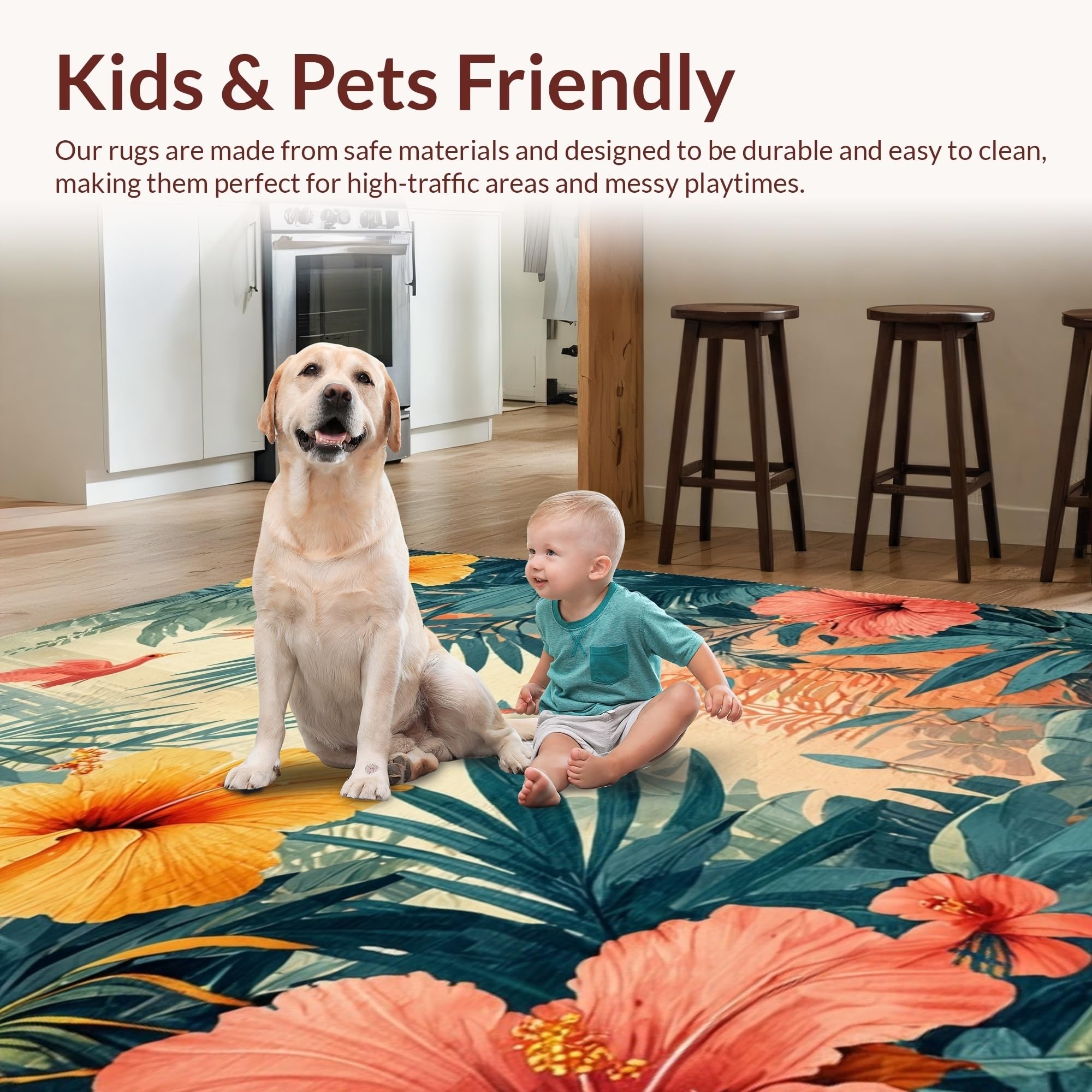 Ultra Soft Area Rug, Non Slip, Stain Resistant, Washable Area Rugs for Living Room, Bedroom, Tropical Paradise Rug(Green) Overview: