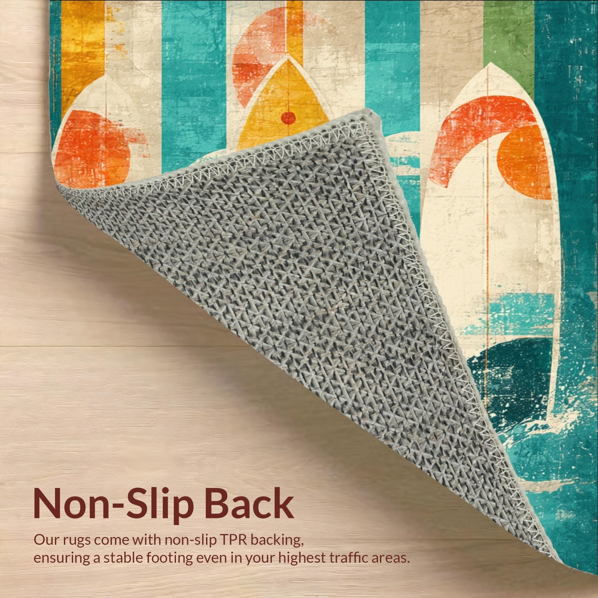 Ultra Soft Area Rug, Non Slip, Stain Resistant, Washable Area Rugs for Living Room, Bedroom, Tropical Paradise Surf Rug Ocean Inspired Longboard Decorative Mat(Blue) Overview: