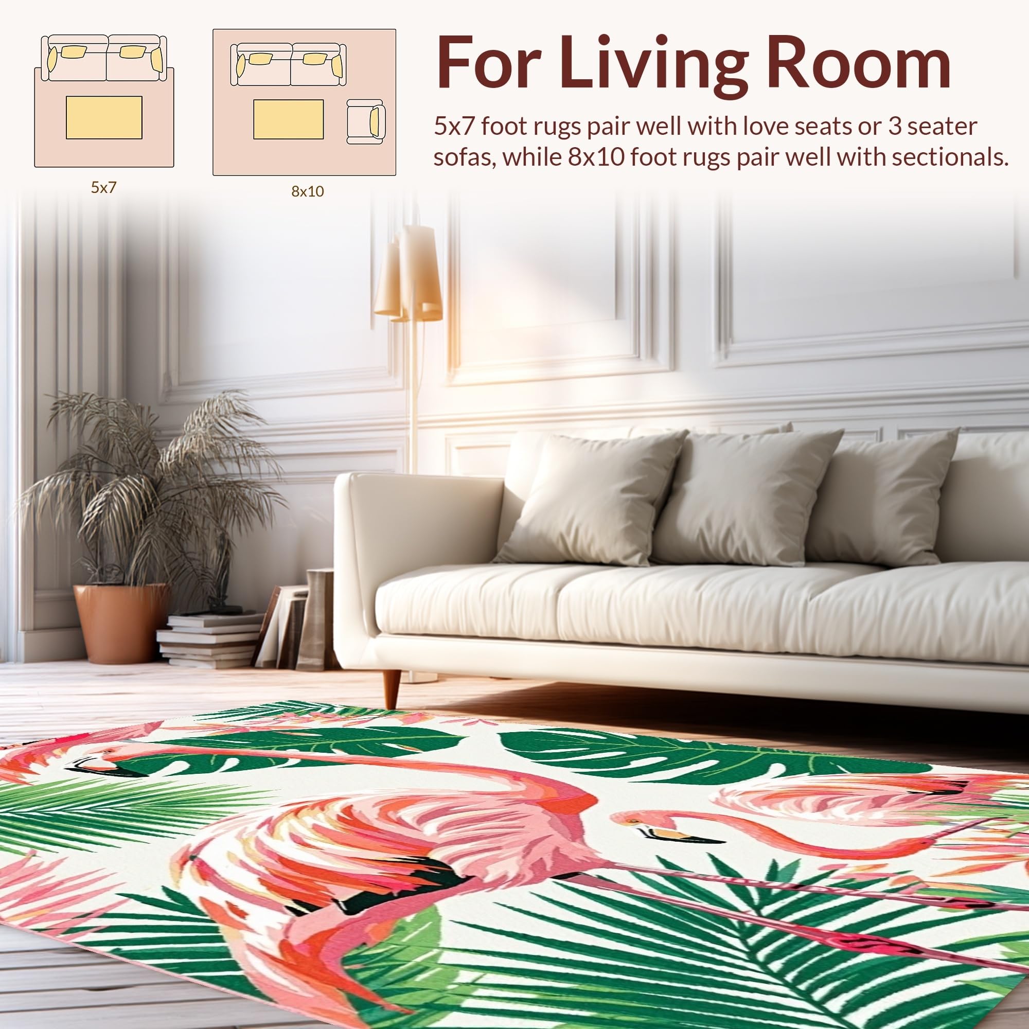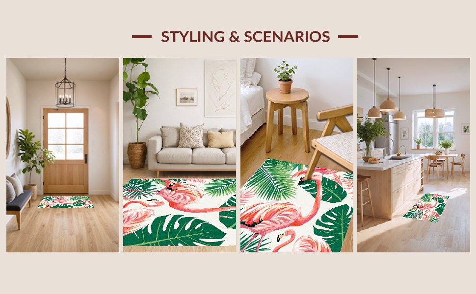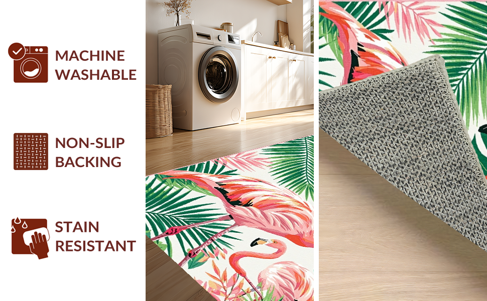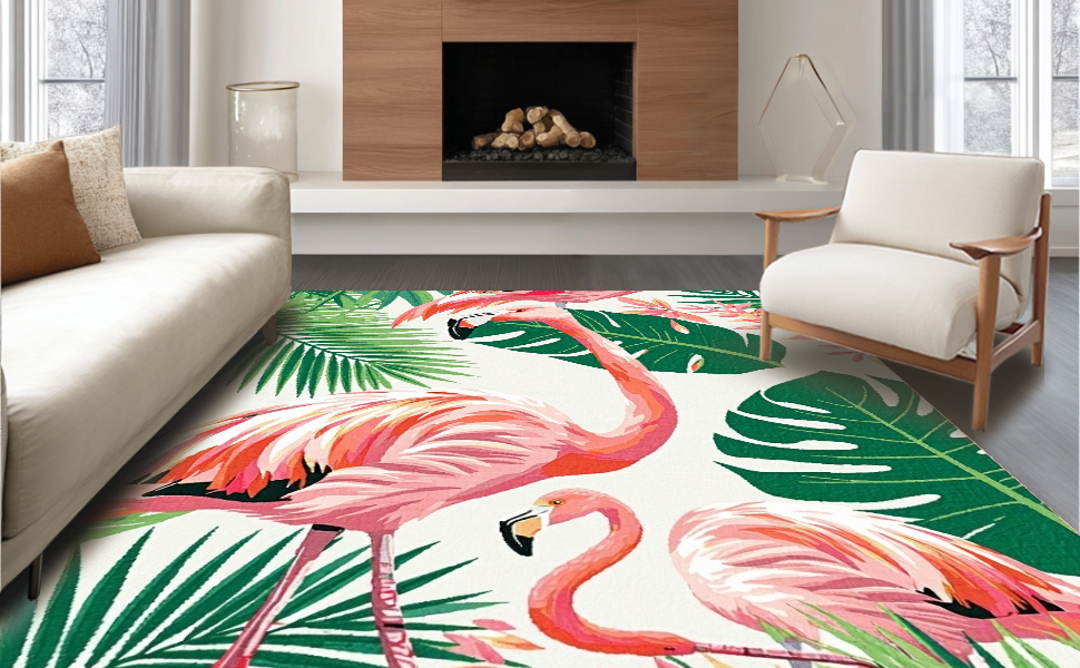 Ultra Soft Area Rug, Non Slip, Stain Resistant, Washable Area Rugs for Living Room, Bedroom, Tropical Pink Flamingo Aesthetic(Pink) Overview: