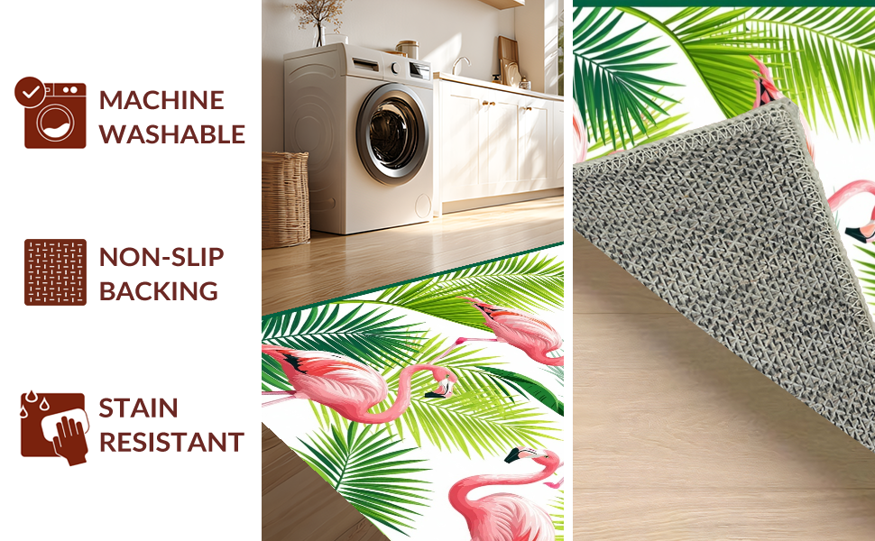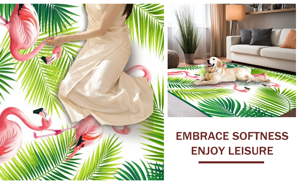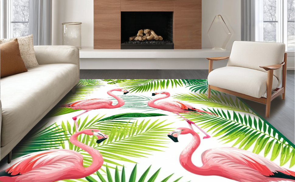 Ultra Soft Area Rug, Non Slip, Stain Resistant, Washable Area Rugs for Living Room, Bedroom, Tropical Playful Flamingo Aesthetic(Pink) Overview: