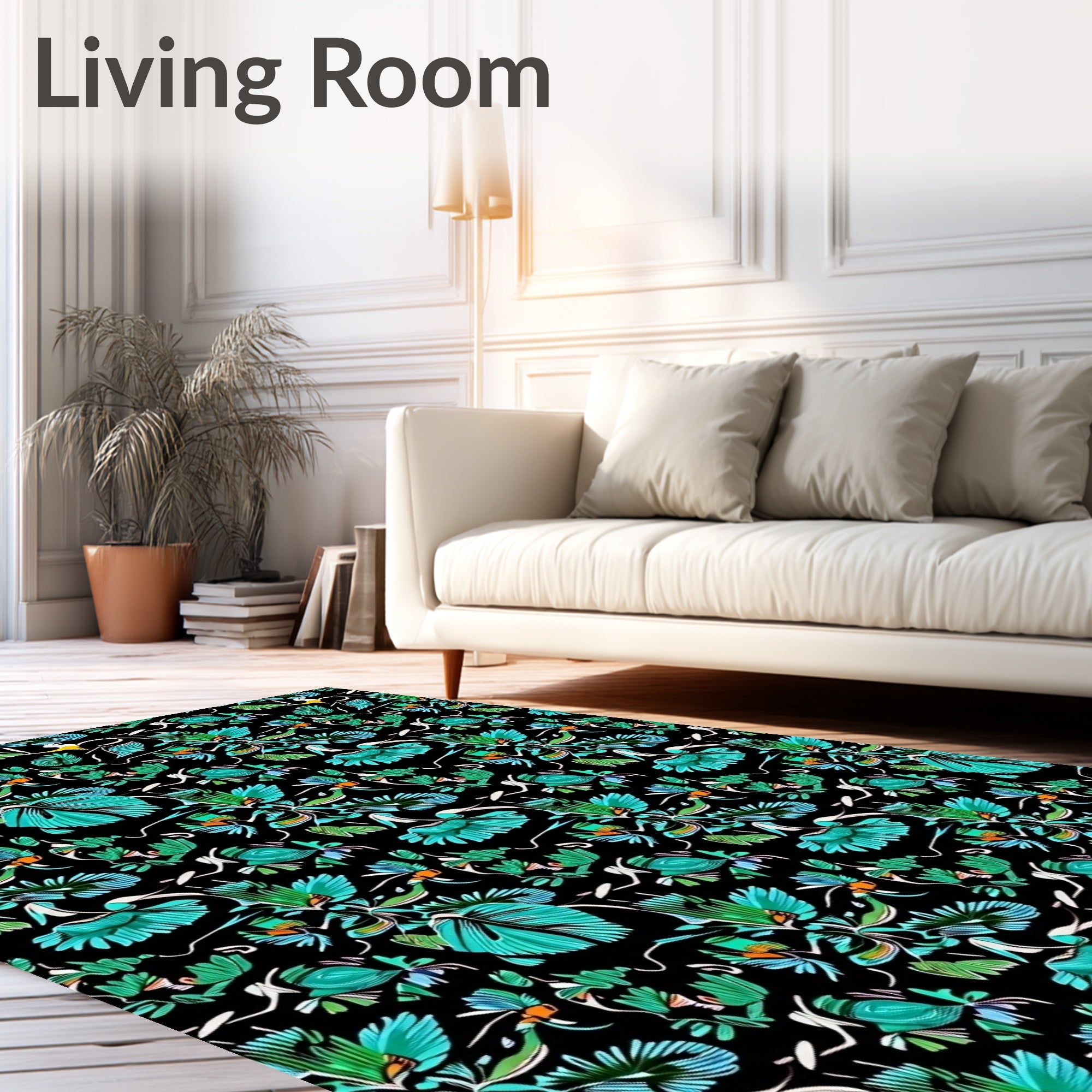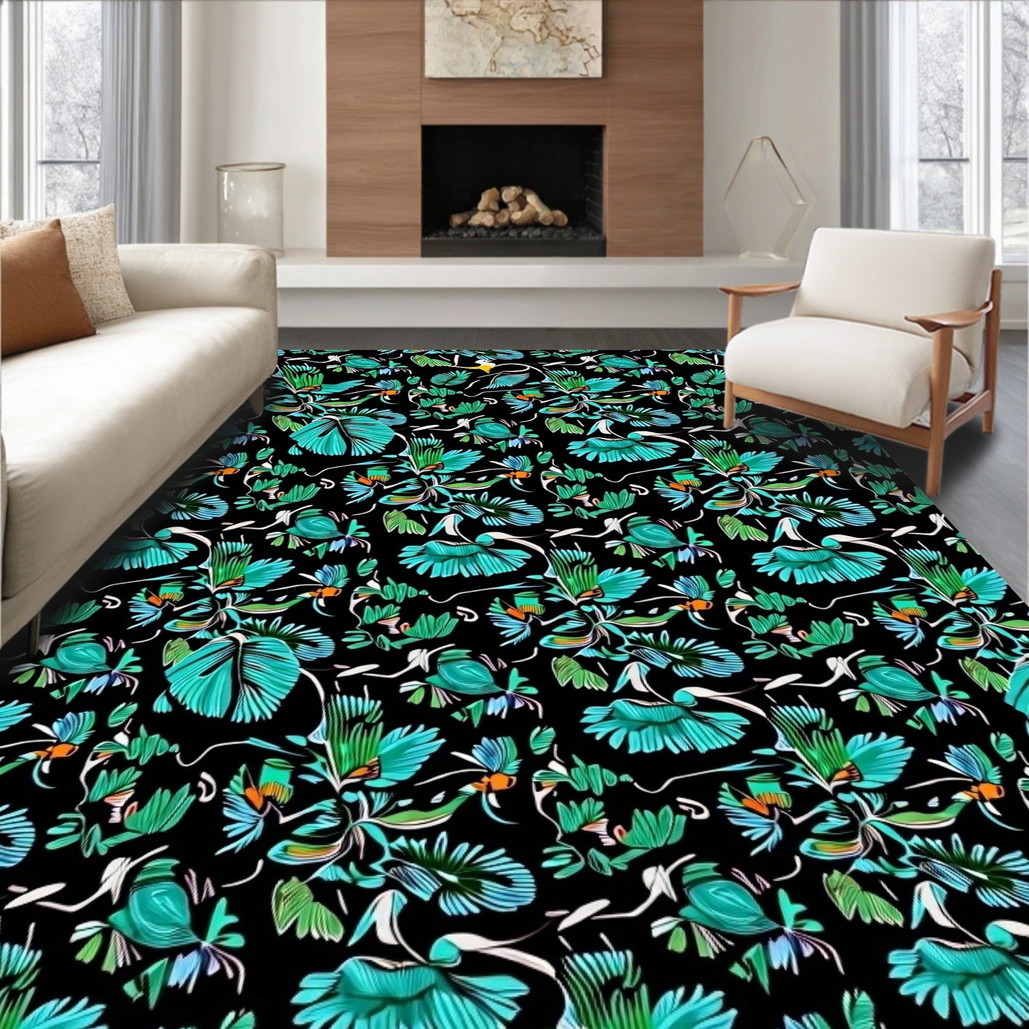 Ultra Soft Area Rug, Non Slip, Stain Resistant, Washable Area Rugs for Living Room, Bedroom, Tropical Rainforest Canopy Explorer Theme Indoor Collection(Black) Overview: