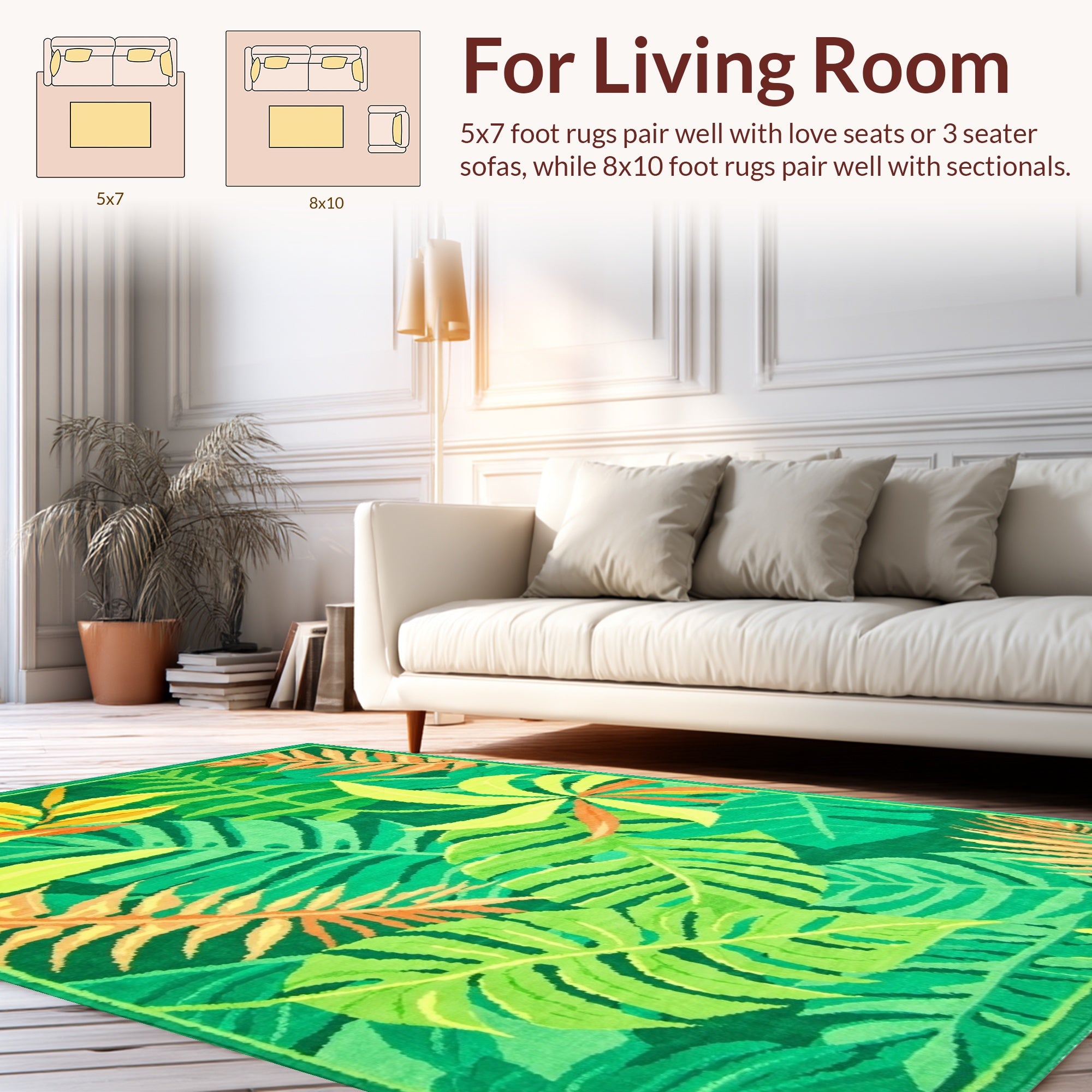 Ultra Soft Area Rug, Non Slip, Stain Resistant, Washable Area Rugs for Living Room, Bedroom, Tropical Turtle(Green) Overview: