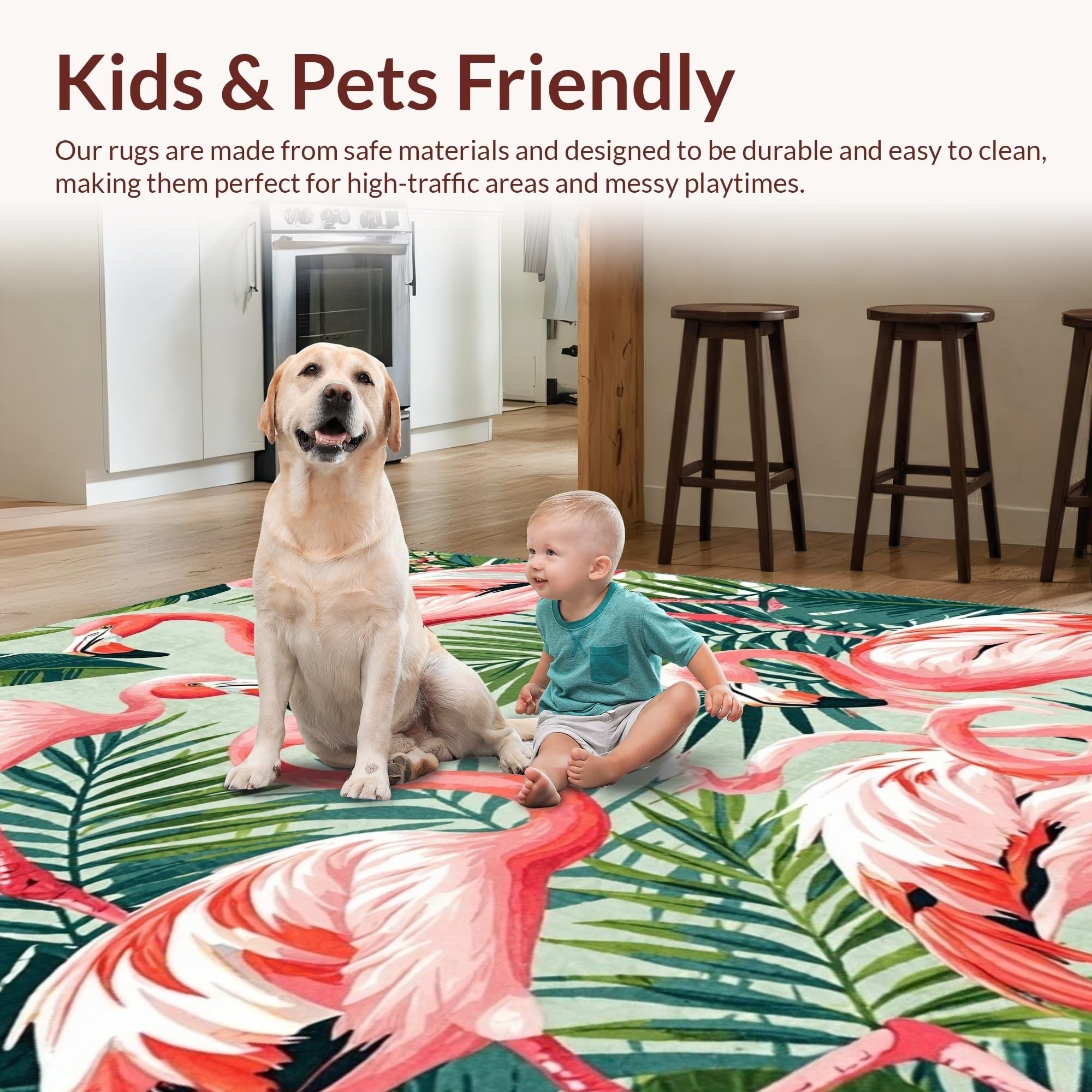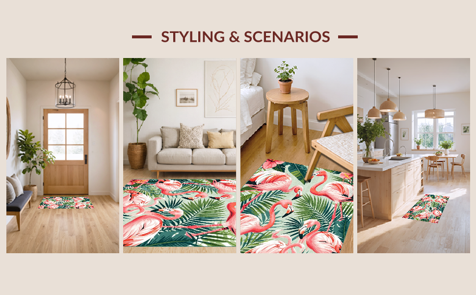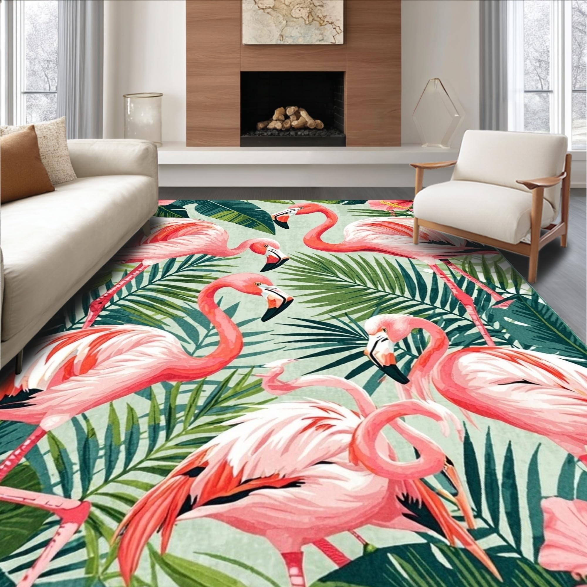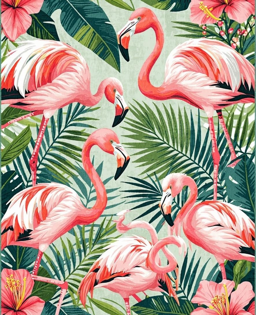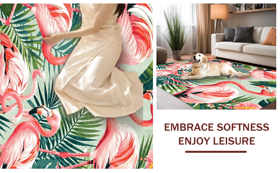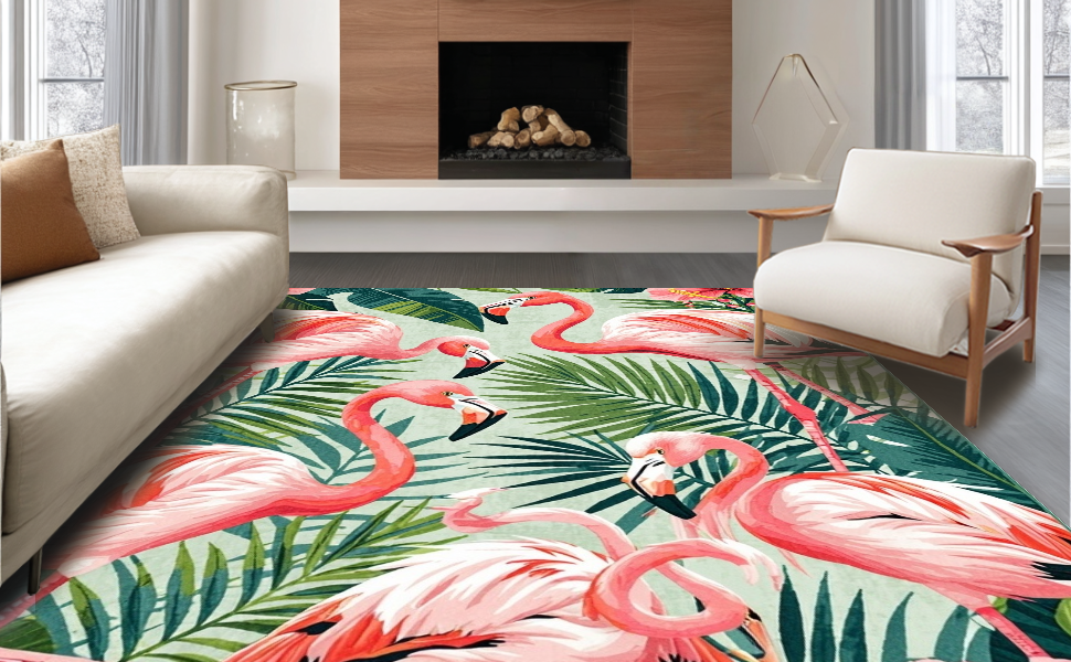 Ultra Soft Area Rug, Non Slip, Stain Resistant, Washable Area Rugs for Living Room, Bedroom, Tropical Vintage Flamingo Aesthetic(Pink) Overview: