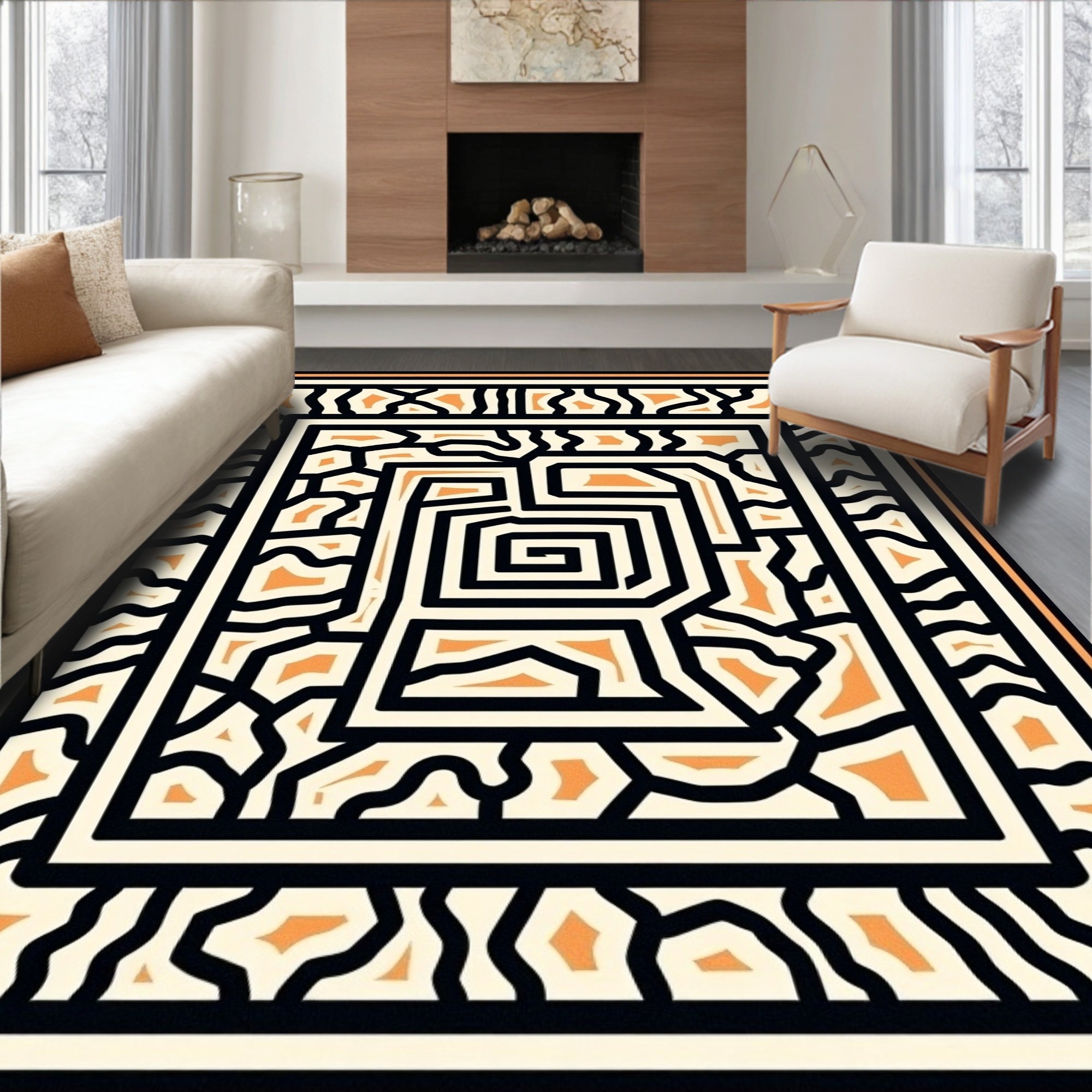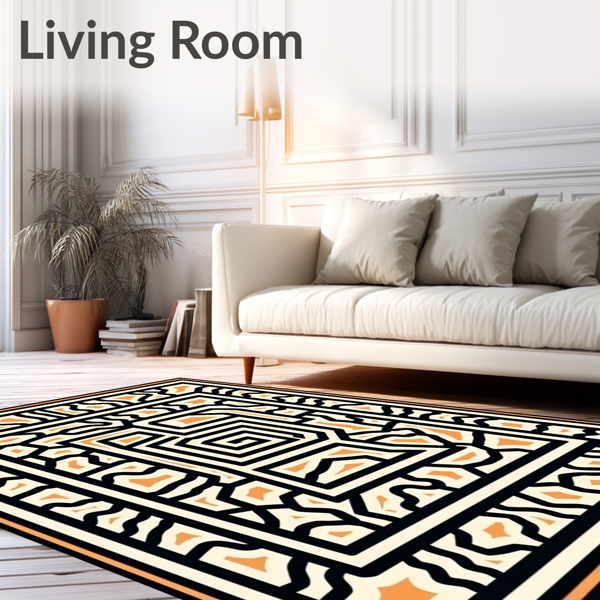 Ultra Soft Area Rug, Non Slip, Stain Resistant, Washable Area Rugs for Living Room, Bedroom, Tunnel Vision Optical Maze Mind Bending Depth Effect(Black) Overview: