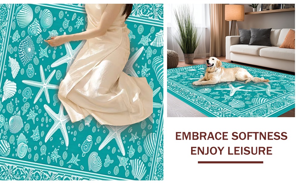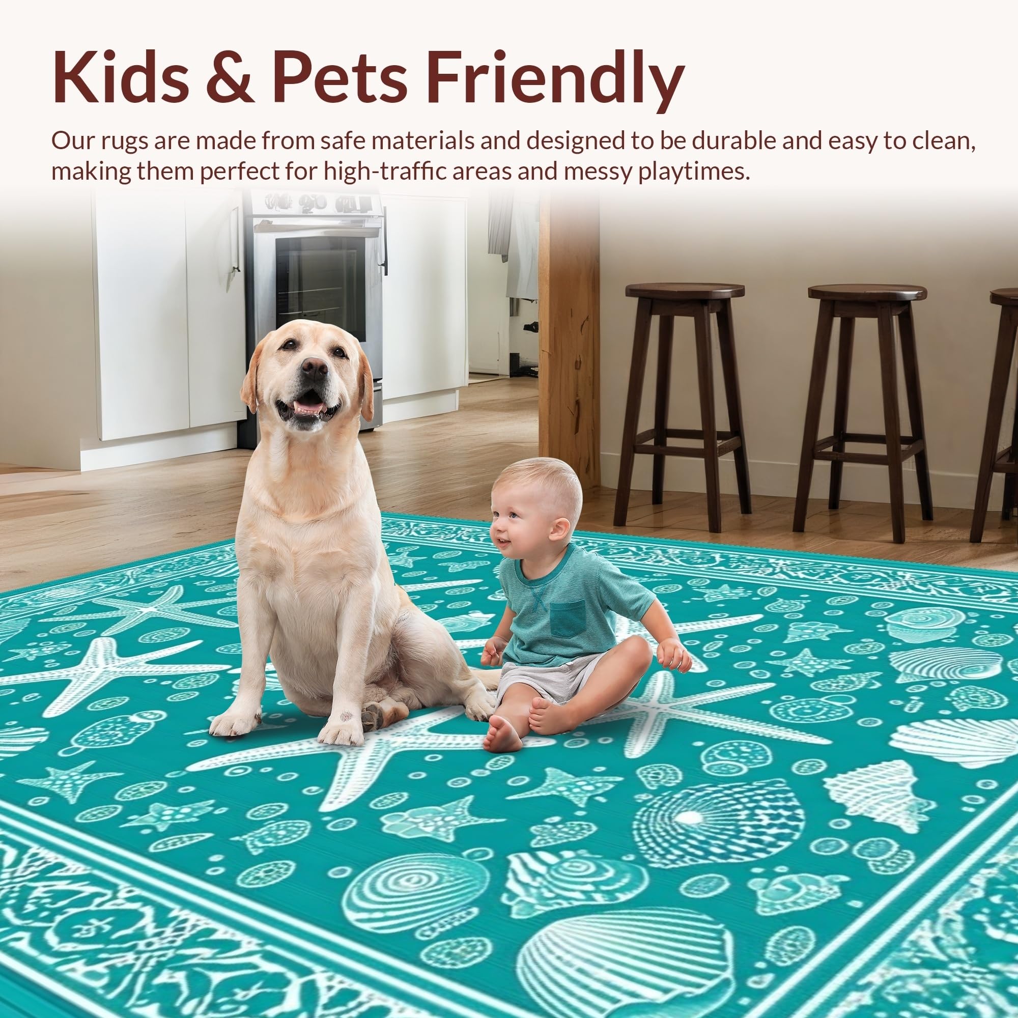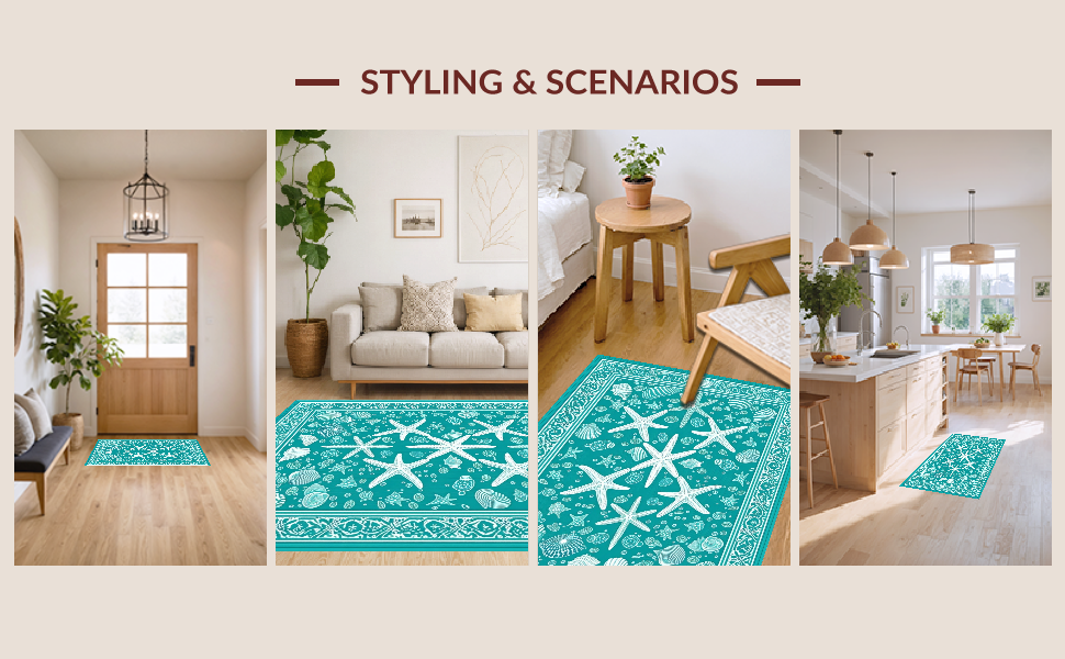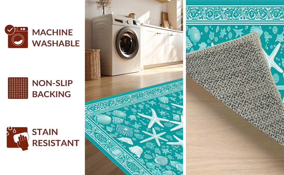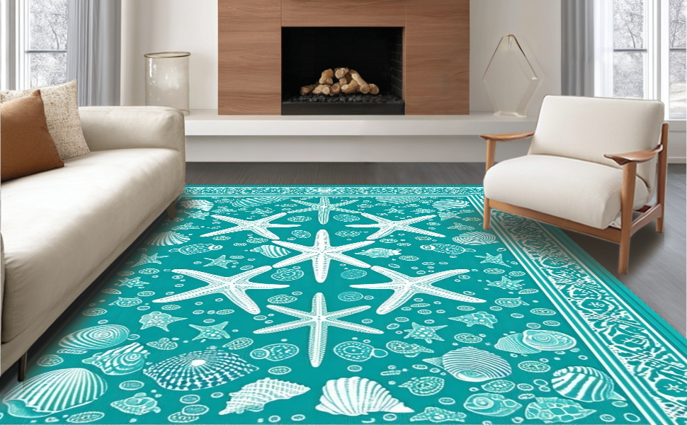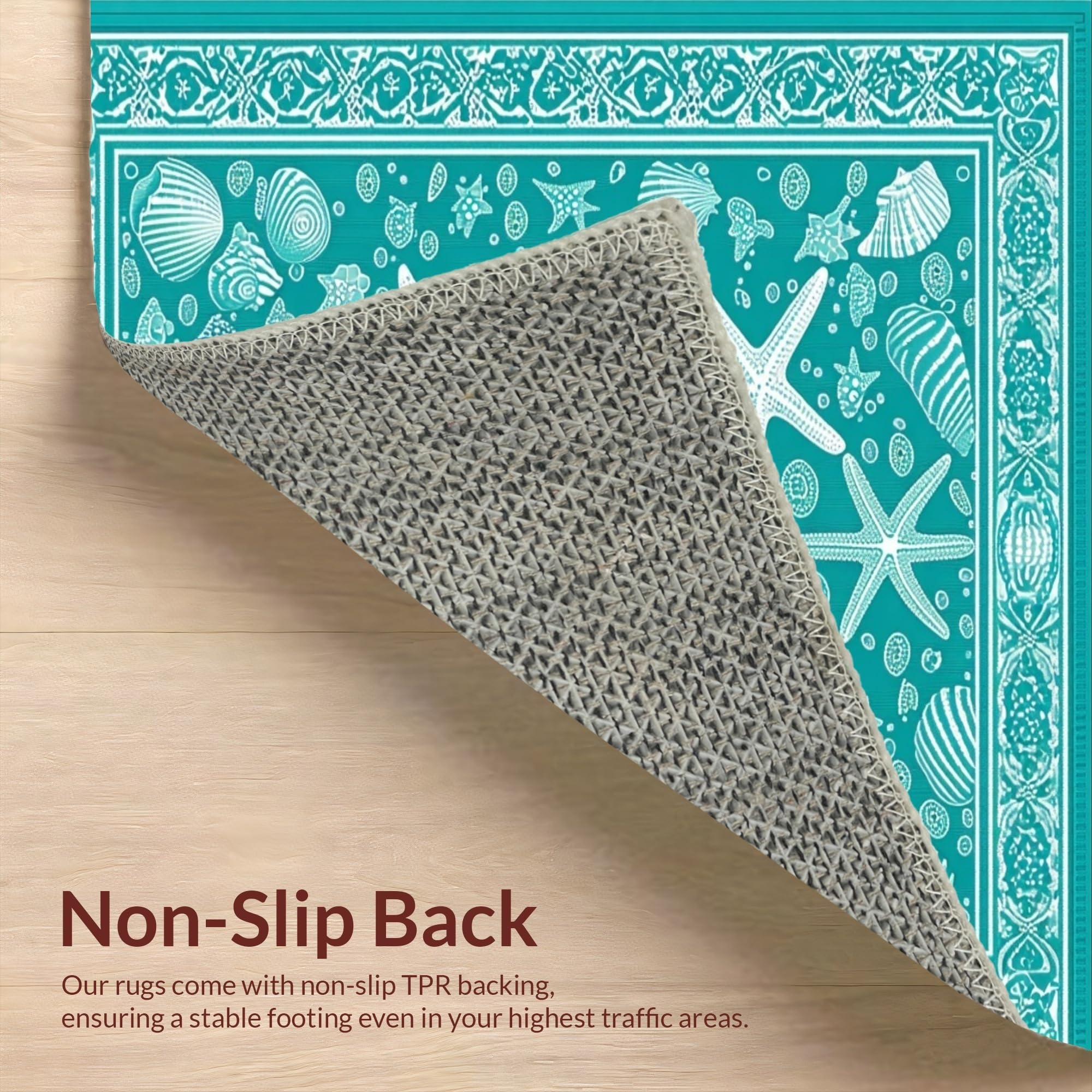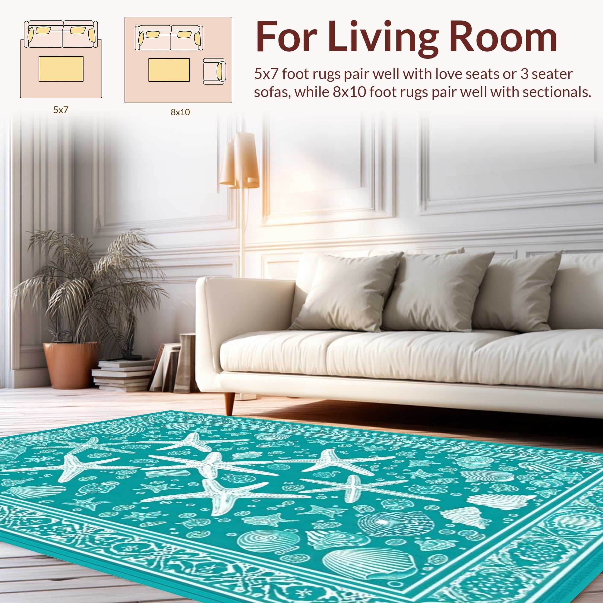 Ultra Soft Area Rug, Non Slip, Stain Resistant, Washable Area Rugs for Living Room, Bedroom, Turquoise Starfish Artistic Touch(Green) Overview: