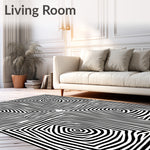 Ultra Soft Area Rug, Non Slip, Stain Resistant, Washable Area Rugs for Living Room, Bedroom, Twisted Labyrinth Paradox Perception Enigma Distortion Puzzle(Black) Overview: