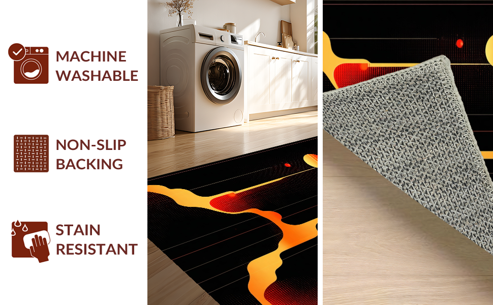 Ultra Soft Area Rug, Non Slip, Stain Resistant, Washable Area Rugs for Living Room, Bedroom, Unique Abstract Flame-Inspired Motif(Red) Overview: