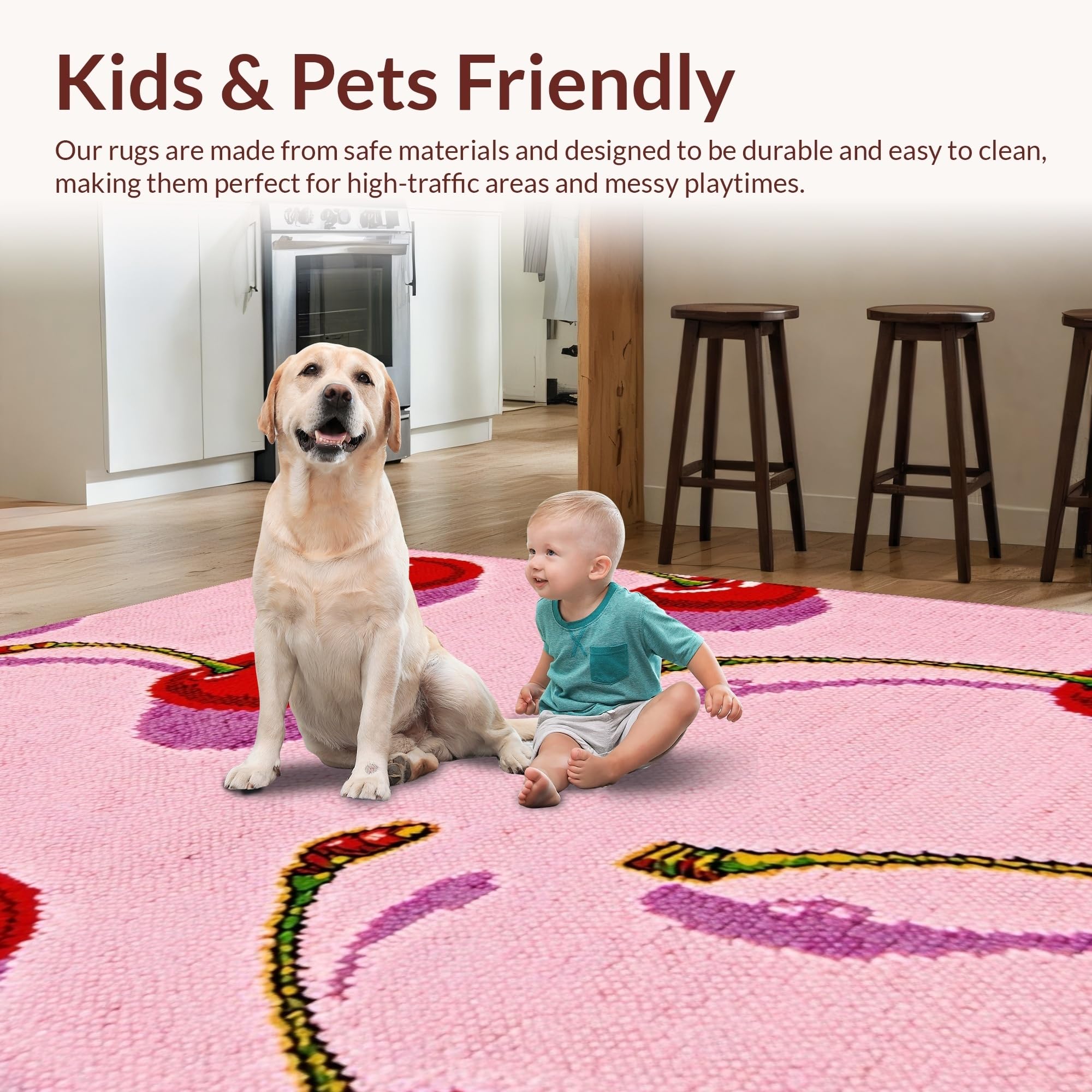 Ultra Soft Area Rug, Non Slip, Stain Resistant, Washable Area Rugs for Living Room, Bedroom, Unique Cheerful Abstract Arrangement(Pink) Overview: