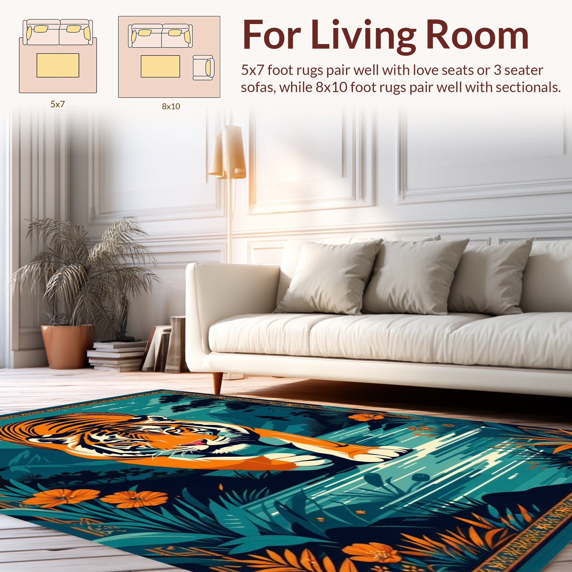 Flatwoven High Traffic Area Rug, Unique Colorful Jungle Inspired, Non Slip, Stain Resistant, Washable Area Rugs for Living Room, Bedroom (Orange) Overview: