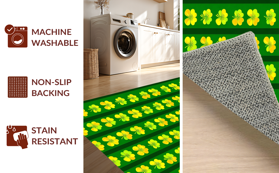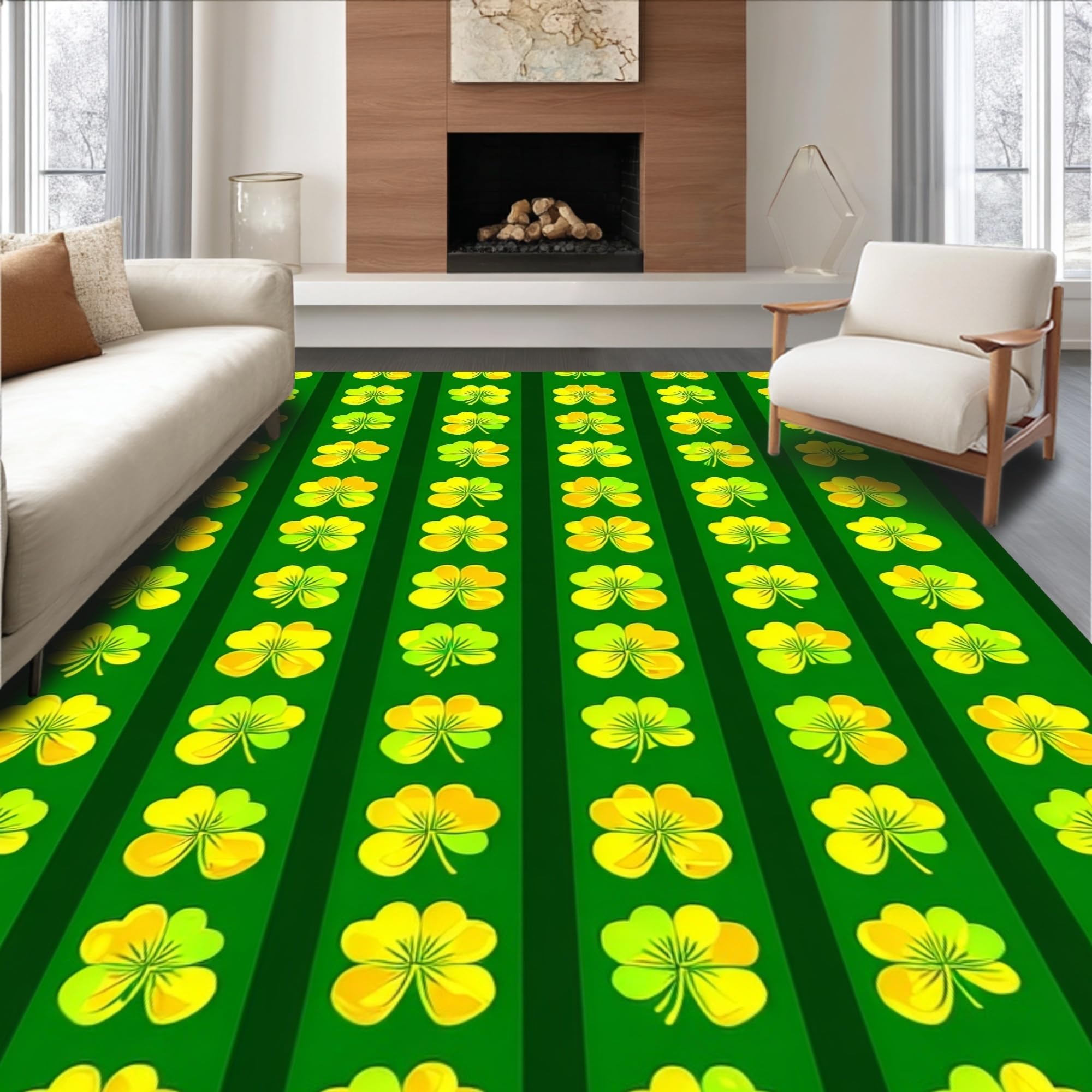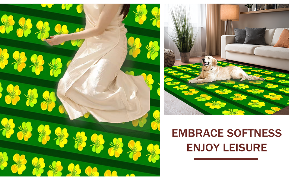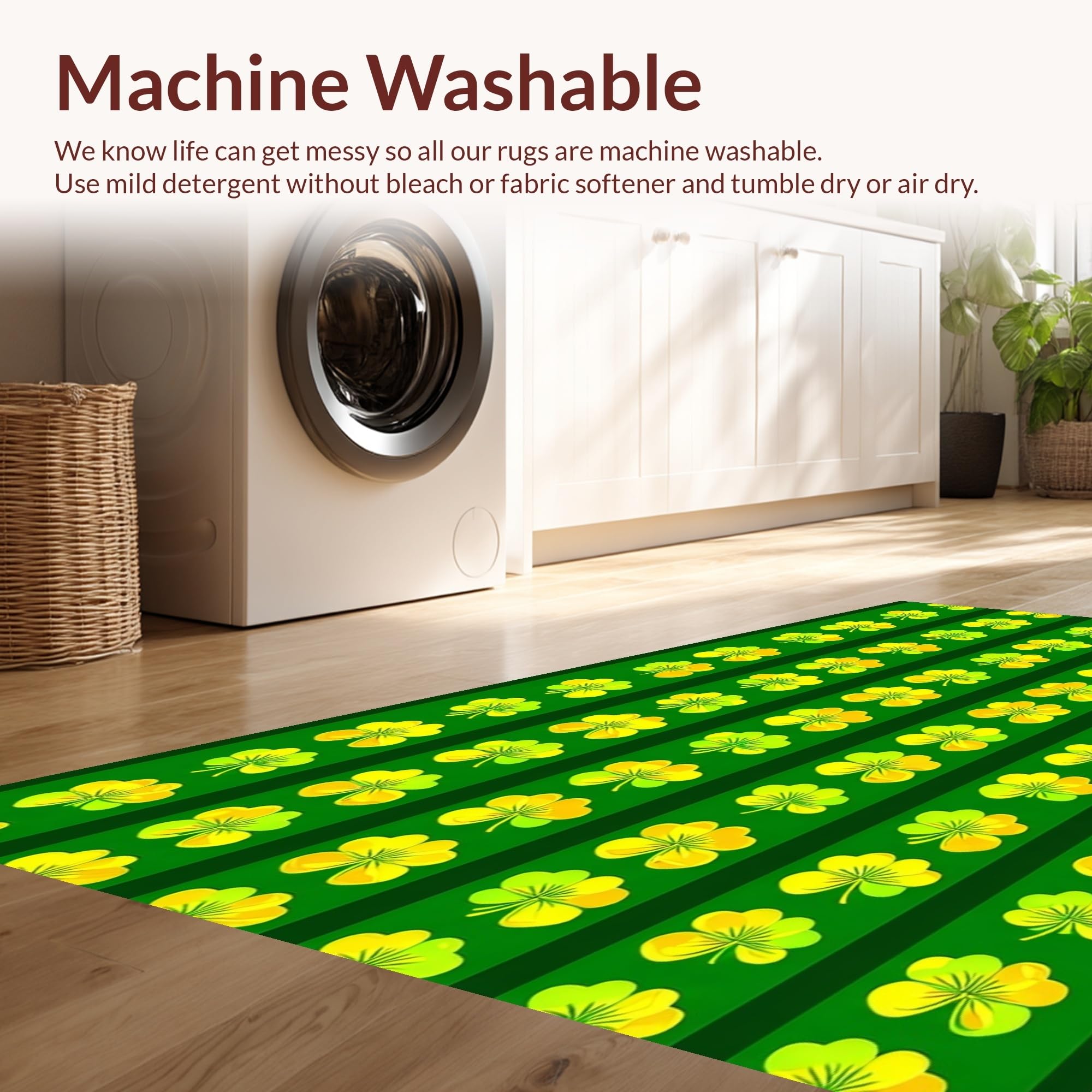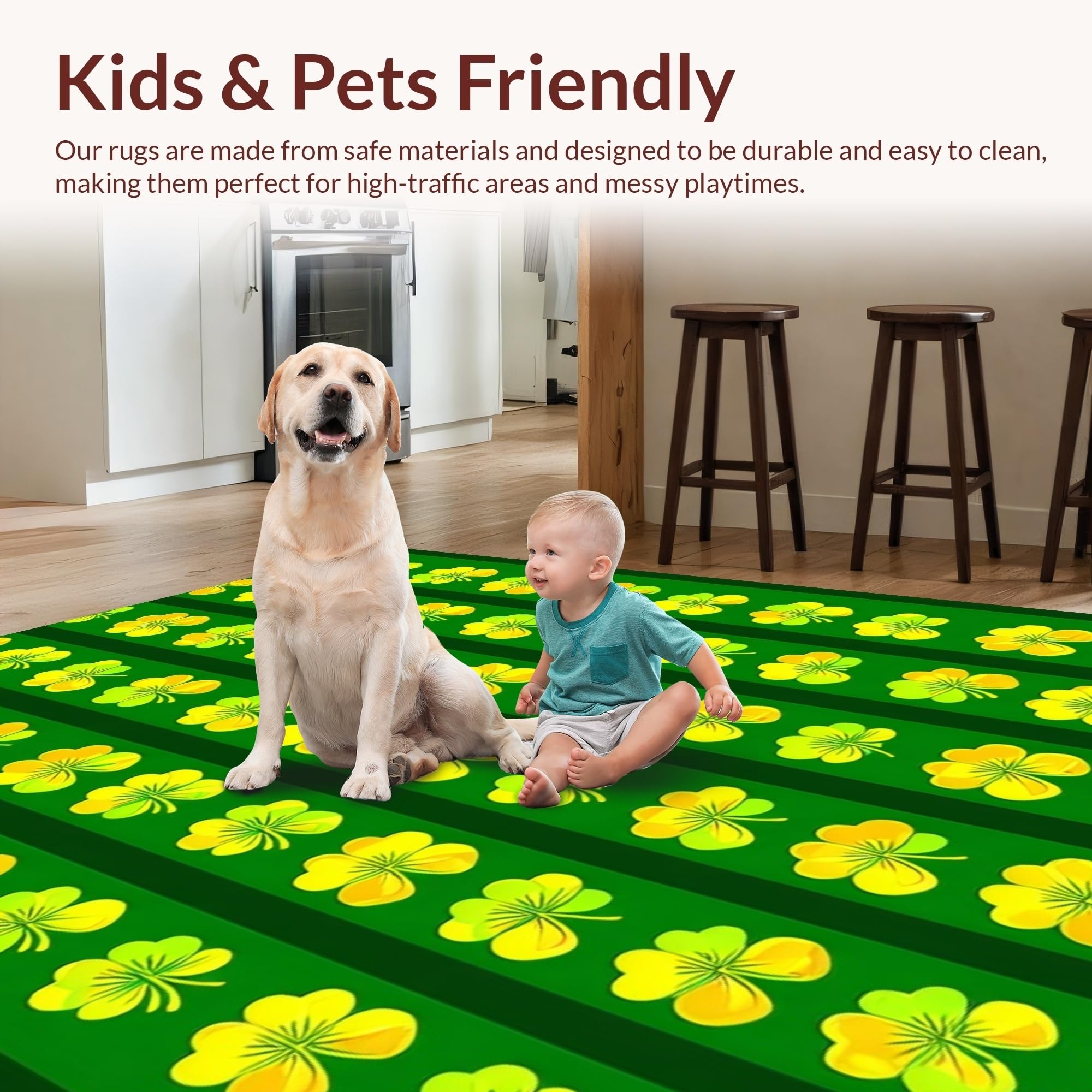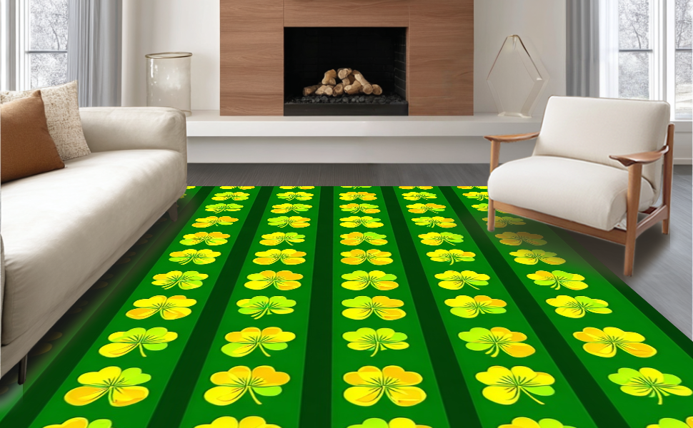 Ultra Soft Area Rug, Non Slip, Stain Resistant, Washable Area Rugs for Living Room, Bedroom, Unique Eclectic Clover Motif(Green) Overview: