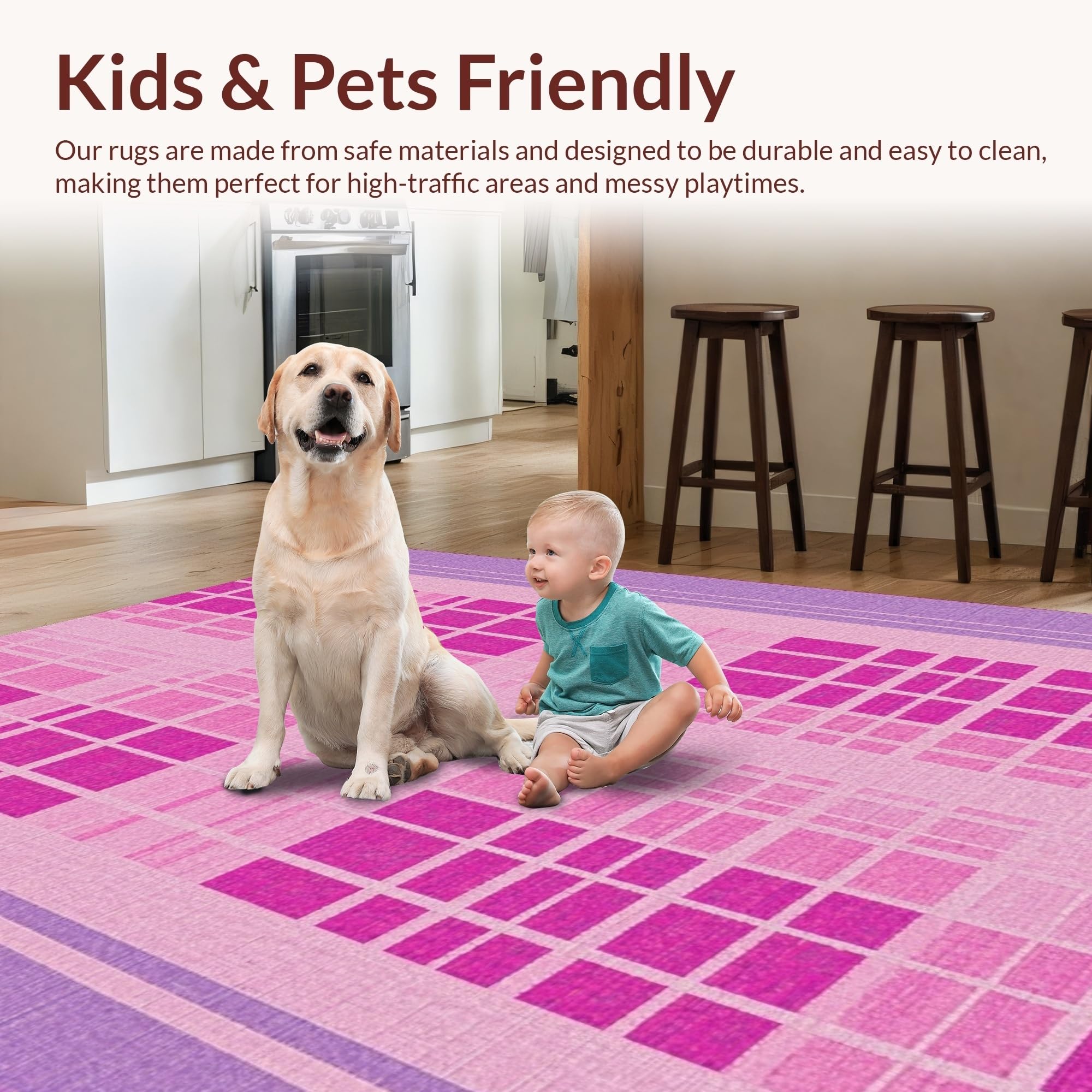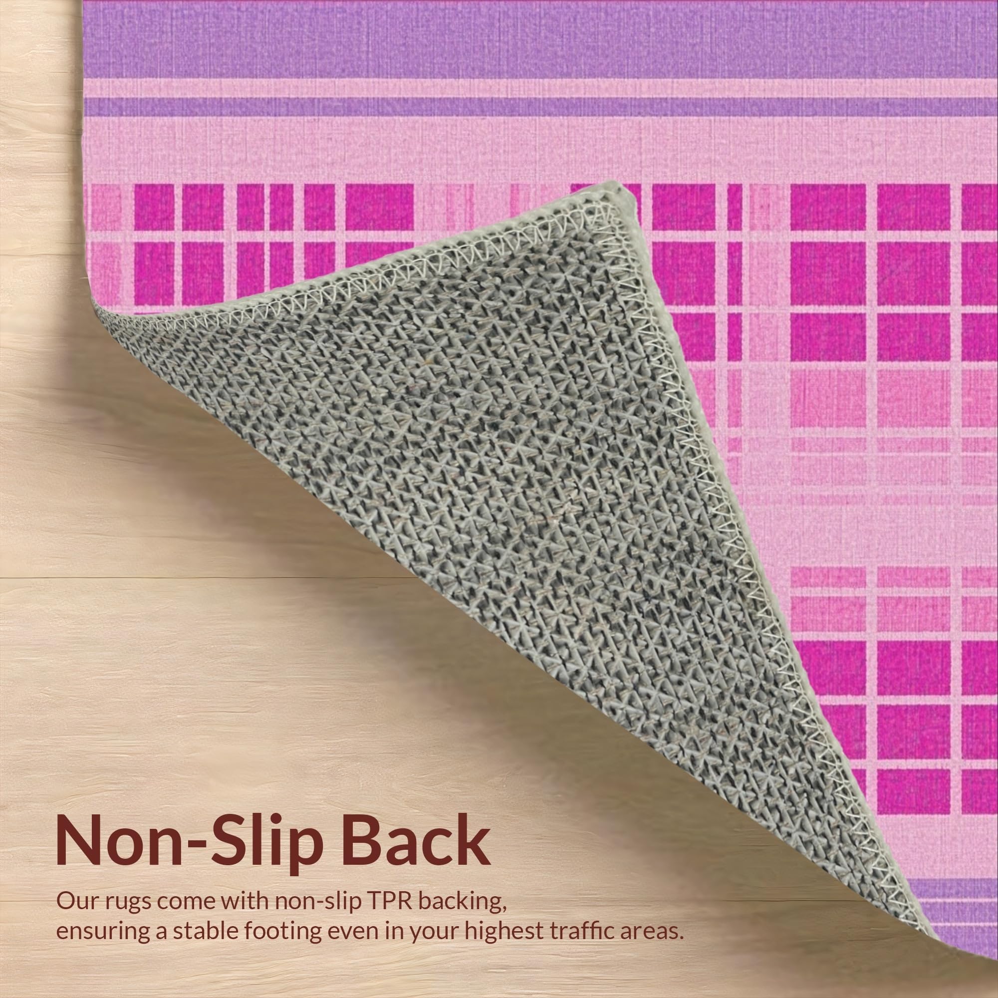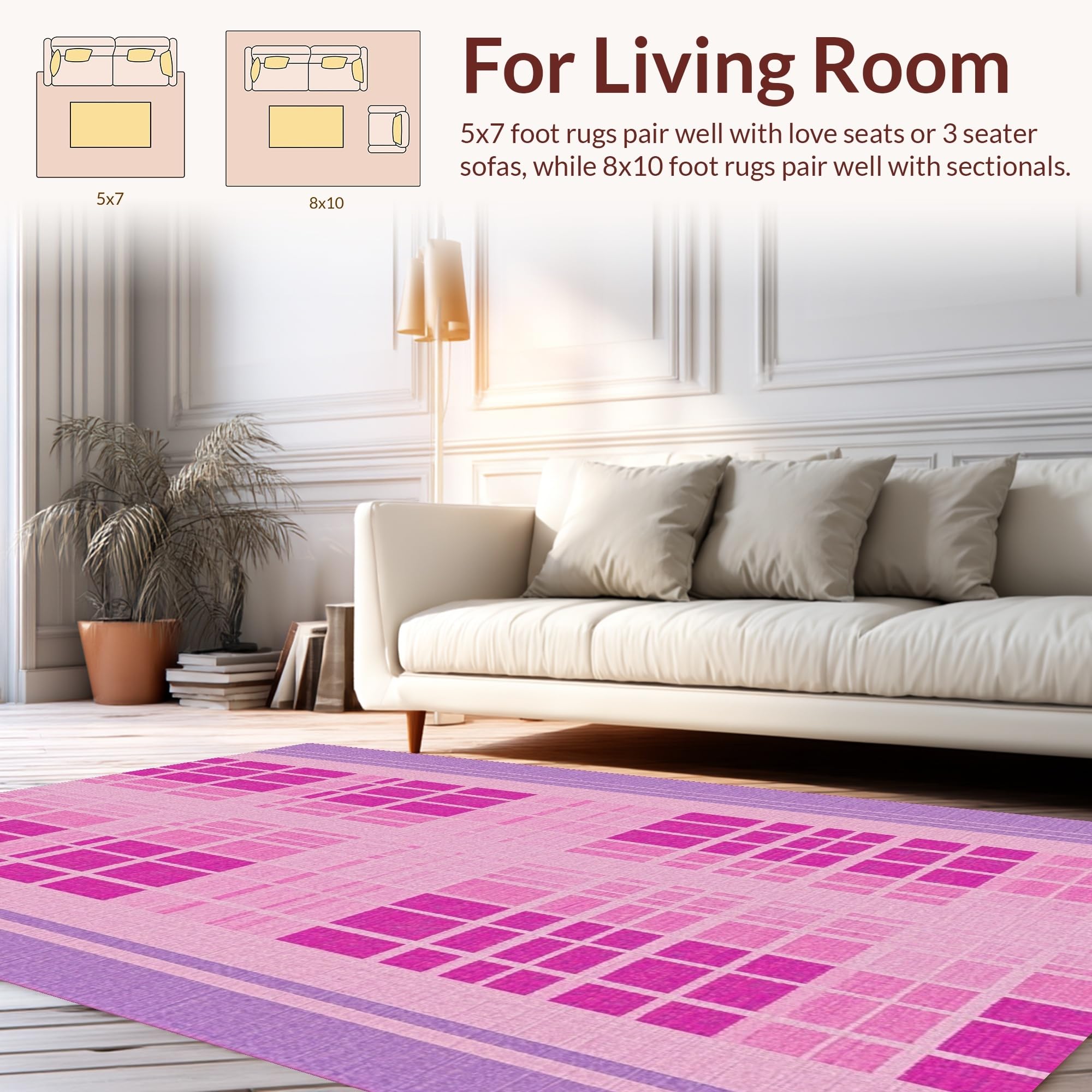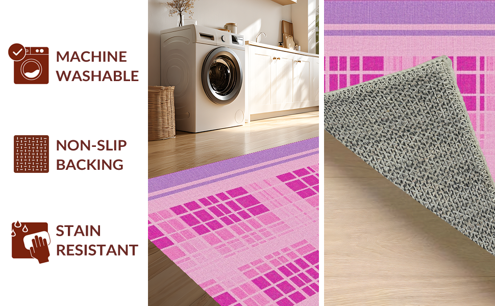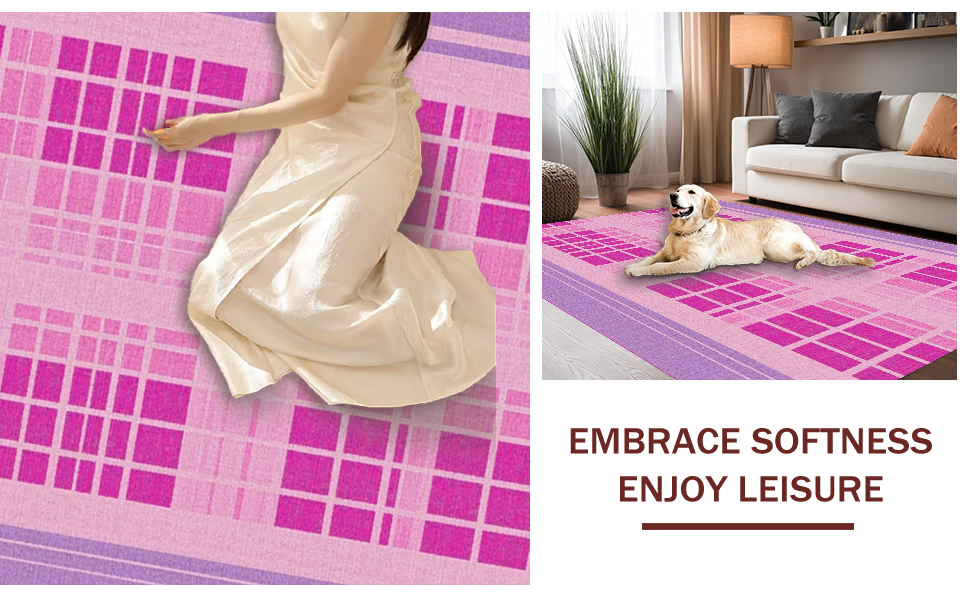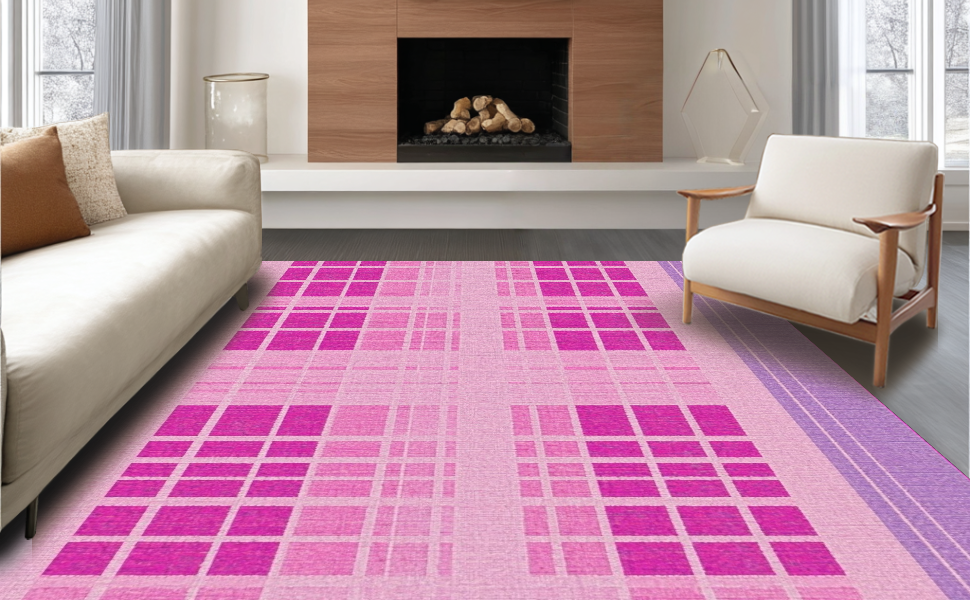 Ultra Soft Area Rug, Non Slip, Stain Resistant, Washable Area Rugs for Living Room, Bedroom, Unique Purple Check Appeal(Pink) Overview: