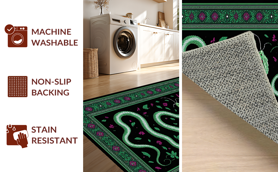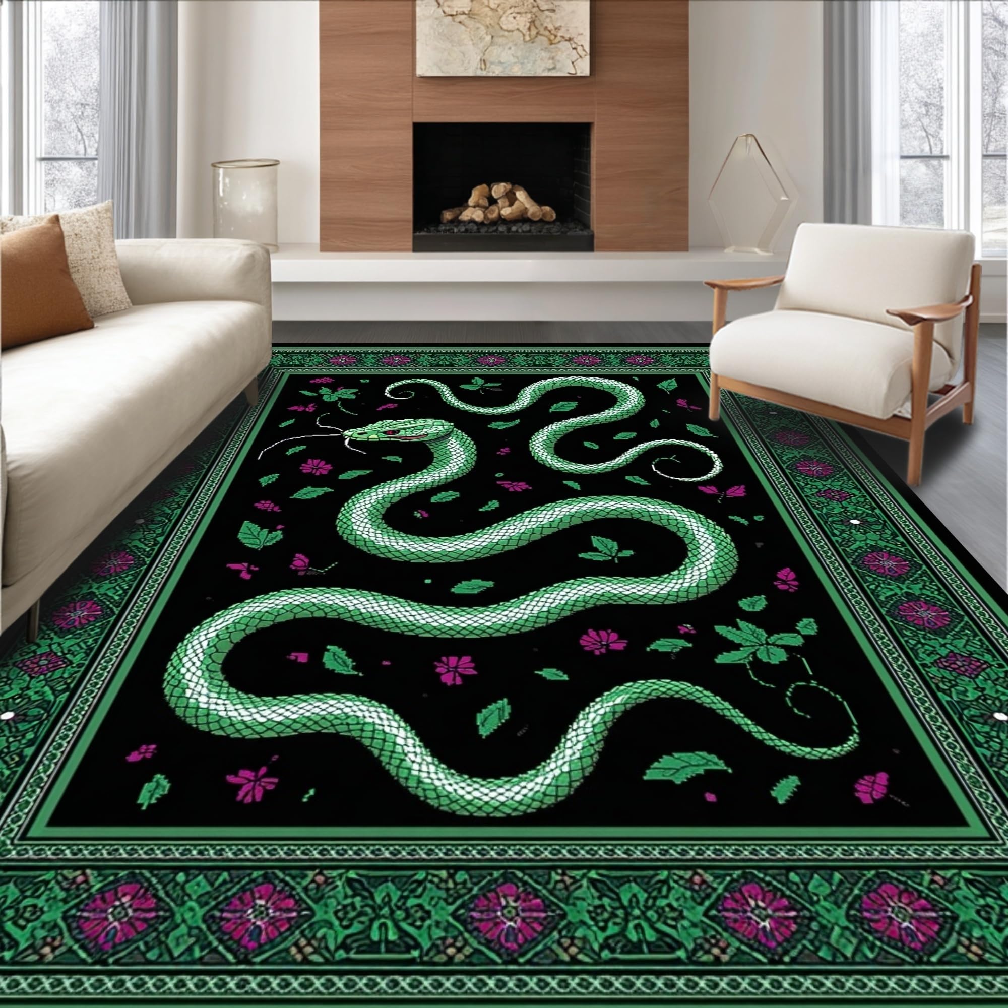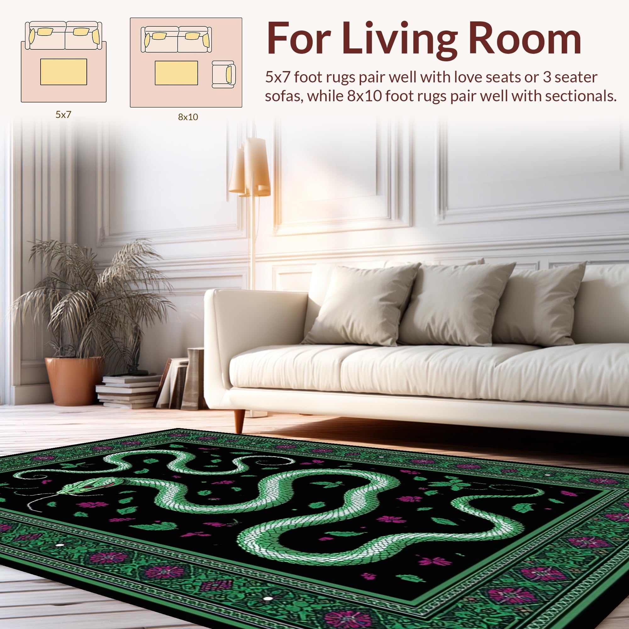 Ultra Soft Area Rug, Non Slip, Stain Resistant, Washable Area Rugs for Living Room, Bedroom, Unique Serpentine Visual Statement(Green) Overview: