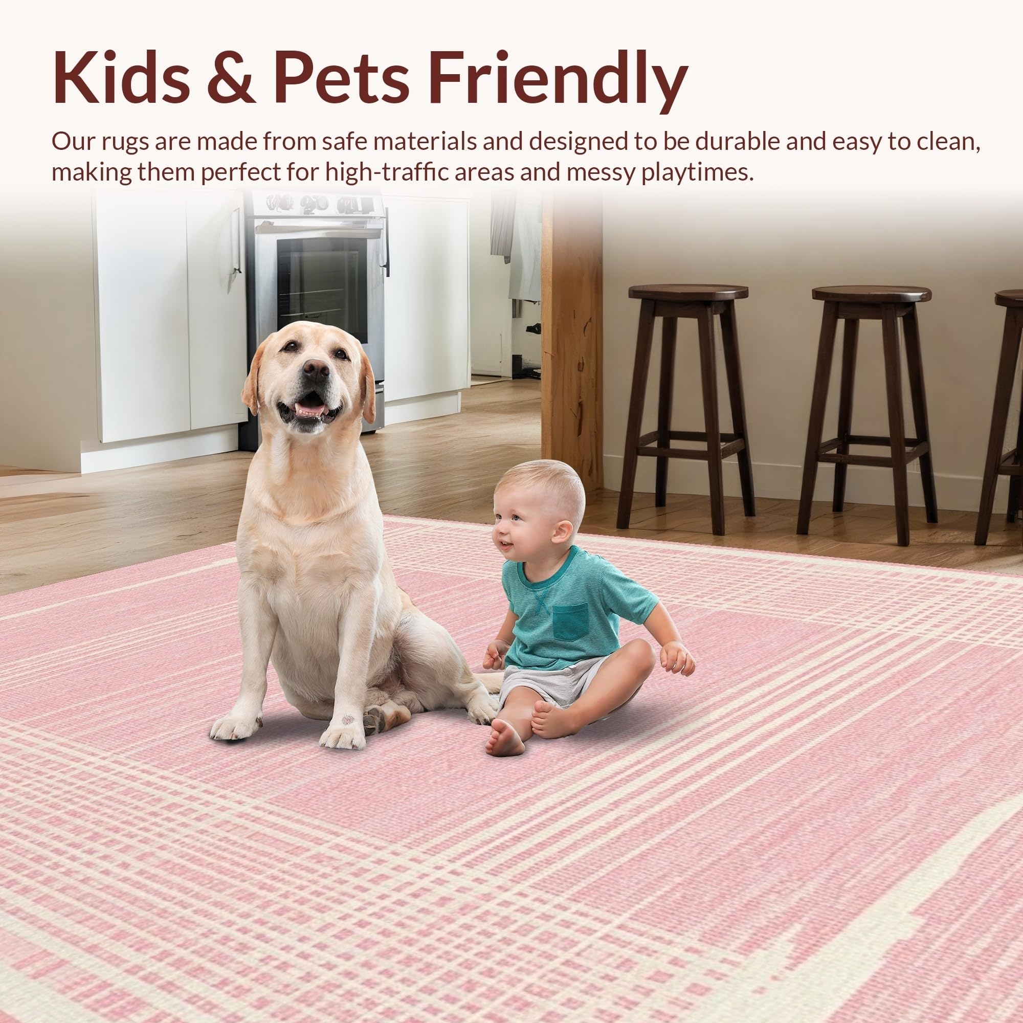 Ultra Soft Area Rug, Non Slip, Stain Resistant, Washable Area Rugs for Living Room, Bedroom, Unique Stylish Soft Pink Flourish(Pink) Overview: