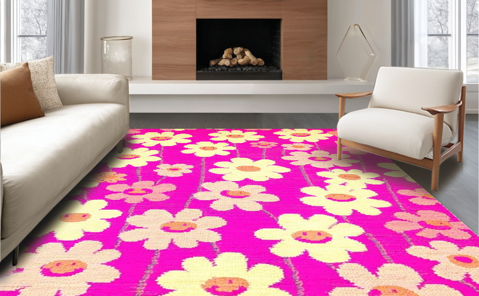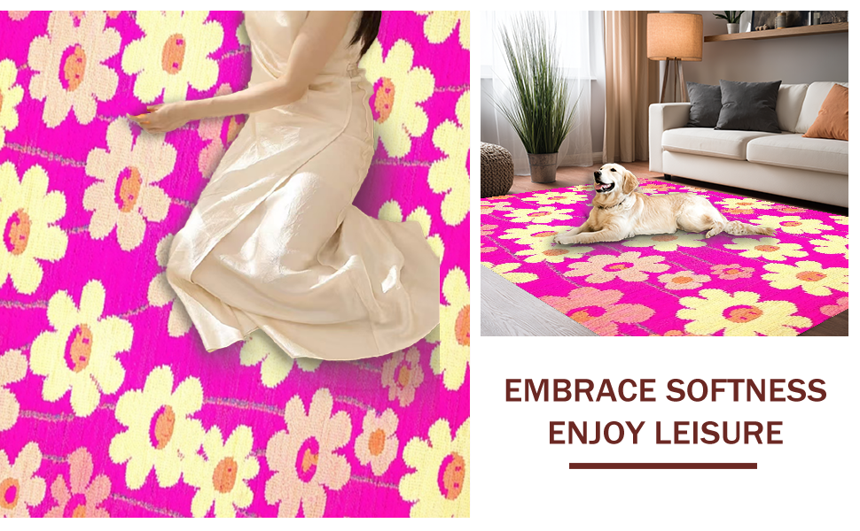 Ultra Soft Area Rug, Non Slip, Stain Resistant, Washable Area Rugs for Living Room, Bedroom, Unique Tufted Floral Expression(Pink) Overview: