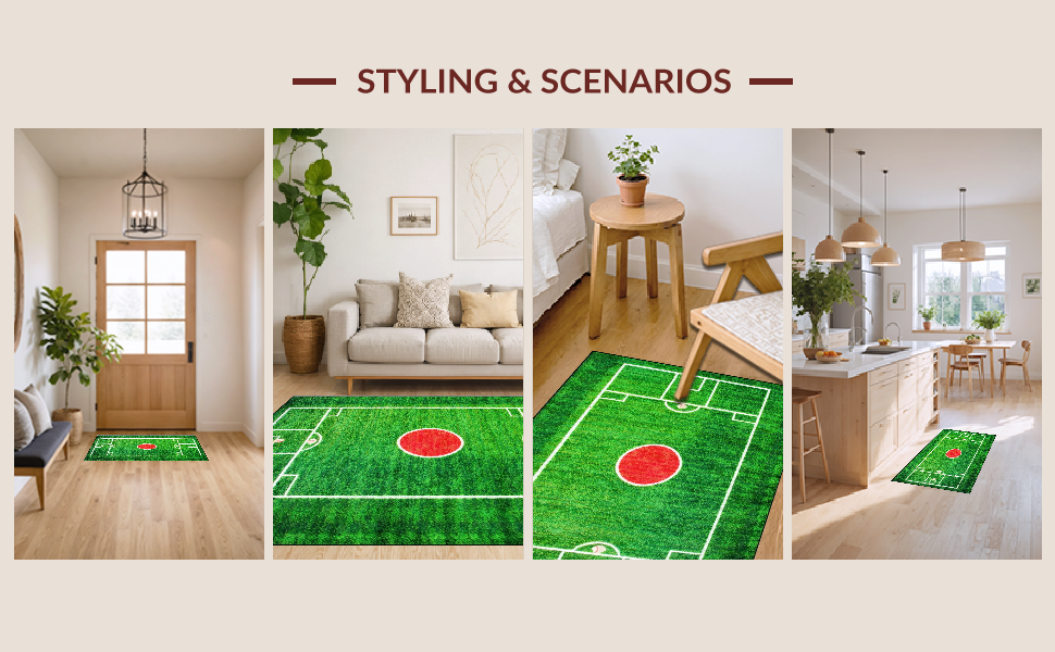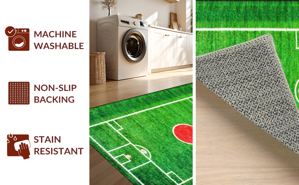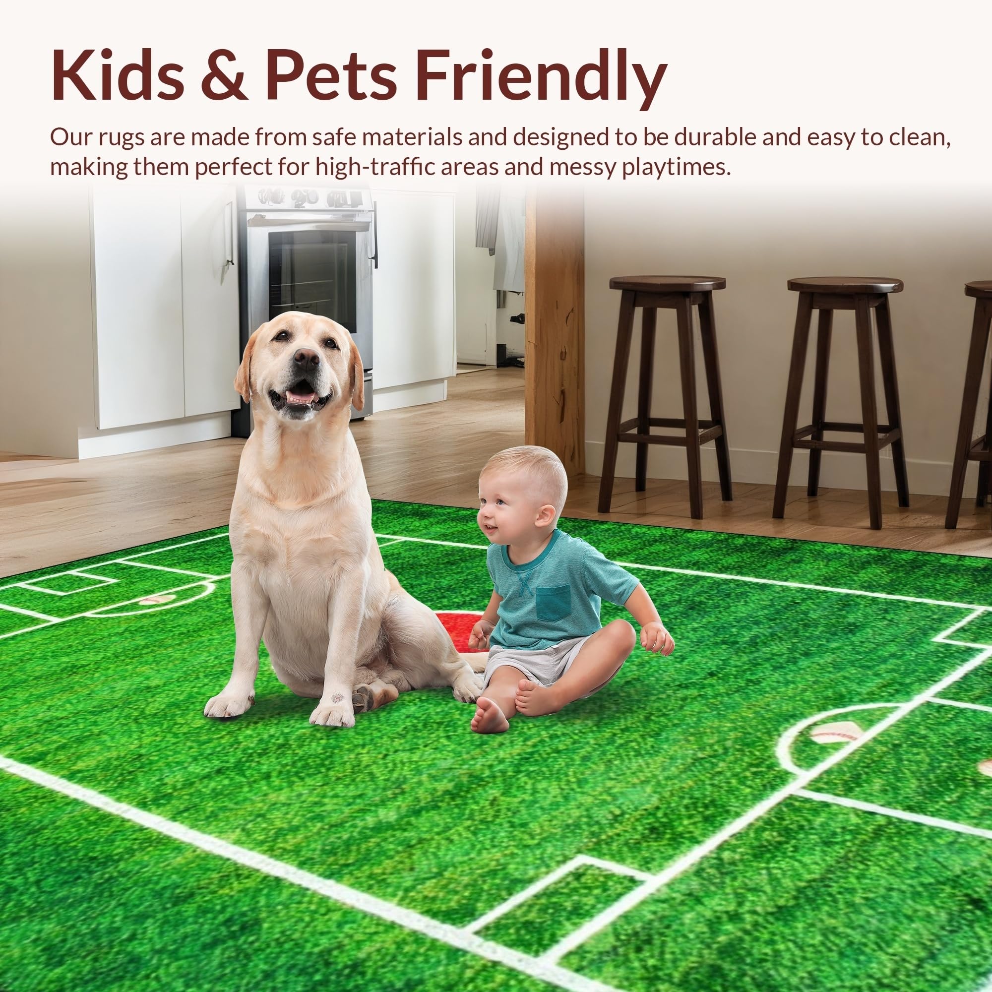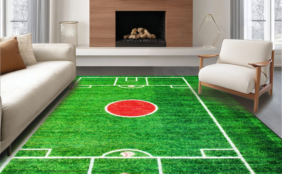 Ultra Soft Area Rug, Non Slip, Stain Resistant, Washable Area Rugs for Living Room, Bedroom, Unique Youthful Athletic Pattern(Green) Overview: