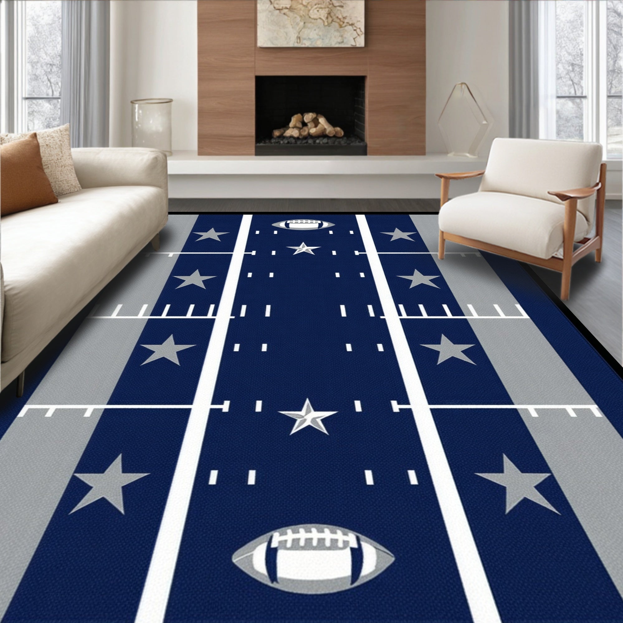 Flatwoven High Traffic Area Rug, Varsity Sports Themed with Machine Feature for Fans, Non Slip, Stain Resistant, Washable Area Rugs for Living Room, Bedroom (Blue) Overview:
