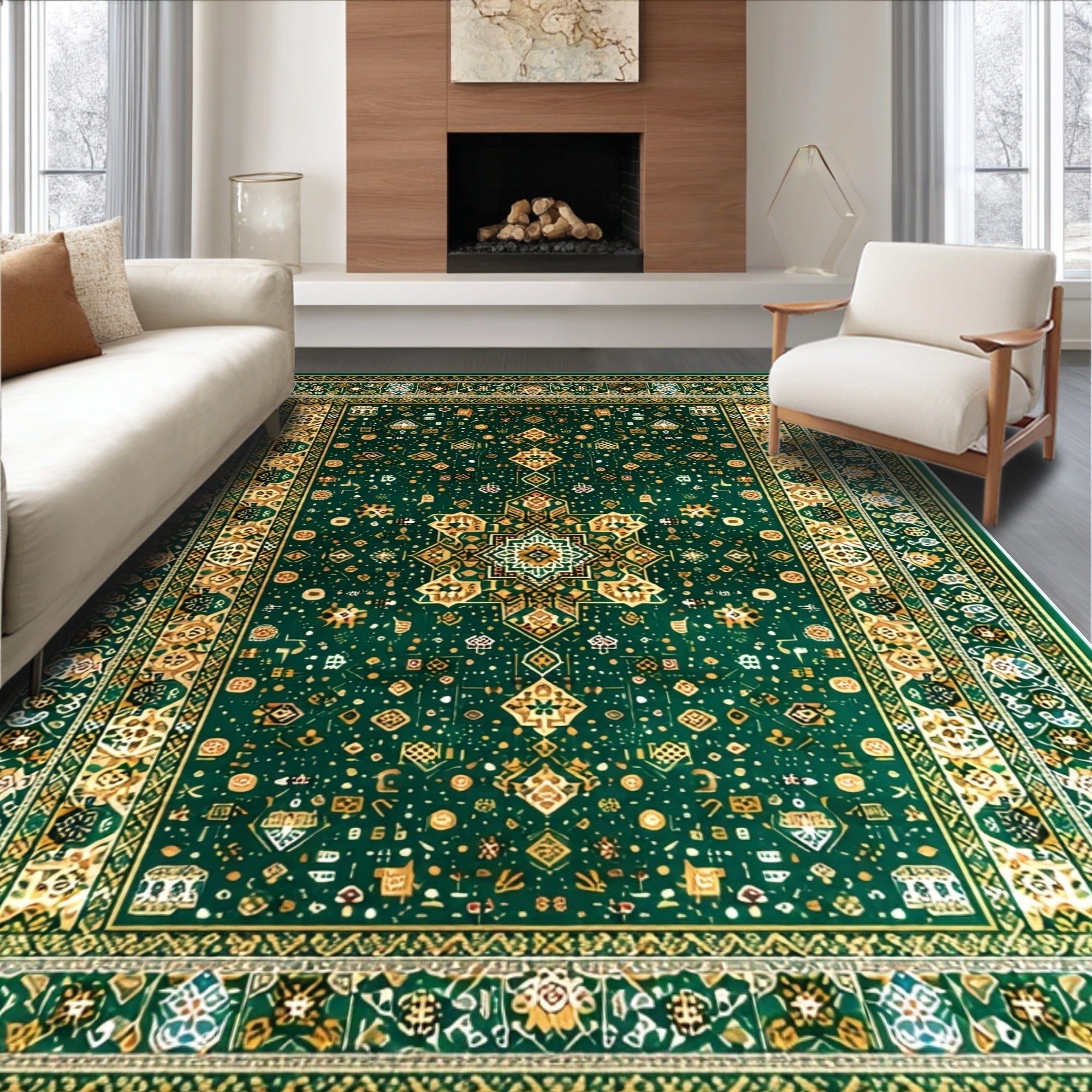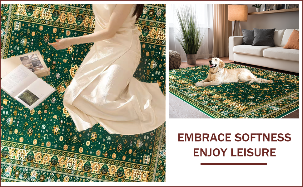 Ultra Soft Area Rug, Non Slip, Stain Resistant, Washable Area Rugs for Living Room, Bedroom, Velvet Embroidered Islamic Prayer(Green) Overview: