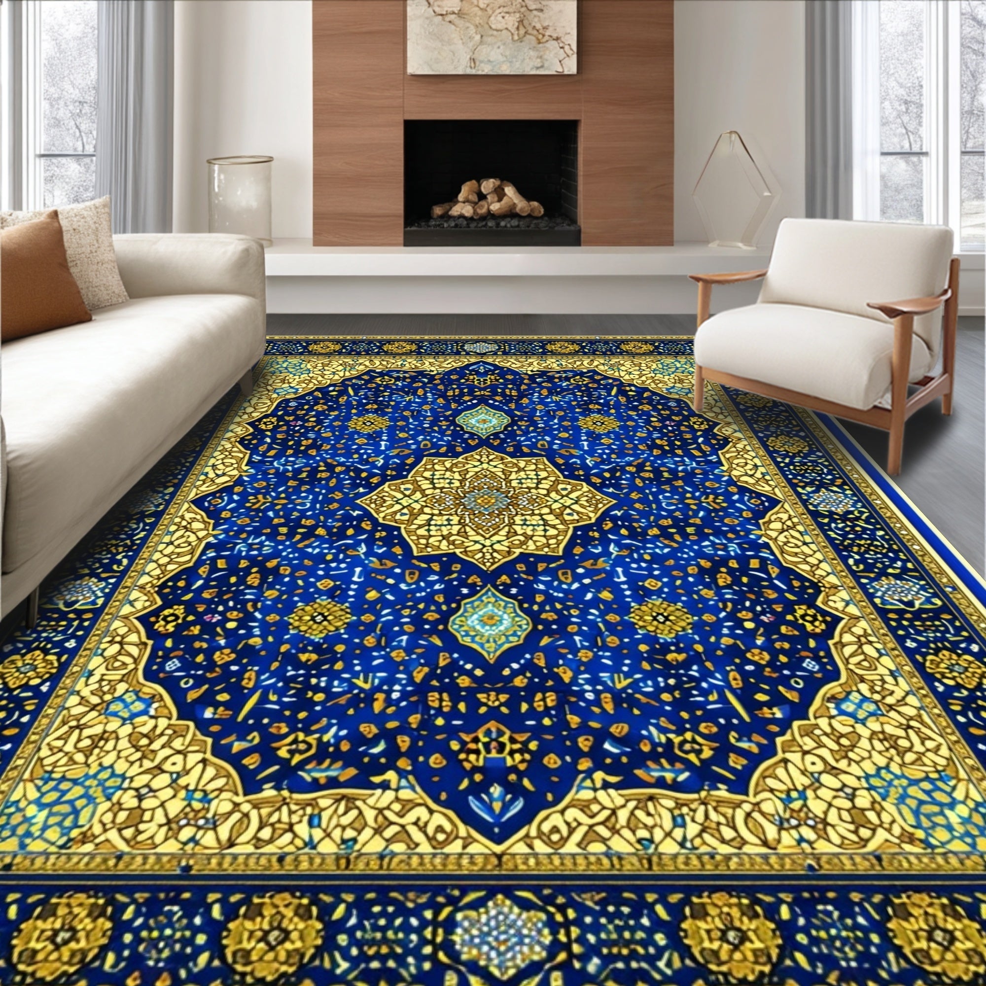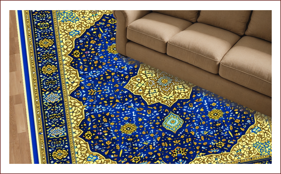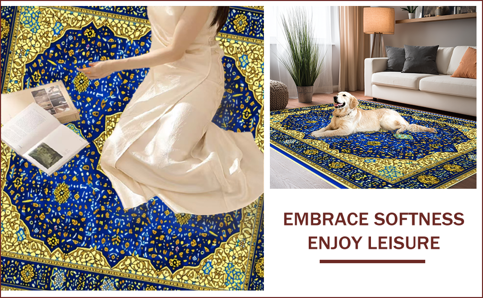 Ultra Soft Area Rug, Non Slip, Stain Resistant, Washable Area Rugs for Living Room, Bedroom, Velvet Islamic Prayer Mat(Blue) Overview: