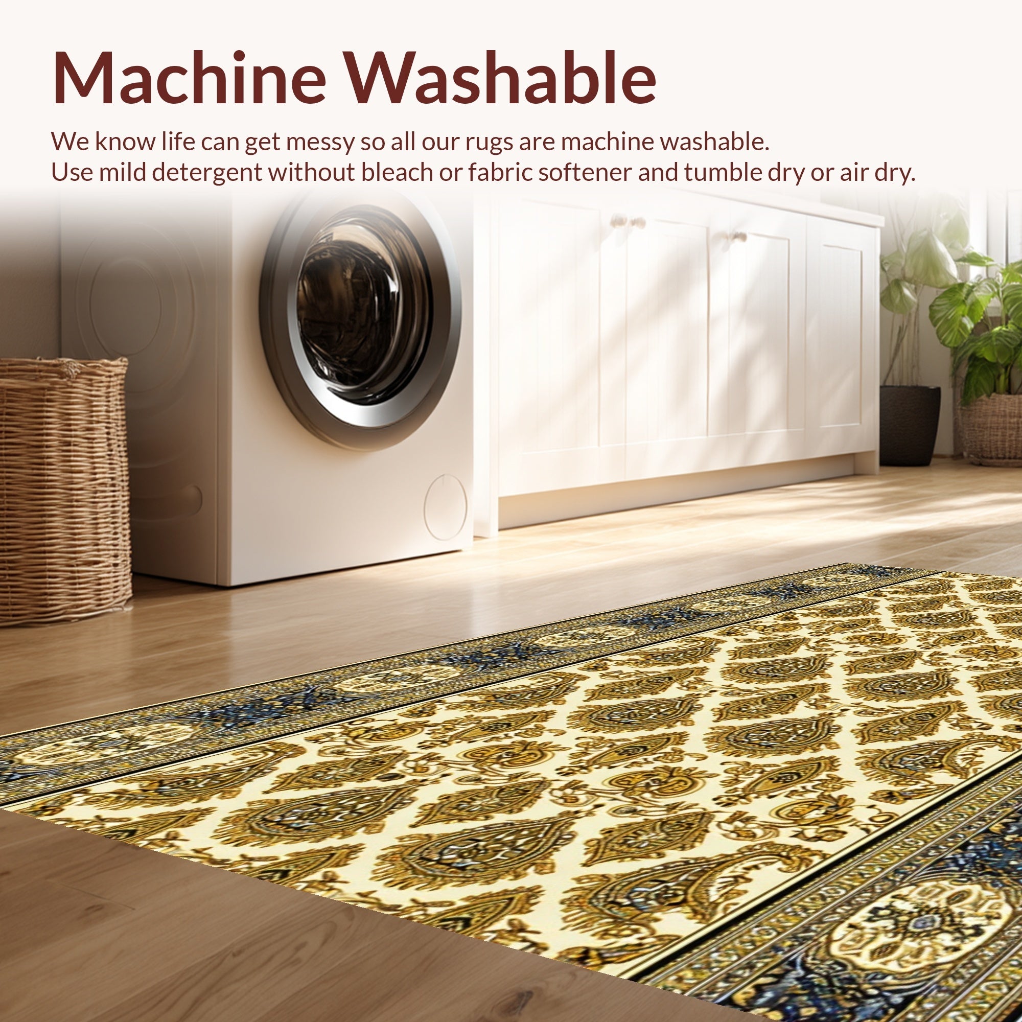 - Machine Washable: Our rugs can be easily thrown in the wash machine.