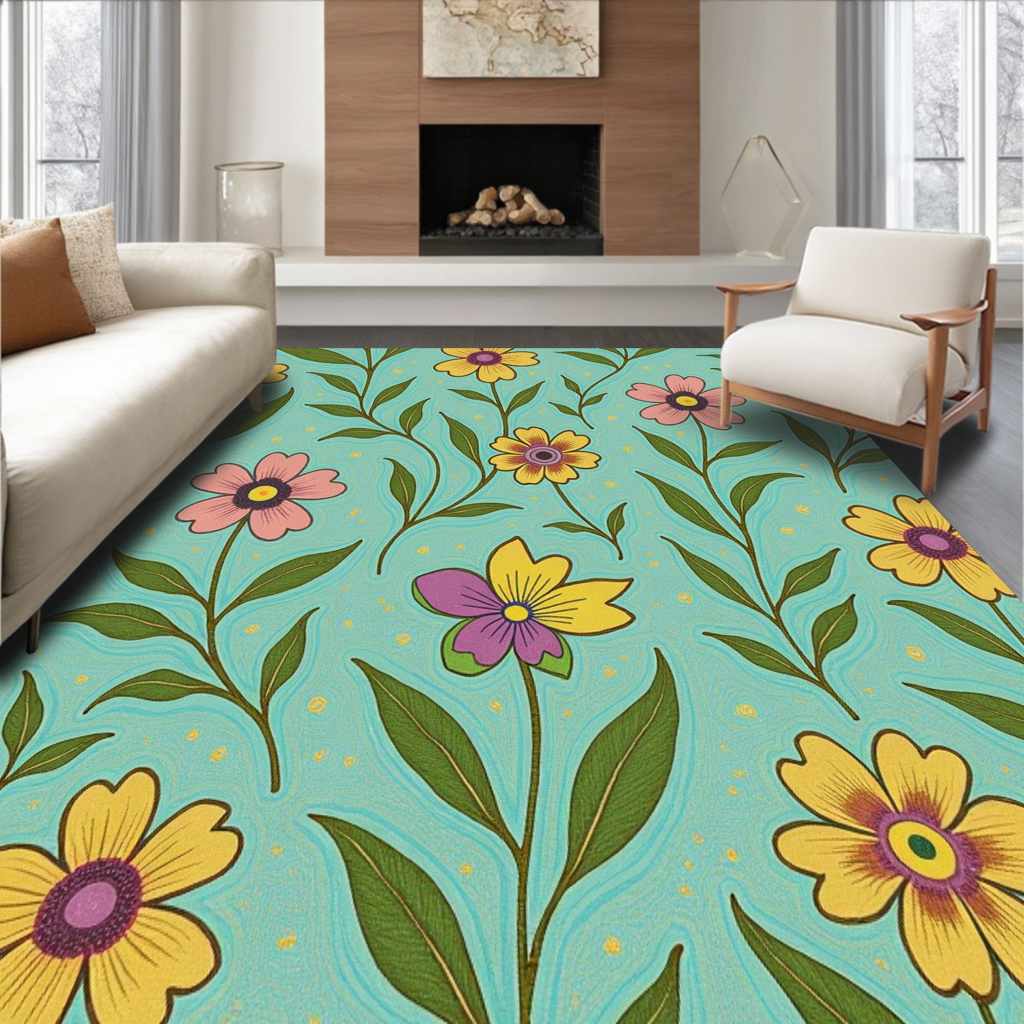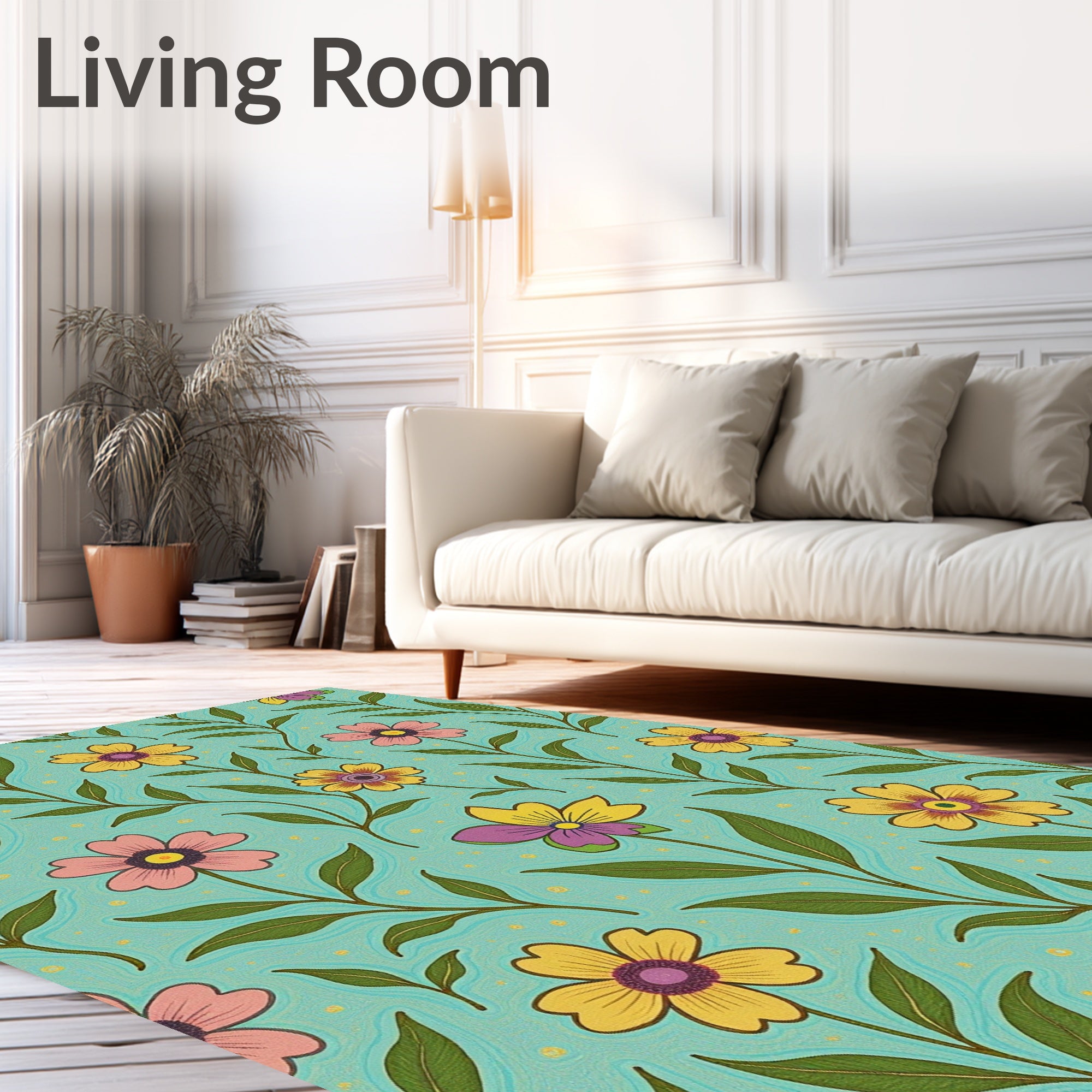 Ultra Soft Area Rug, Non Slip, Stain Resistant, Washable Area Rugs for Living Room, Bedroom, Verdant Blossom Interlaced Luxury Pathway(Blue) Overview:
