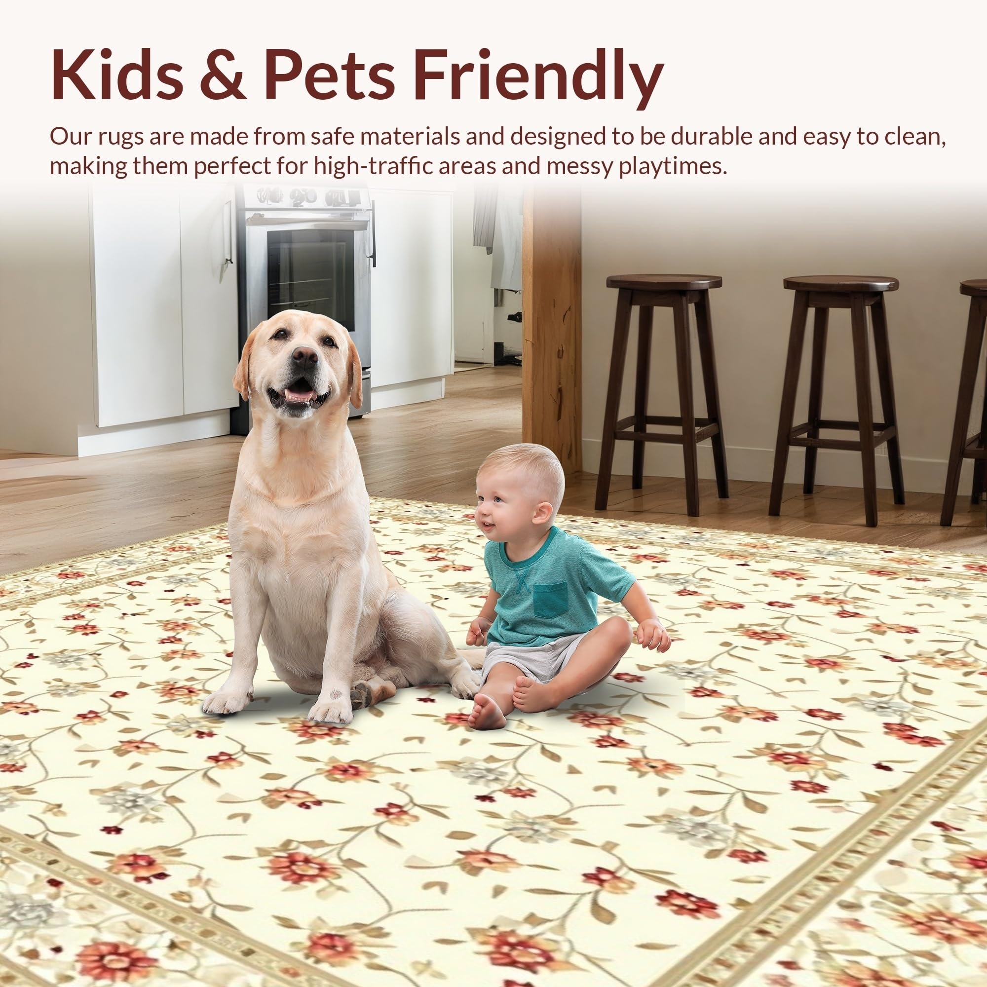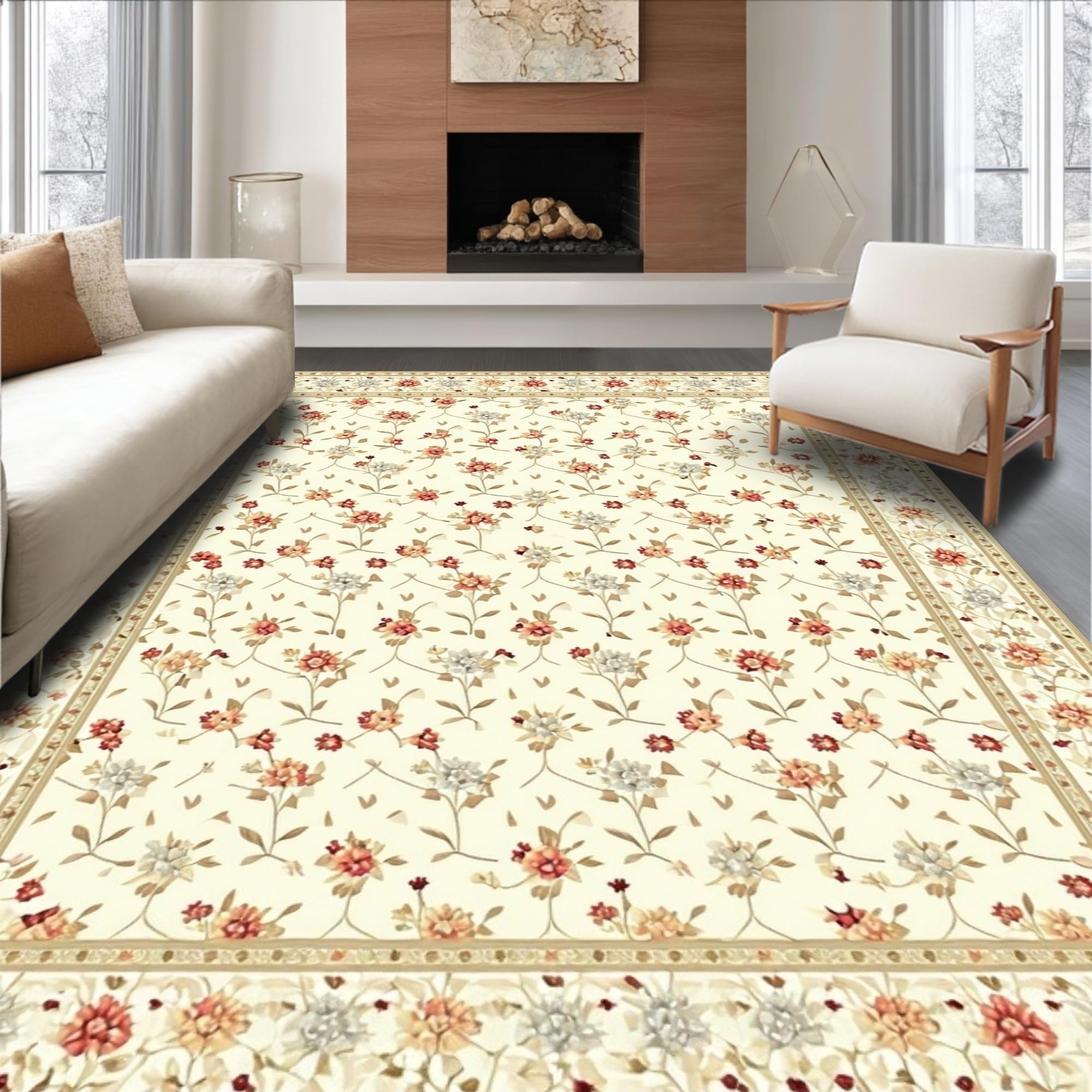 Ultra Soft Area Rug, Non Slip, Stain Resistant, Washable Area Rugs for Living Room, Bedroom, Versatile Entry with Non Slip Base Stylish Floral Motif(Beige) Overview: