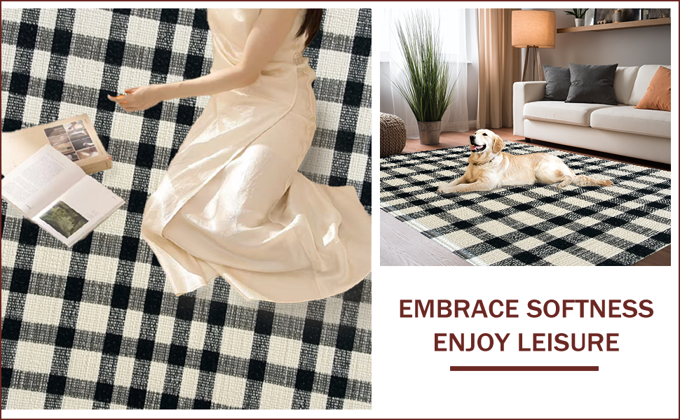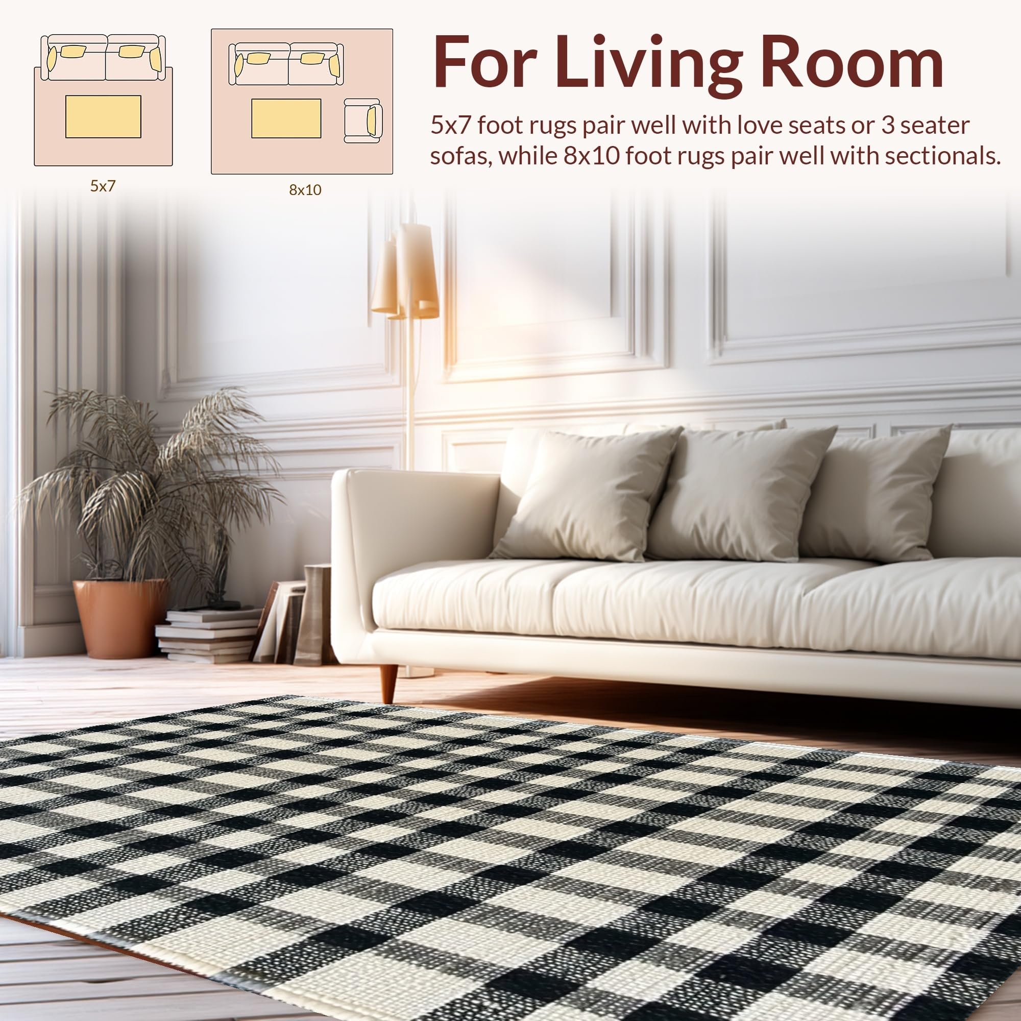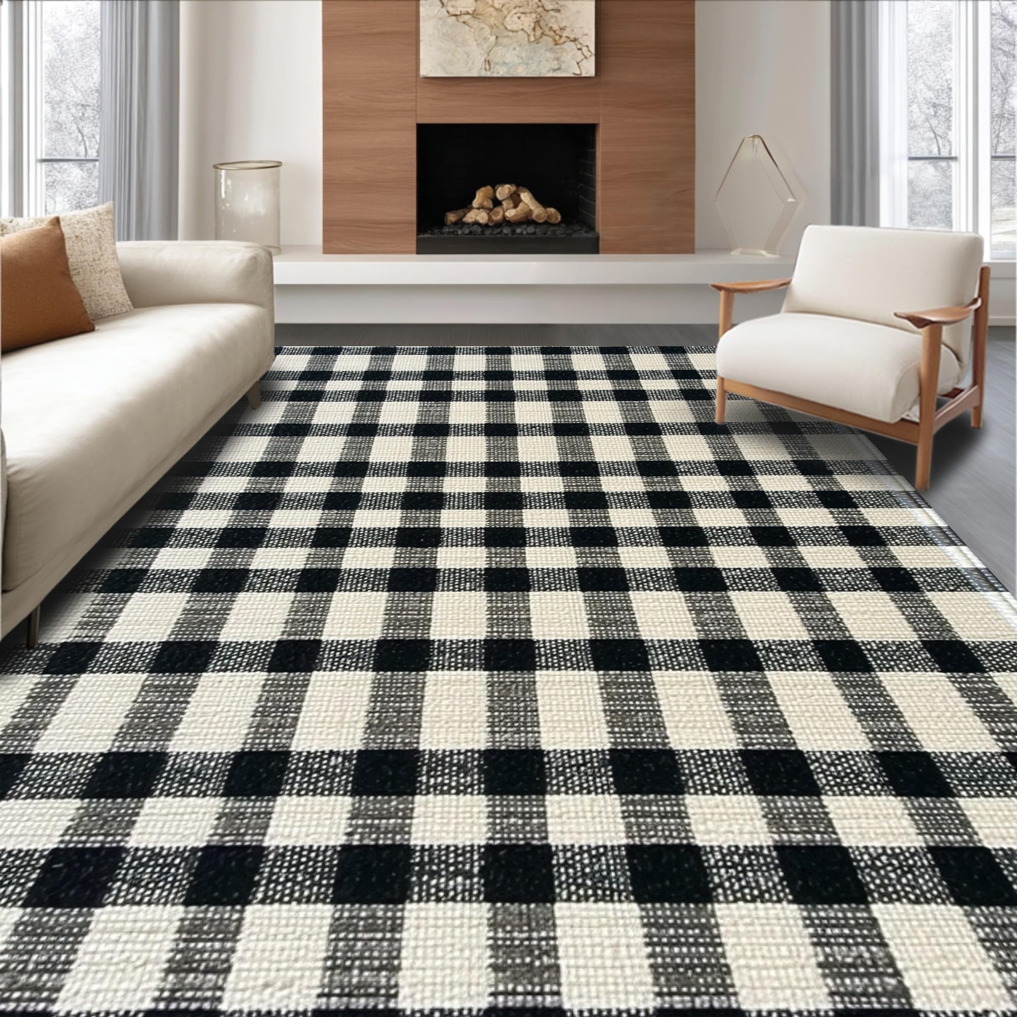 Ultra Soft Area Rug, Non Slip, Stain Resistant, Washable Area Rugs for Living Room, Bedroom, Versatile Indoor Outdoor Washable Jute Living Room Rug(Black) Overview: