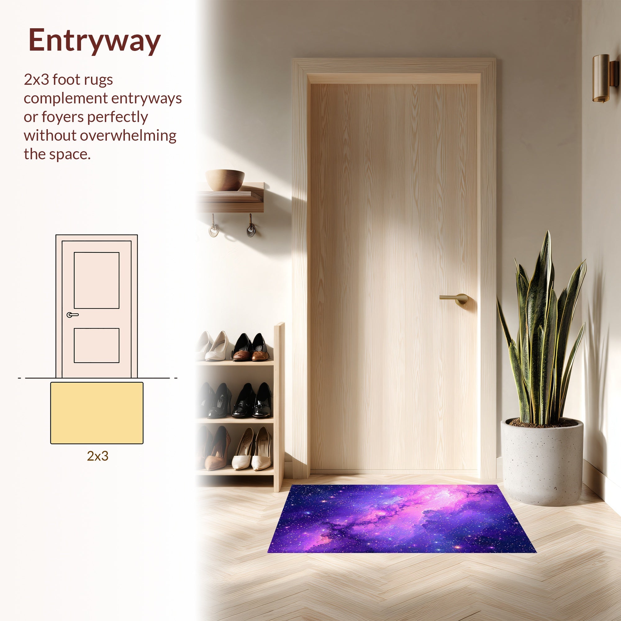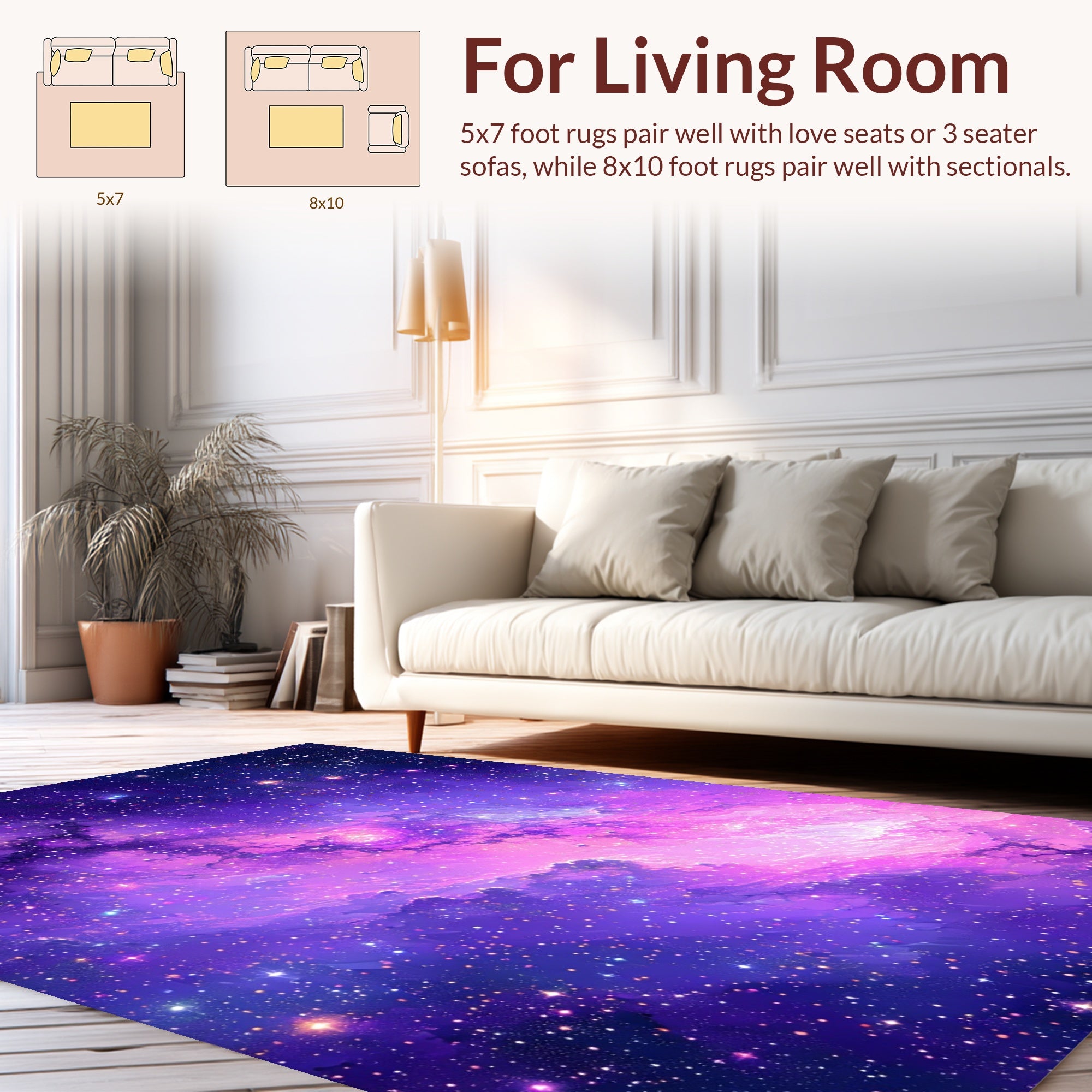 Flatwoven High Traffic Area Rug, Vibrant Abstract Cosmic Swirls, Non Slip, Stain Resistant, Washable Area Rugs for Living Room, Bedroom (Purple) Overview: