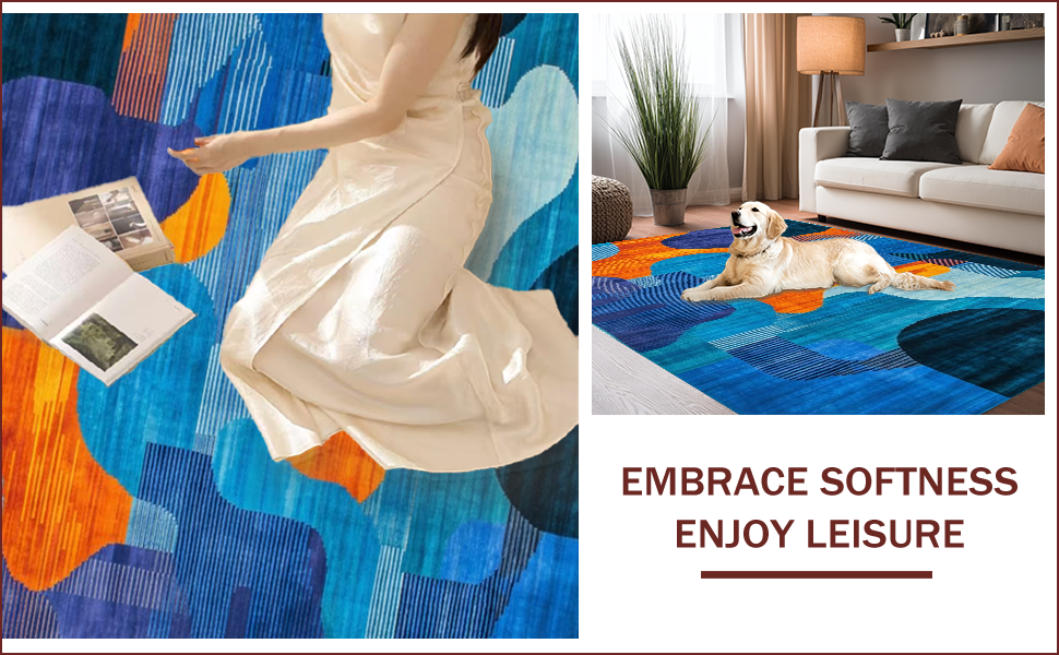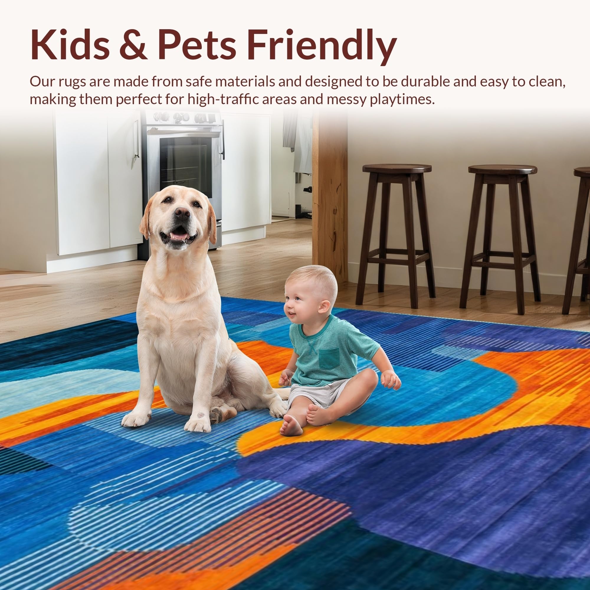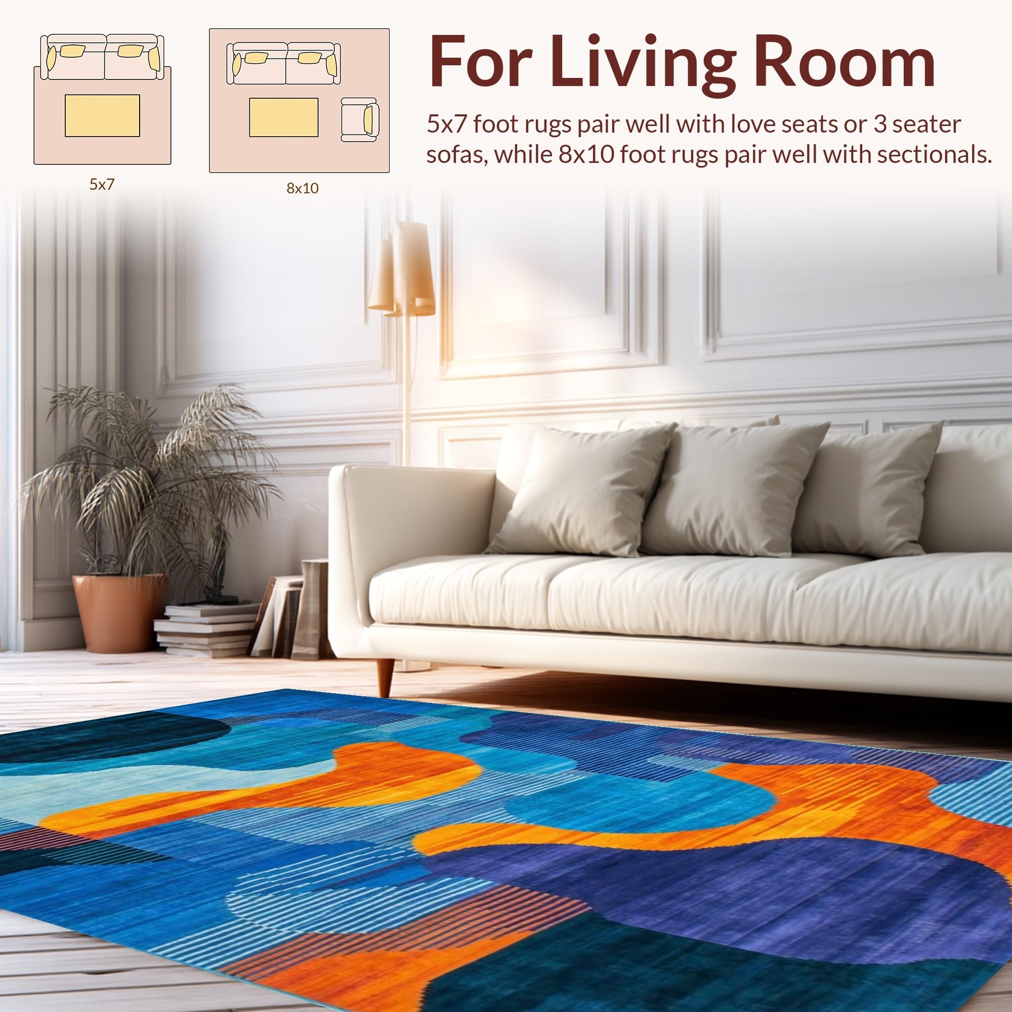 Ultra Soft Area Rug, Non Slip, Stain Resistant, Washable Area Rugs for Living Room, Bedroom, Vibrant Abstract Expressionist Palette(Blue) Overview: